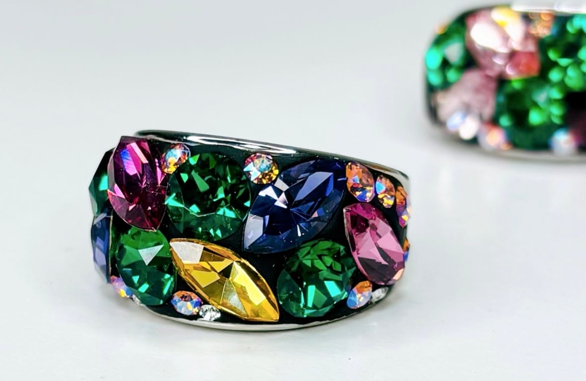 大人かわいいクリスタルハートのリング。 ピンク系のグラデでクリスタルを散りばめ キュートさ倍増です! 最高級の輝きを放つクリスタルのみを贅沢にクレイに散りばめたリングです。 ピンクやオパールなどをミックスし、ボリューミーでとてもゴージャスに仕上がりました。 台座部分にはクリスタルクレイ(粘着粘土)を使用しています。 カジュアルにもエレガントにも是非ご使用いただきたい一品です。 自分へのご褒美、大事な方へのプレゼントにいかがですか? *仕入れの状況により、近いカラーでのご提供となる事もございます。ご不安な方はご購入前にご相談下さいませ。 *こちらの商品は受注後製作に入りますため、発送まで1週間ほどお時間をいただく場合があります。ご了承下さい。 リング:亜鉛合金(シルバー) :サイズは3種類からお選び下さい。 素材 :クリスタルクレイ、クリスタル 【※ご購入の前にご一読ください】 *商品は一つ一つ、丁寧に作製しておりますが、ハンドメイドのため、既製品のような完璧さをお求めになる方、また気になる方はご購入をご遠慮下さいますようお願い致します。 *既製品のような強度はありませんので、お取り扱いの際には充分ご注意下さい。 *アレルギー対応ではありませんので、ご了承下さい。 *商品画像と色の違いが生じる場合があります。予めご了承下さい。 *返品交換はできません。気になる方はトラブル防止のため、ご購入をお控え下さいますようお願いいたします。 *気になる点がございましたら些細な事でも結構ですのでお問い合わせお待ちしております。