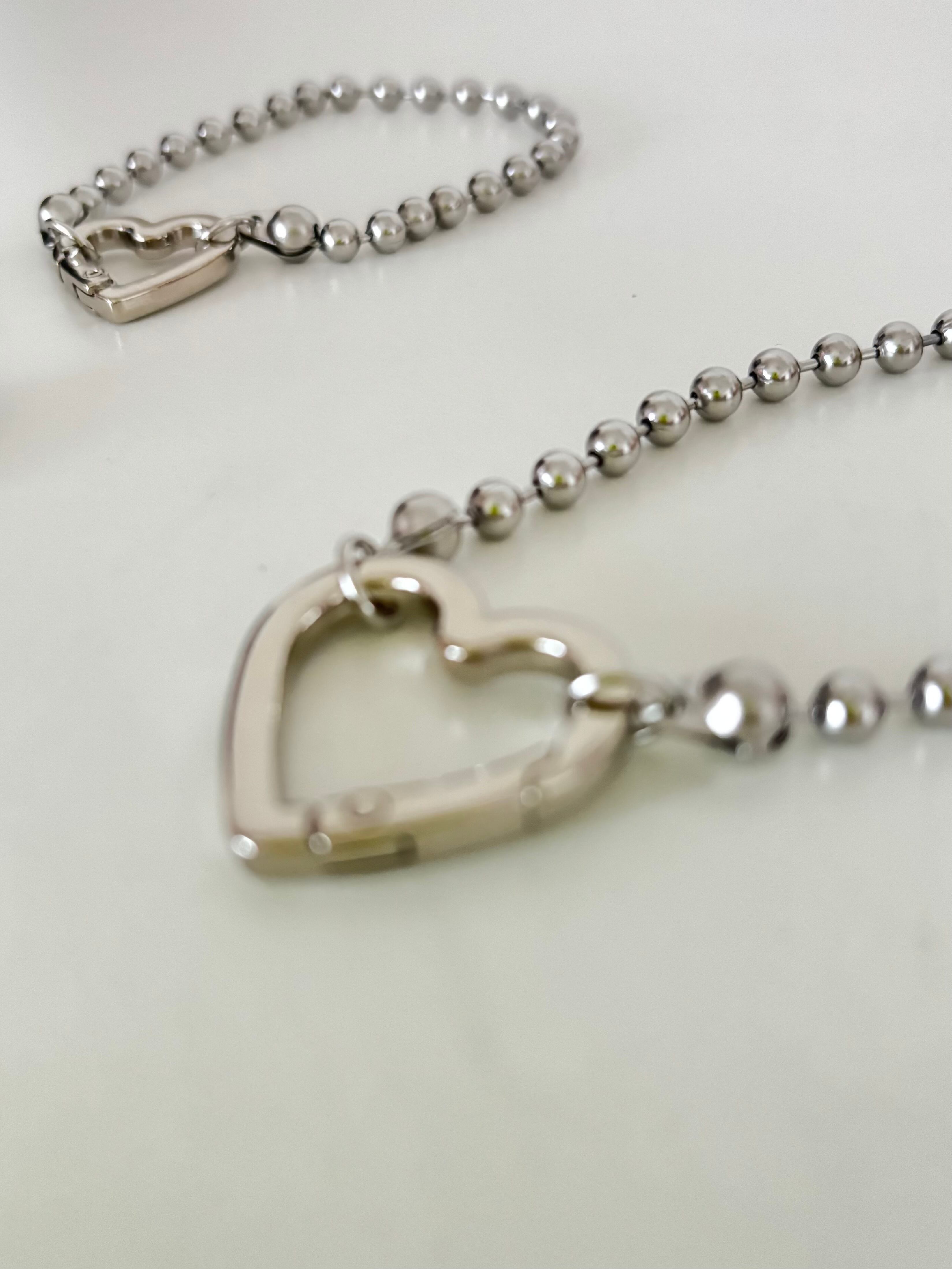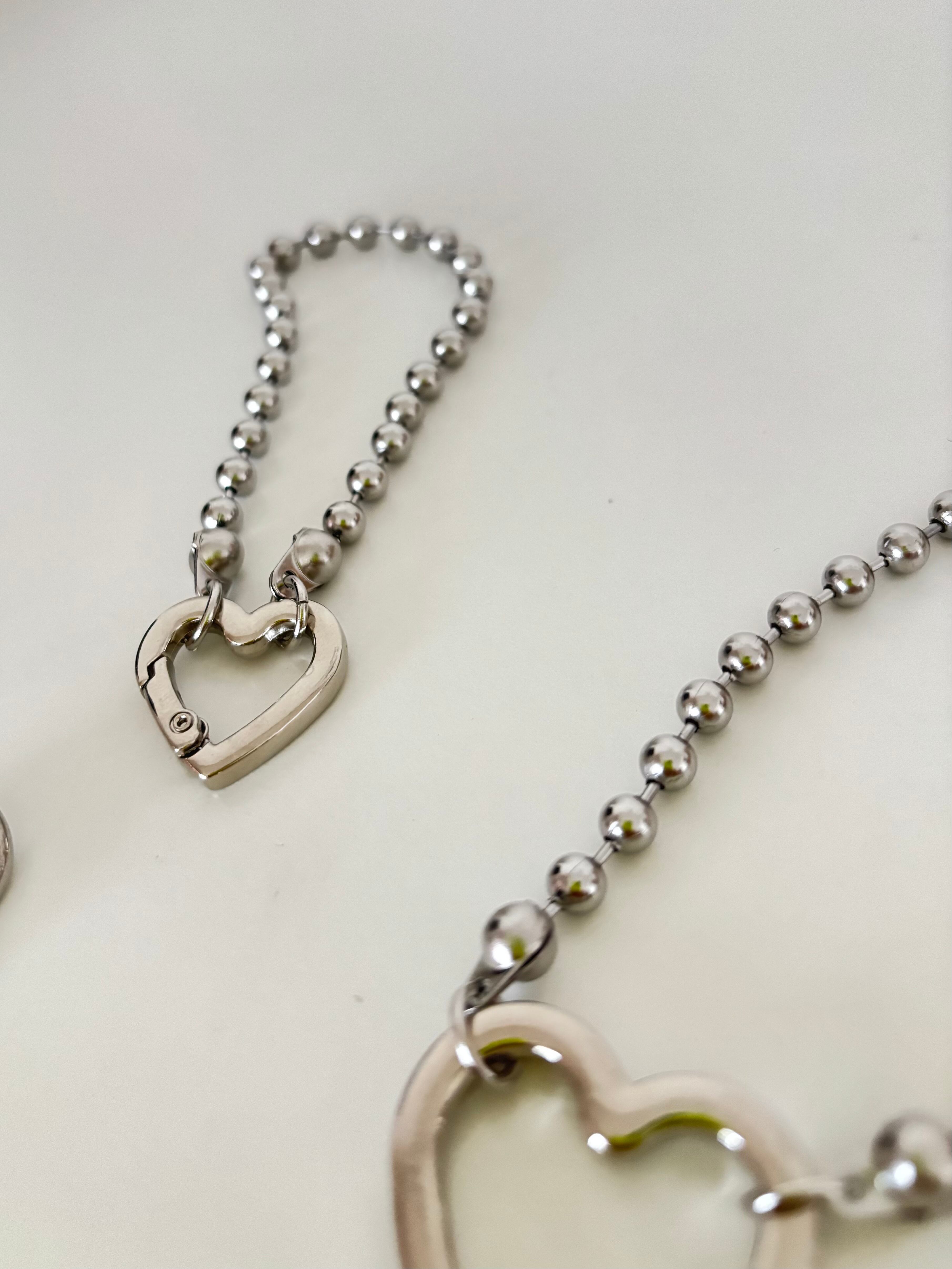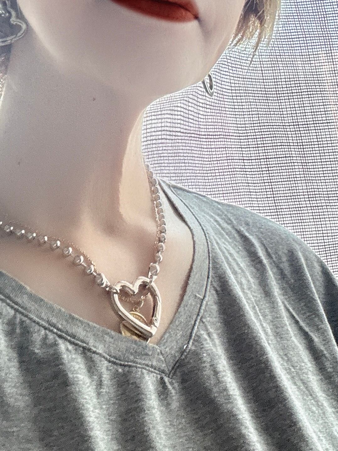 ボールチェーンとハートのマンテルを繋げたネックレスで