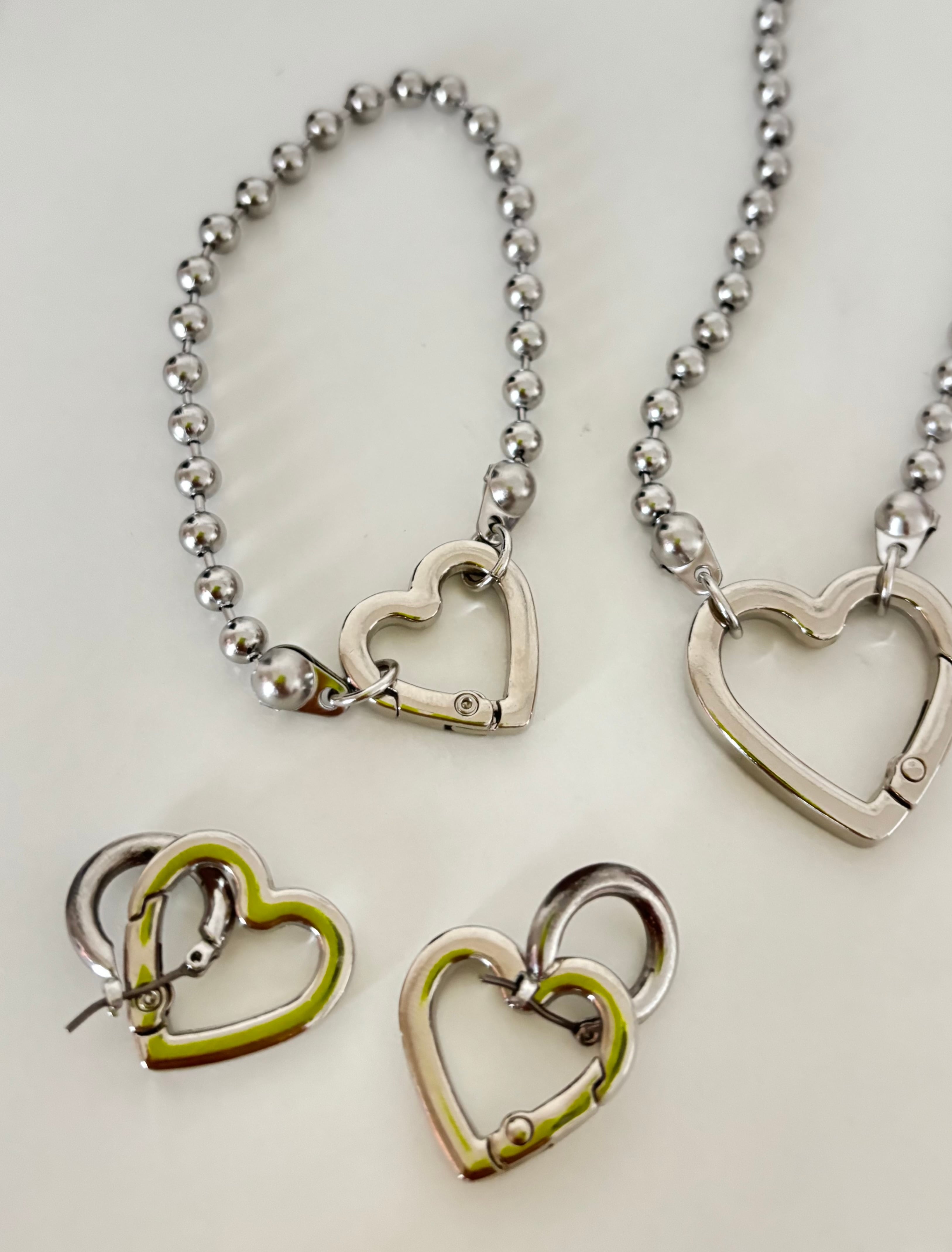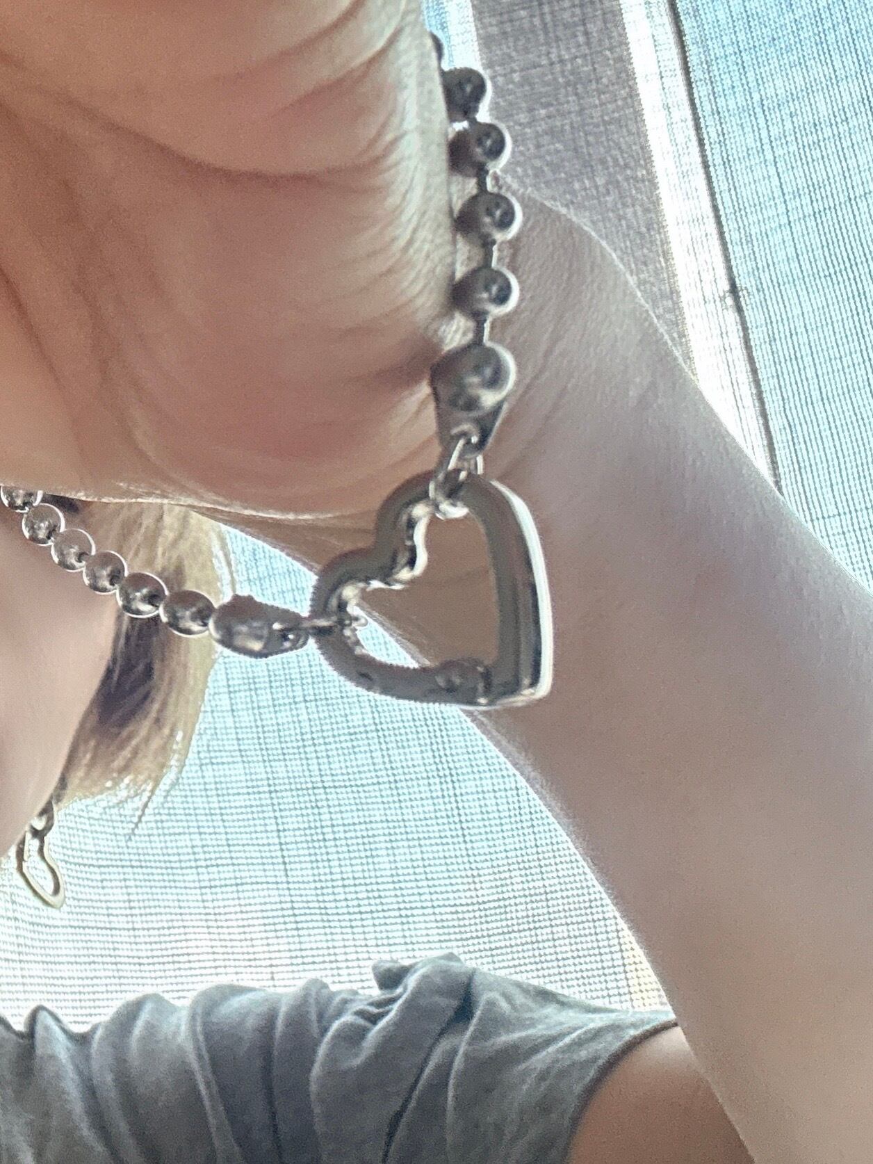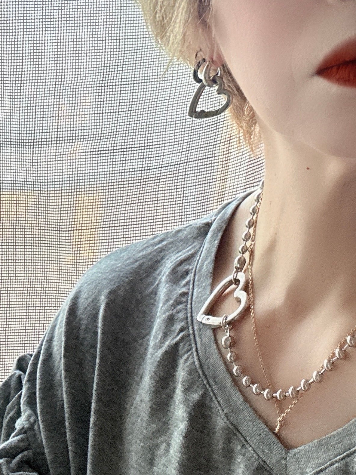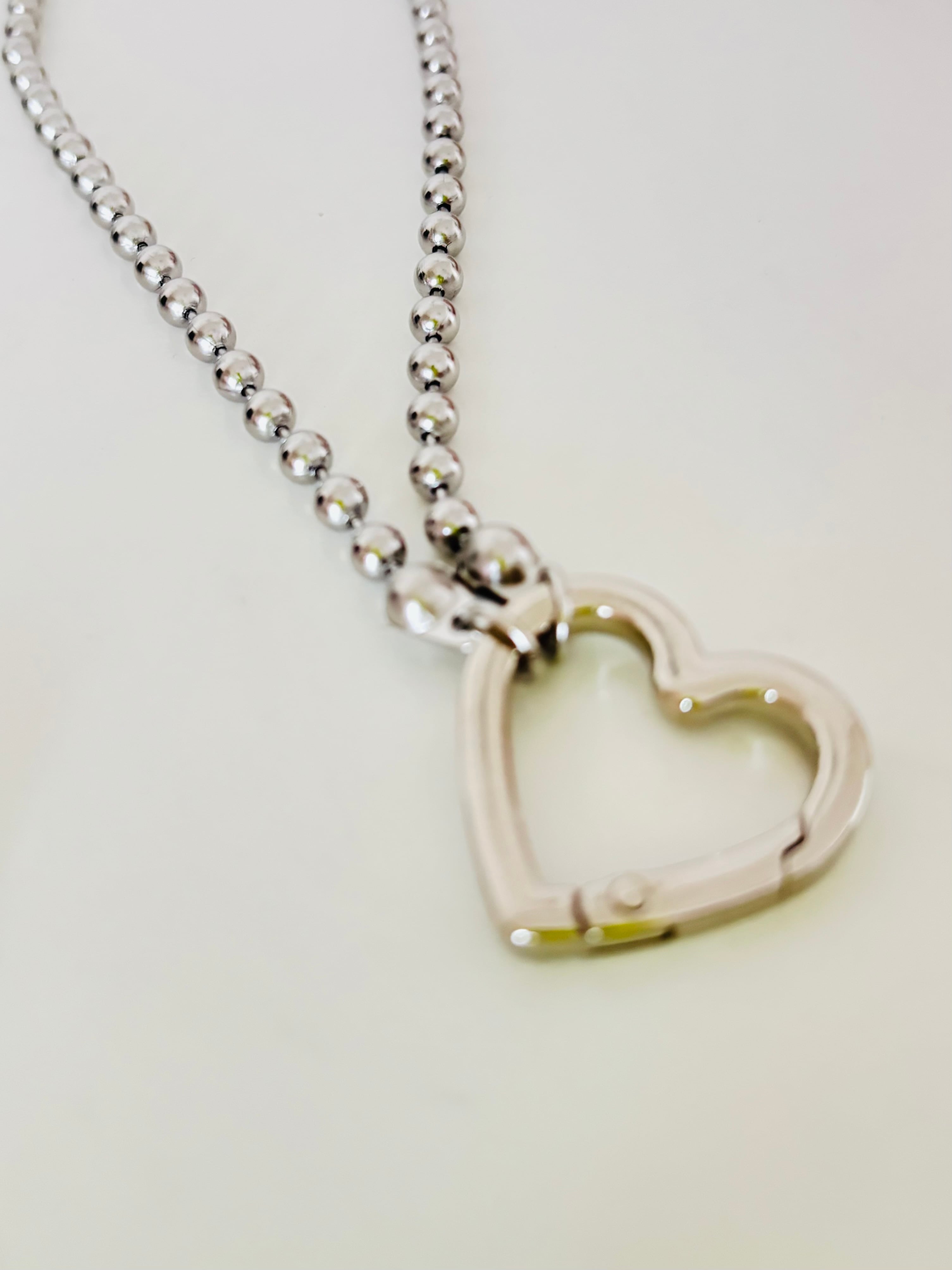 ボールチェーンとハートのマンテルを繋げたネックレスで