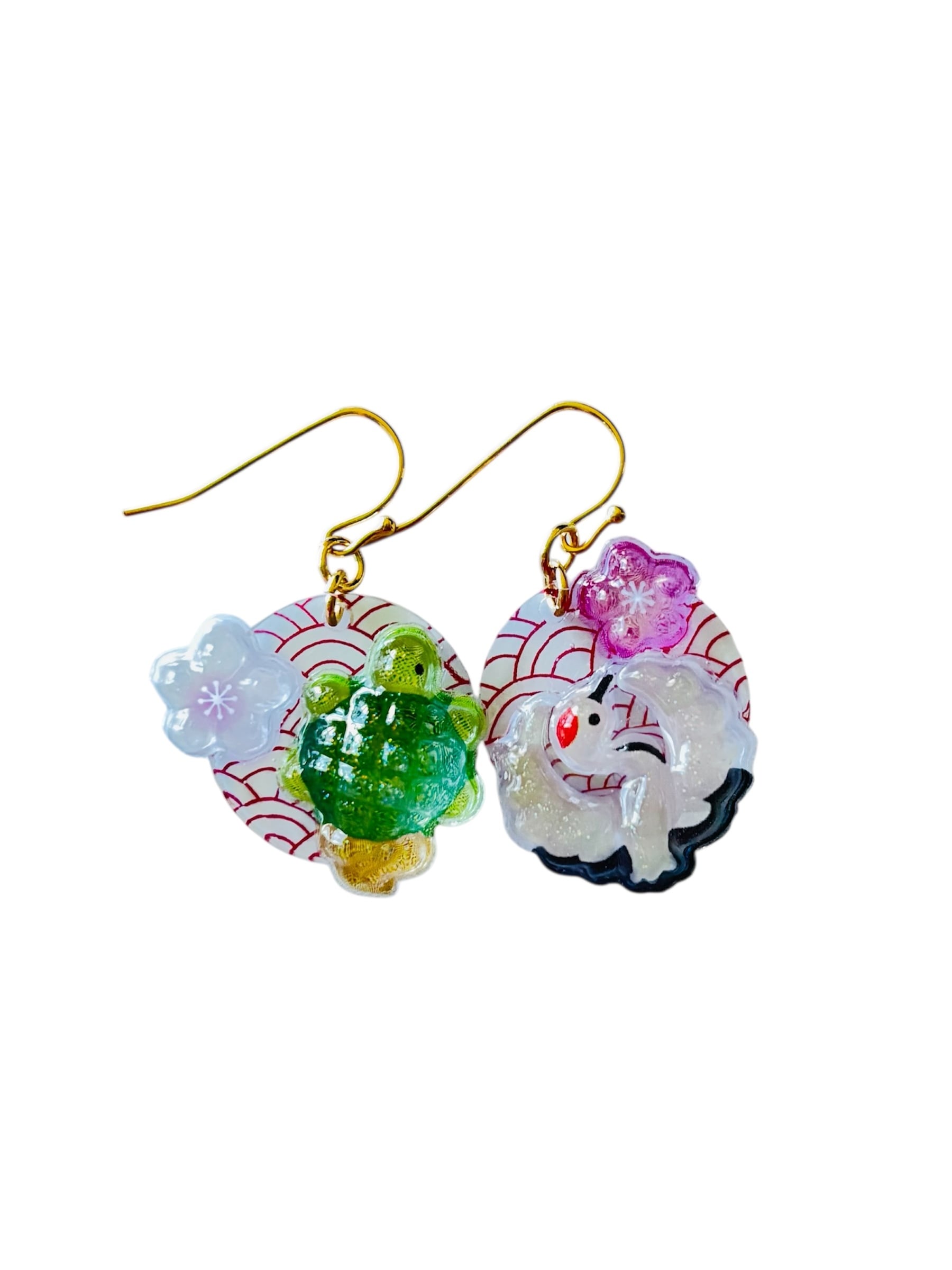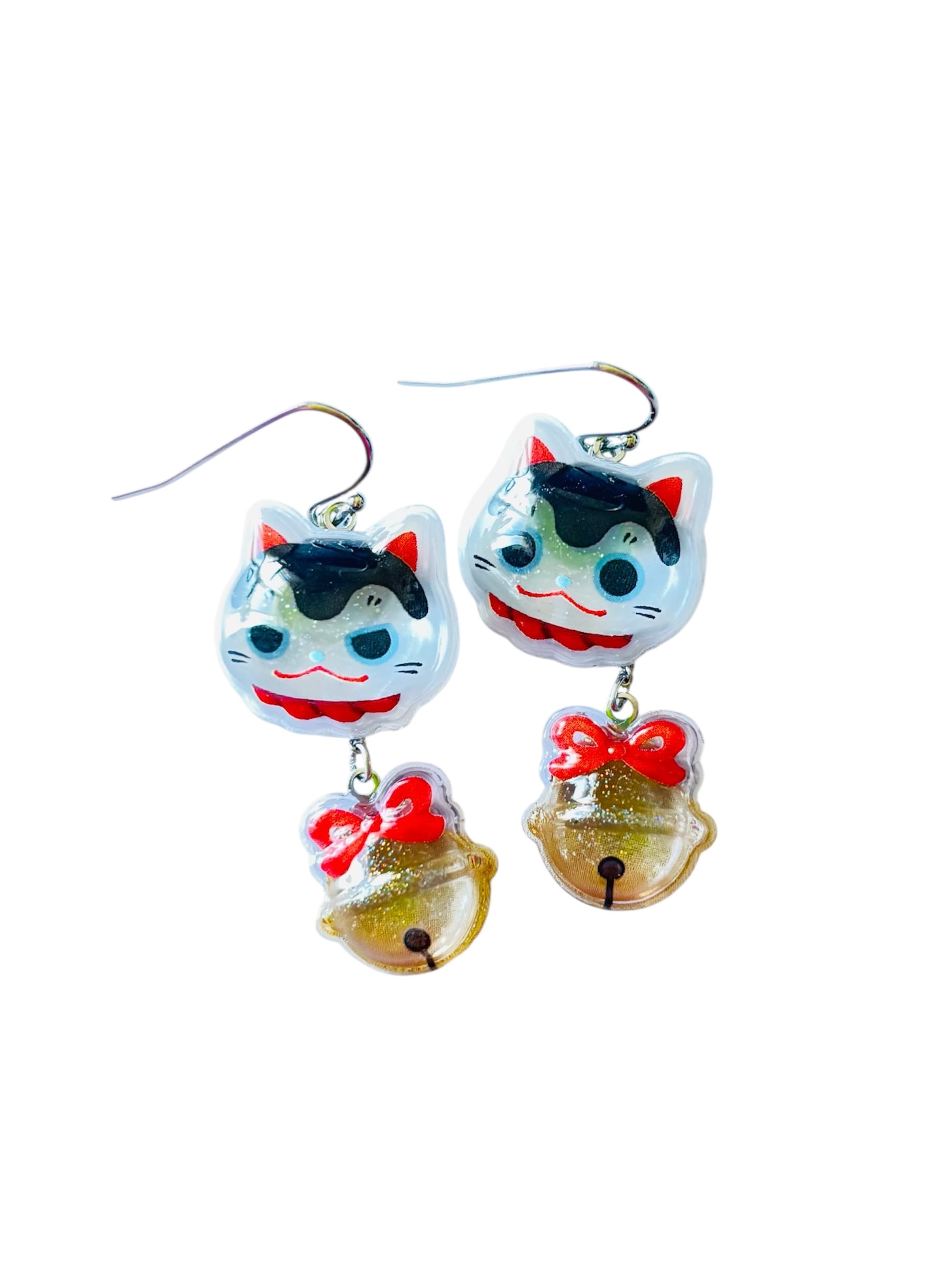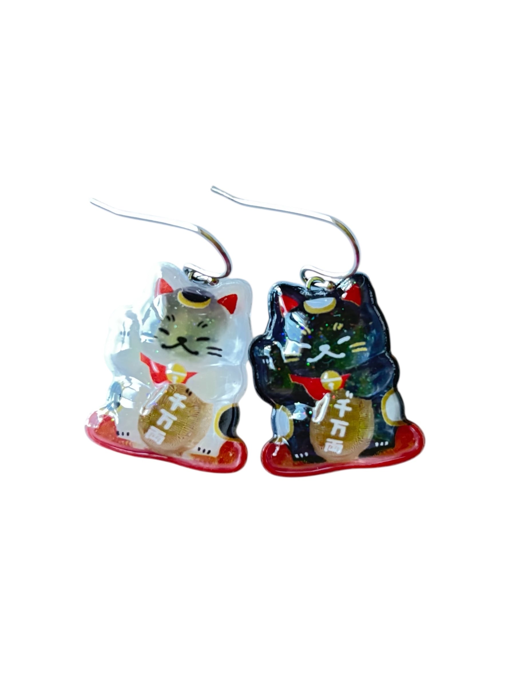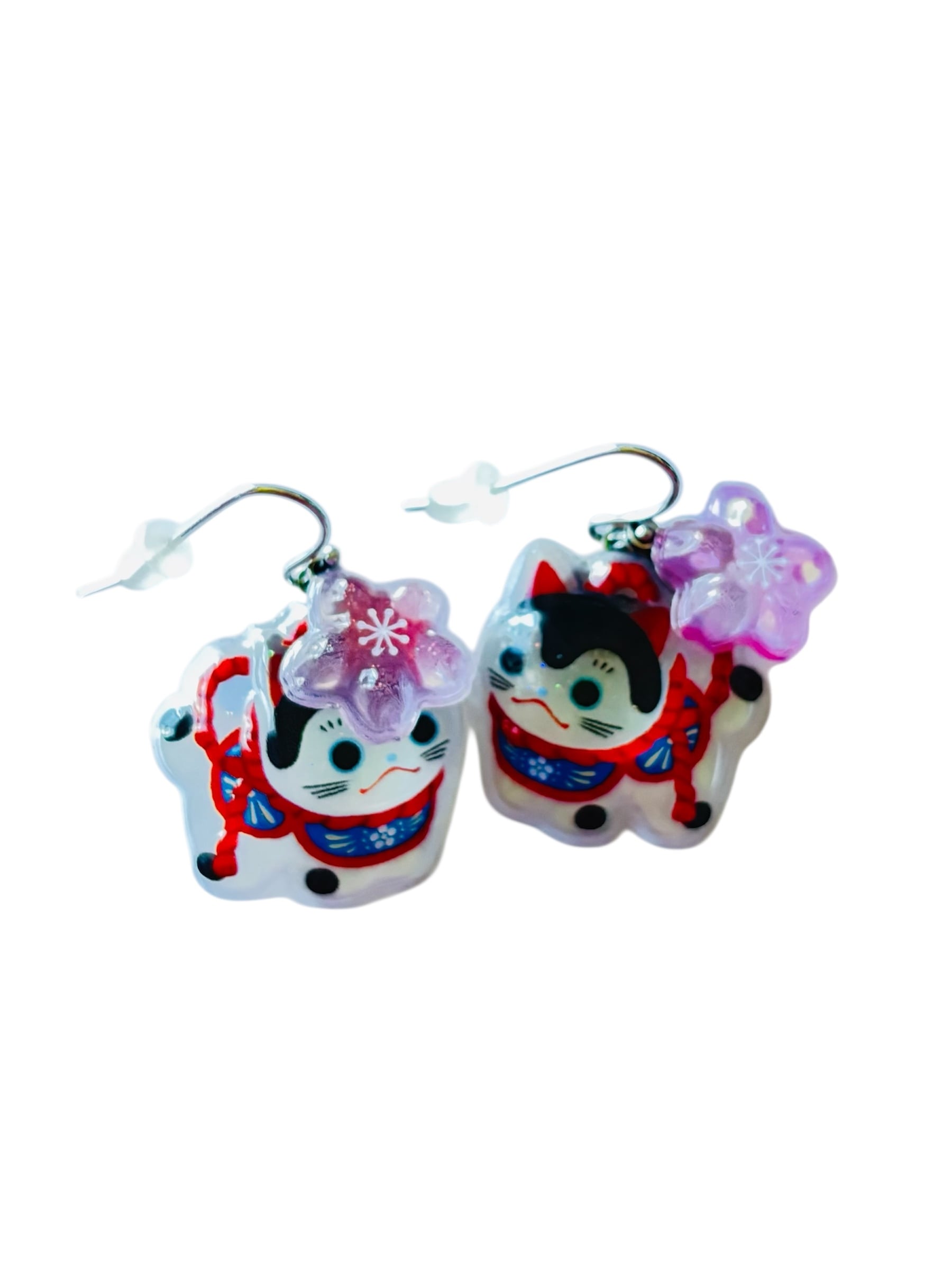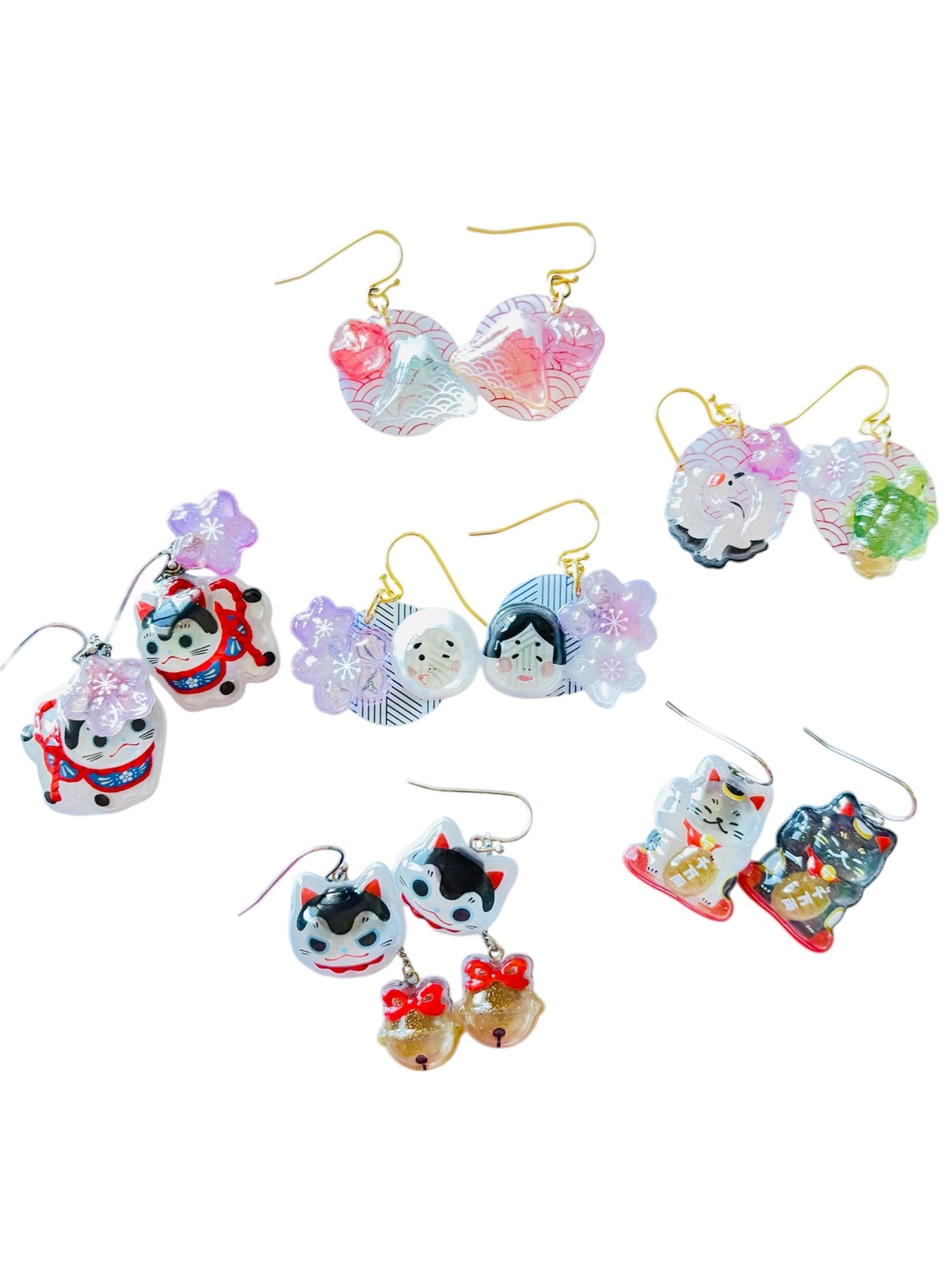 Using trendy Bonbon Drop Stickers, I turned lucky Japanese motifs like foxes, daruma, and lucky cats into earrings.