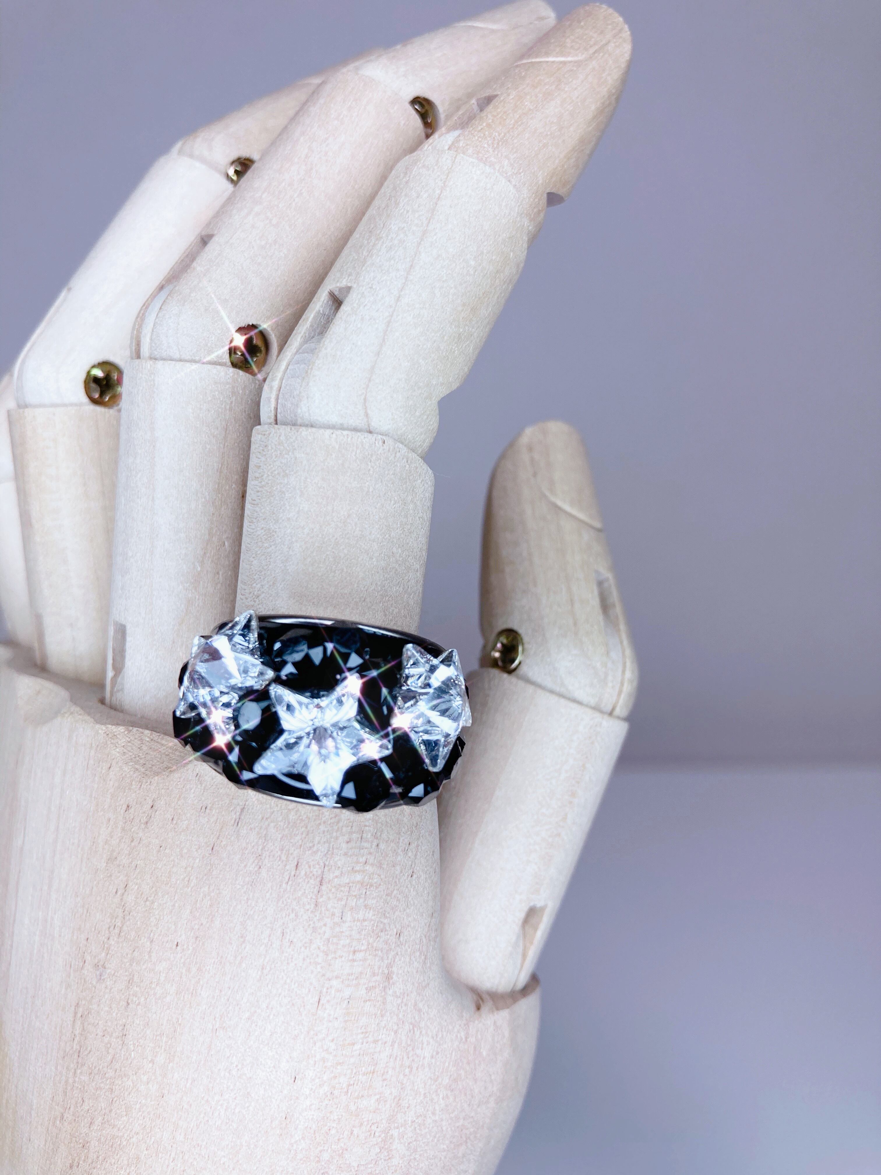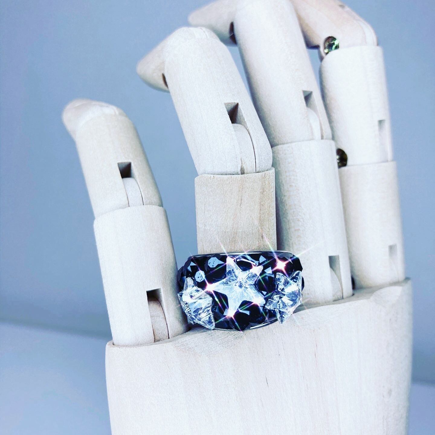 最高級の輝きを放つクリスタルのみを贅沢にクレイに散りばめたリングです。