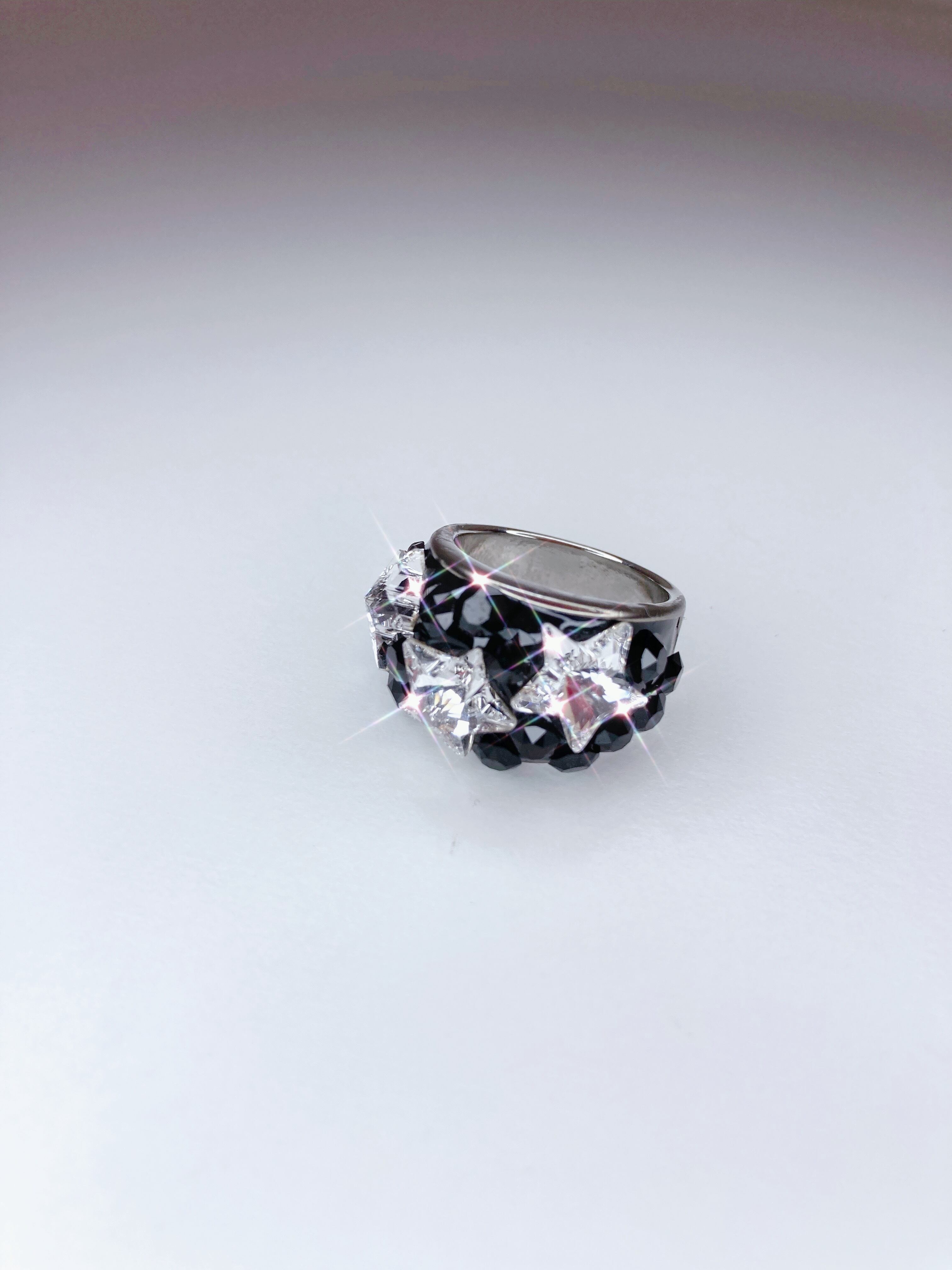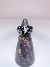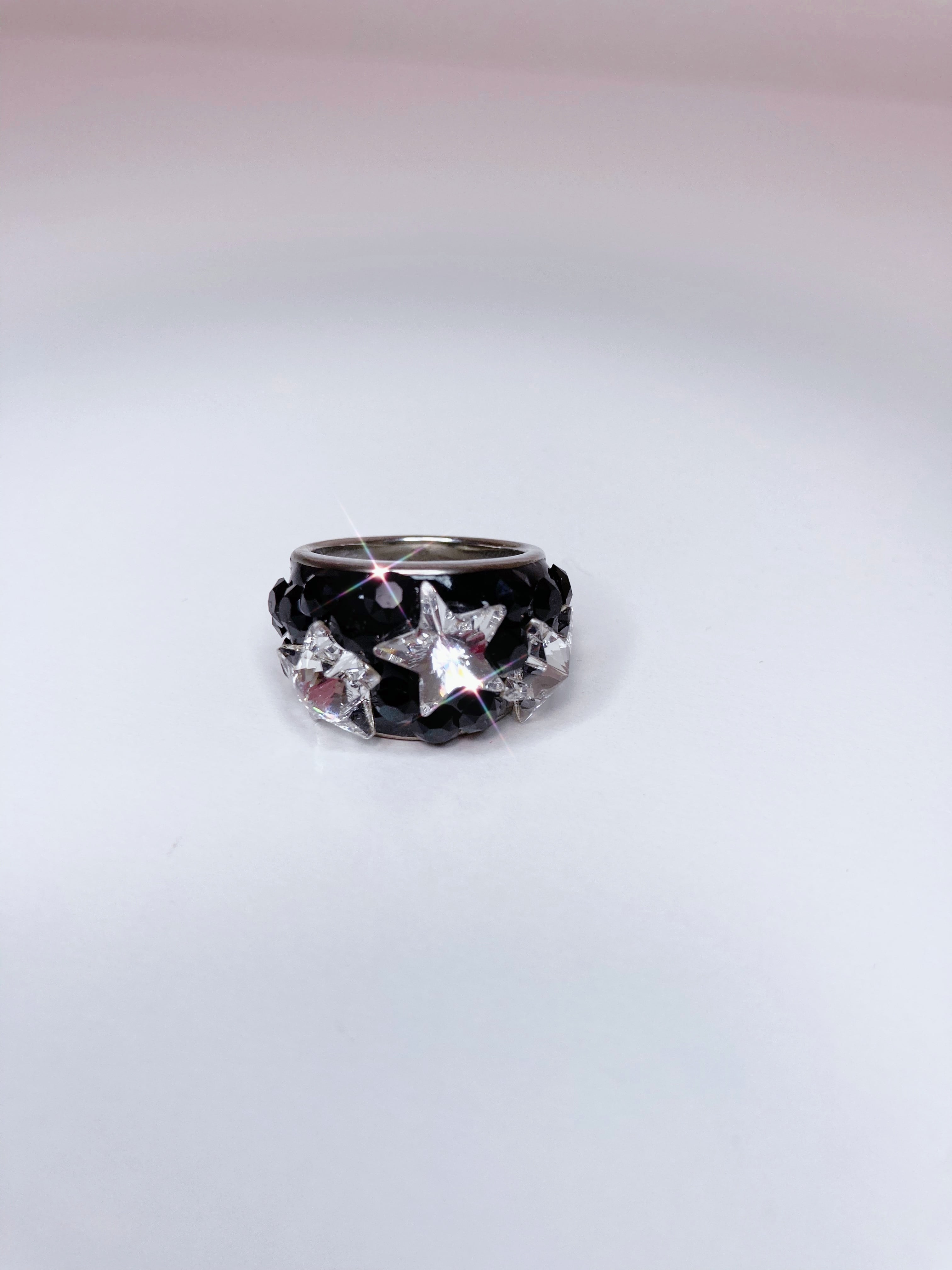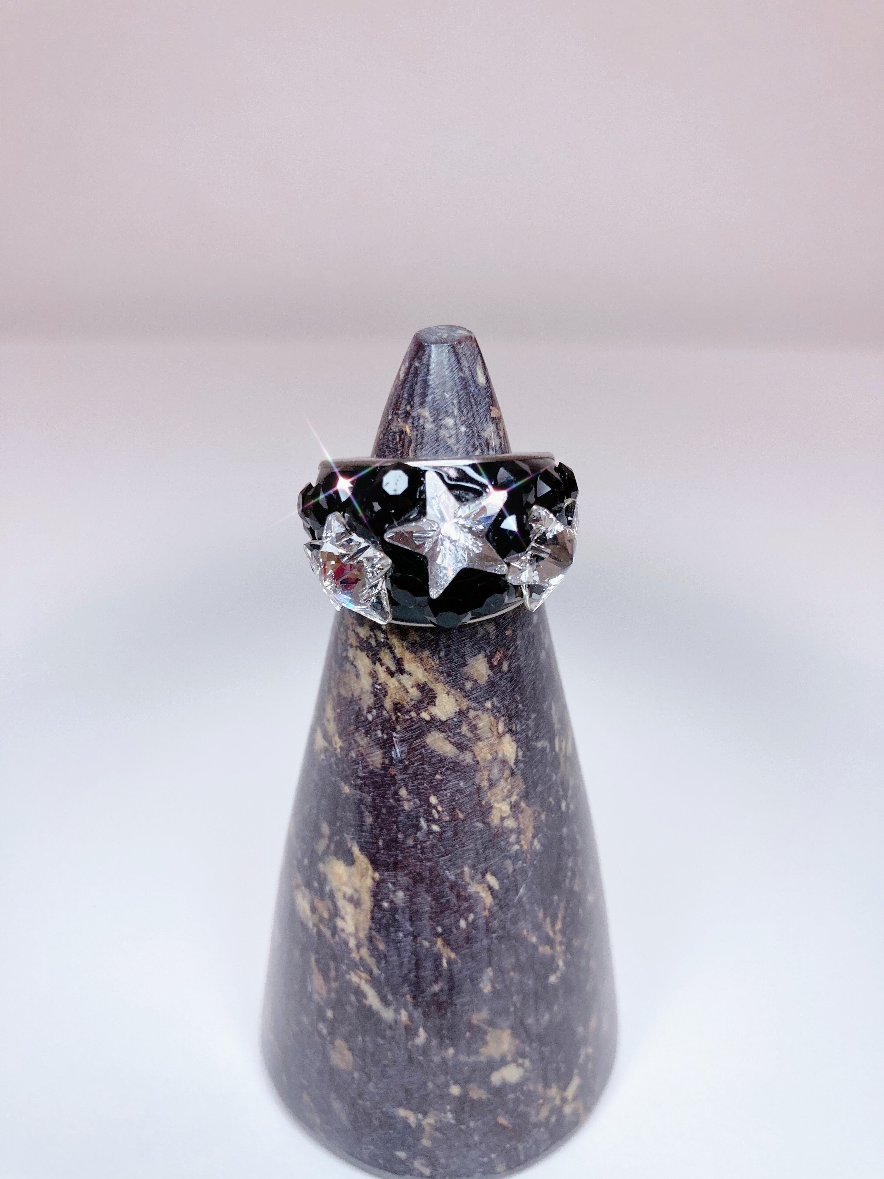 大ぶりな星形クリスタルを3粒、その周囲にはブラッククリスタルとハードですが、シンプルで可愛く仕上がっています。