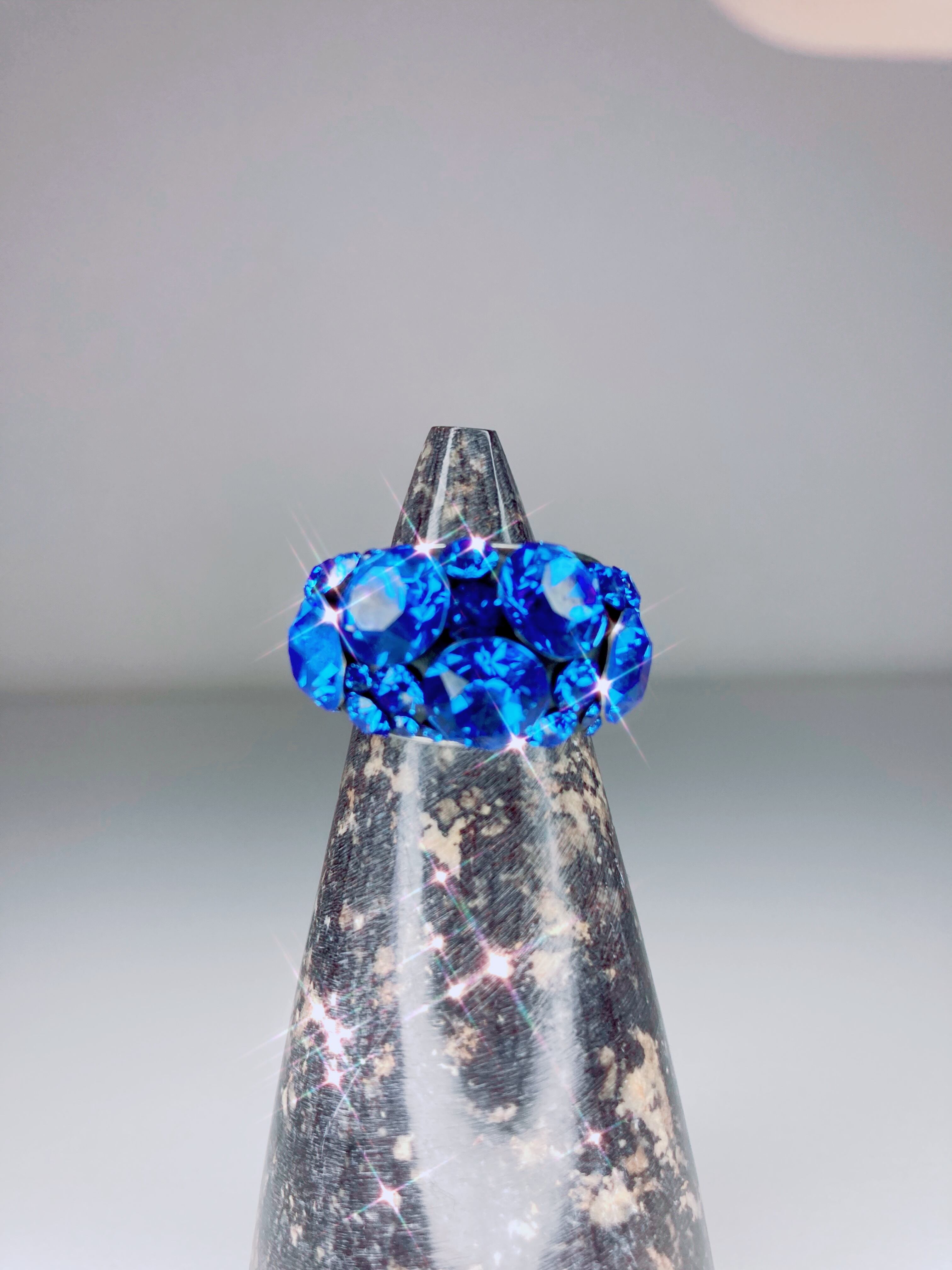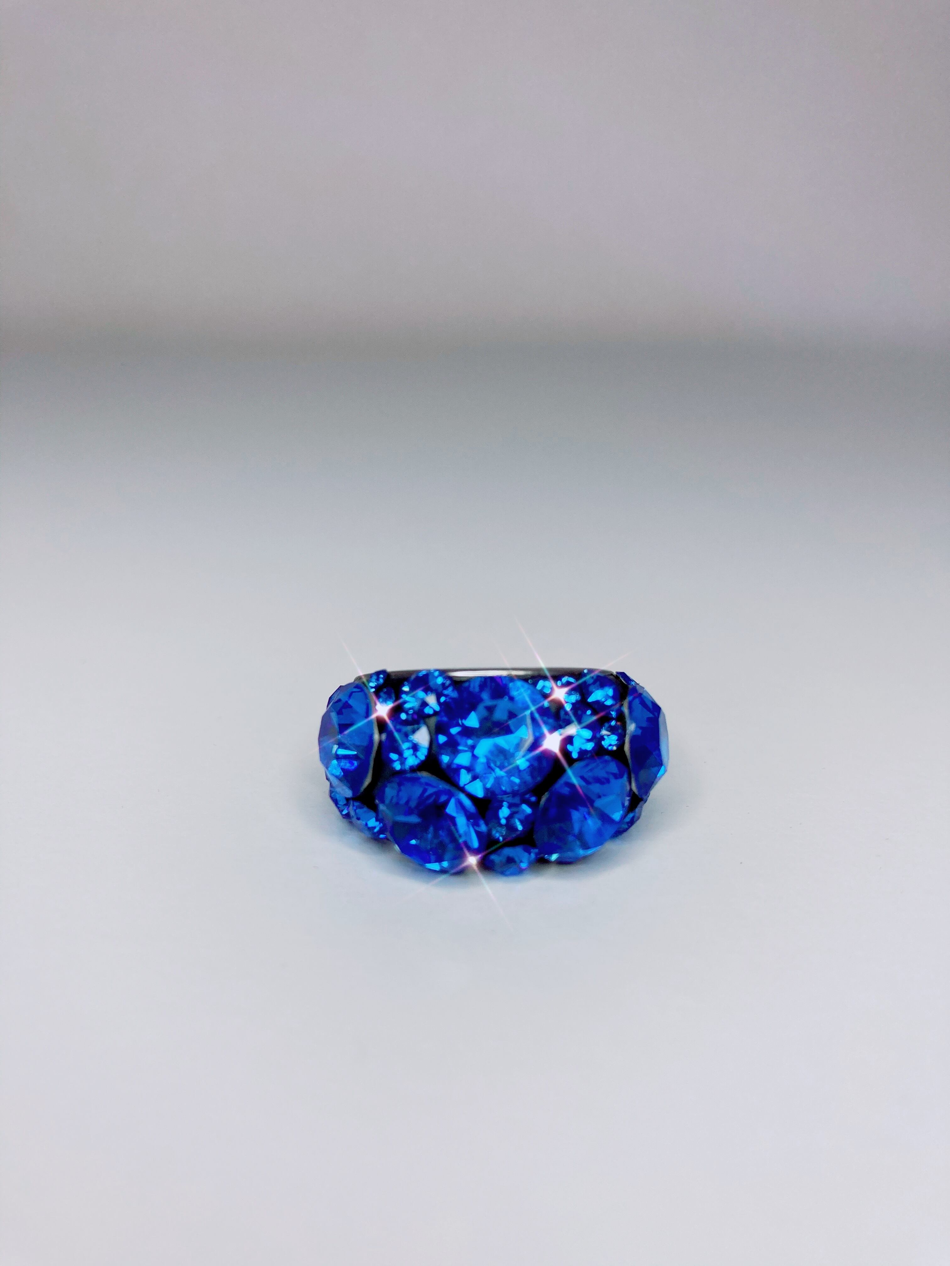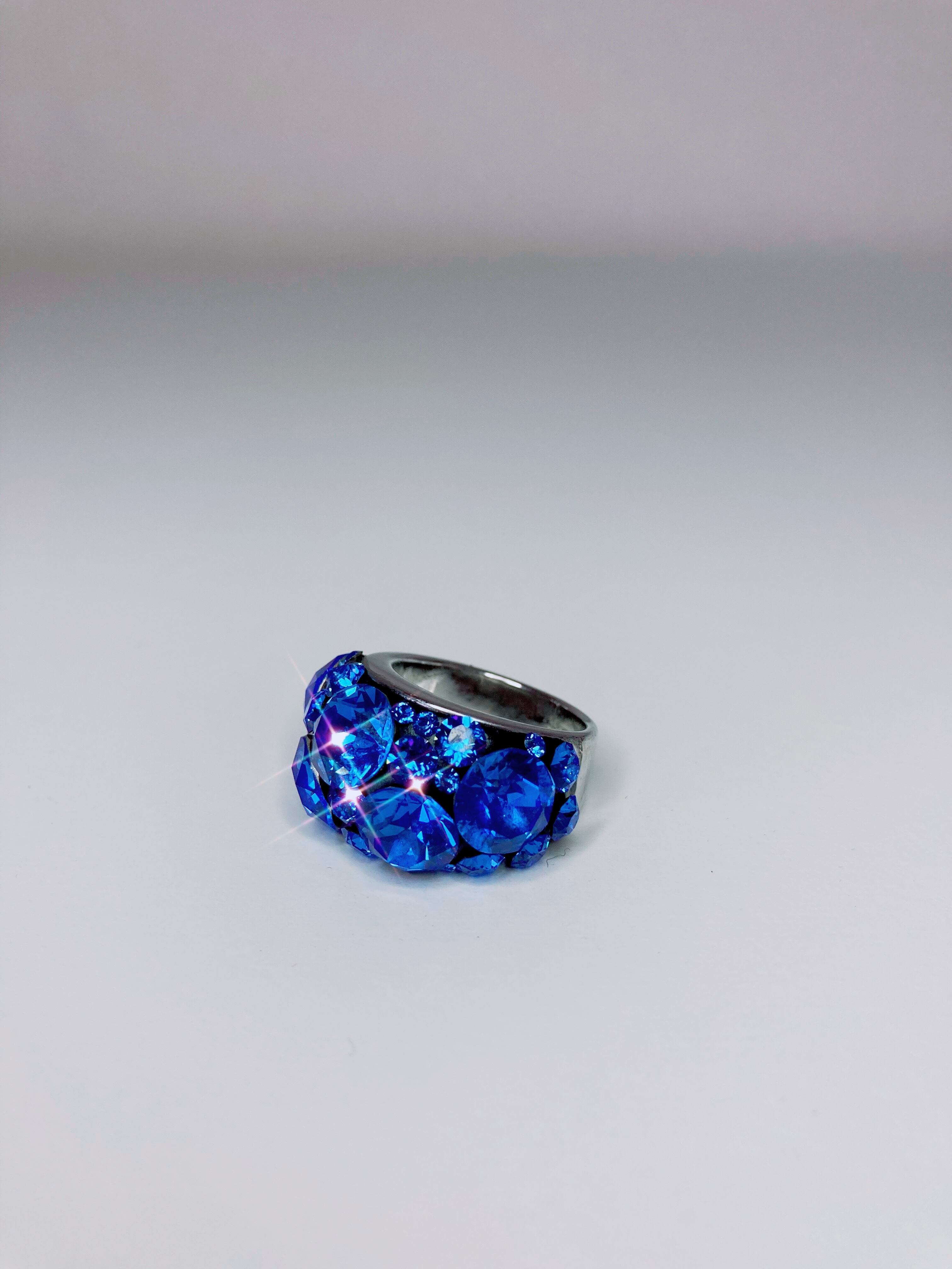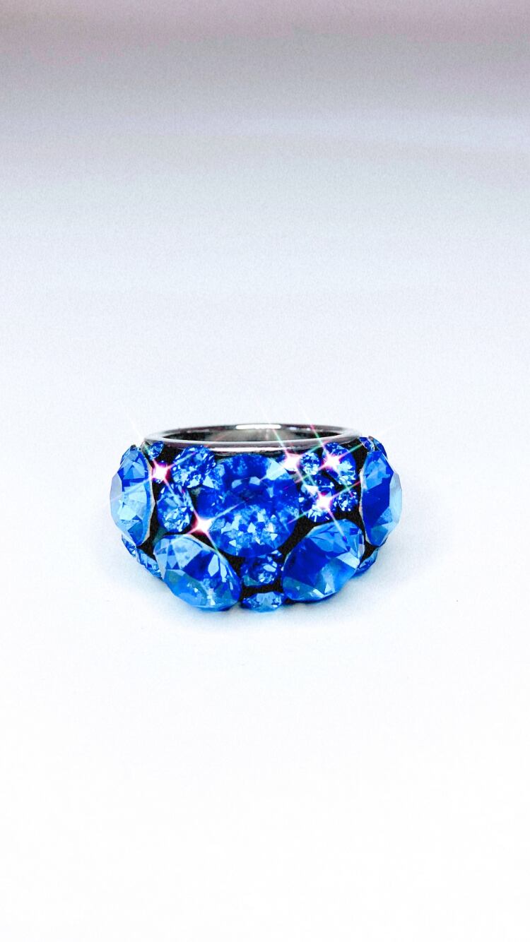 大ぶり 大人可愛い クリスタル ビジュー リング ゴージャス ボリューム ボリューミー 春 夏 秋 冬 ホリデーシーズン お出かけ カジュアル フォーマル パーティー バースデー バースデープレゼント ギフト プチギフト クリスマス クリスマスプレゼント 誕生日 サファイア ブルー