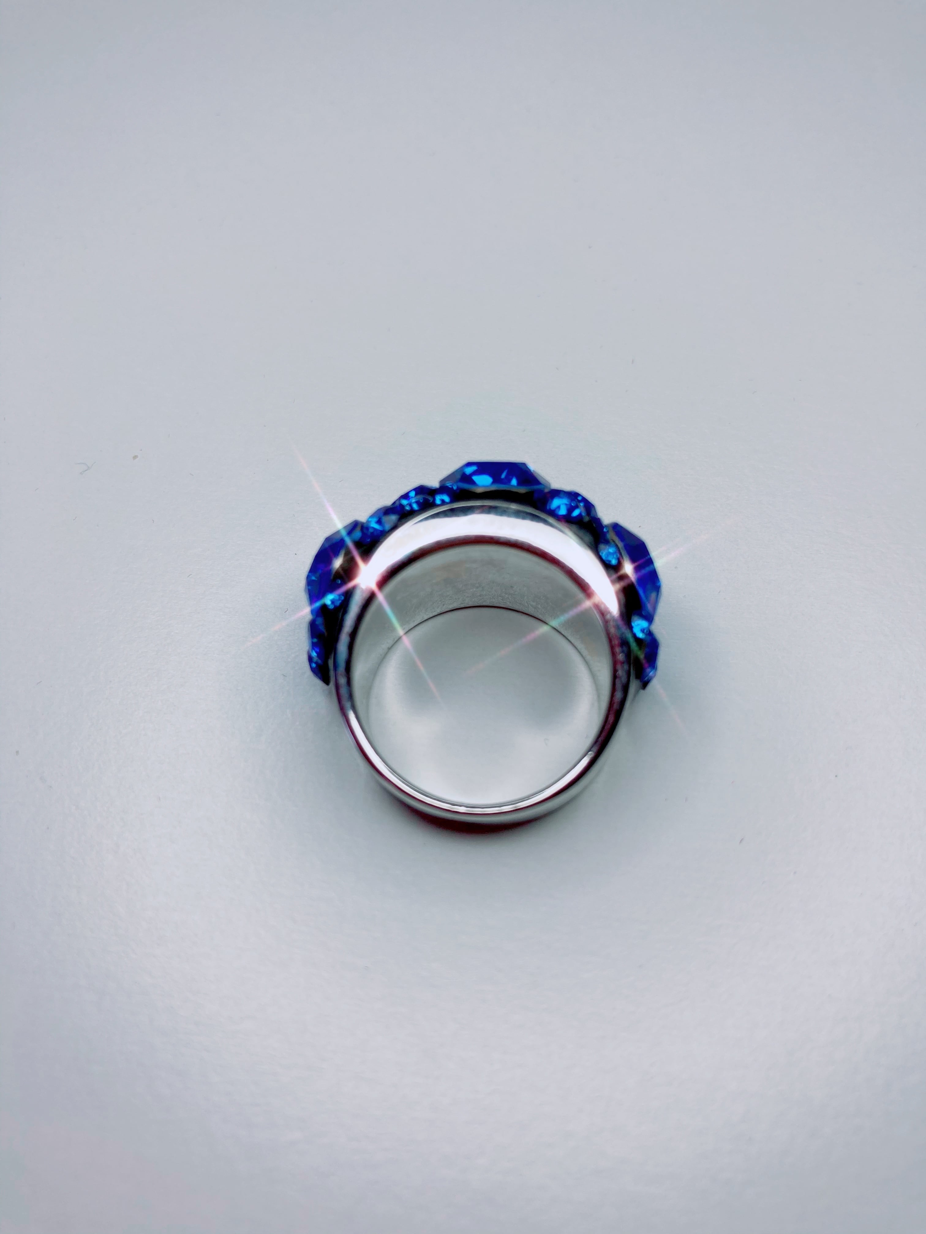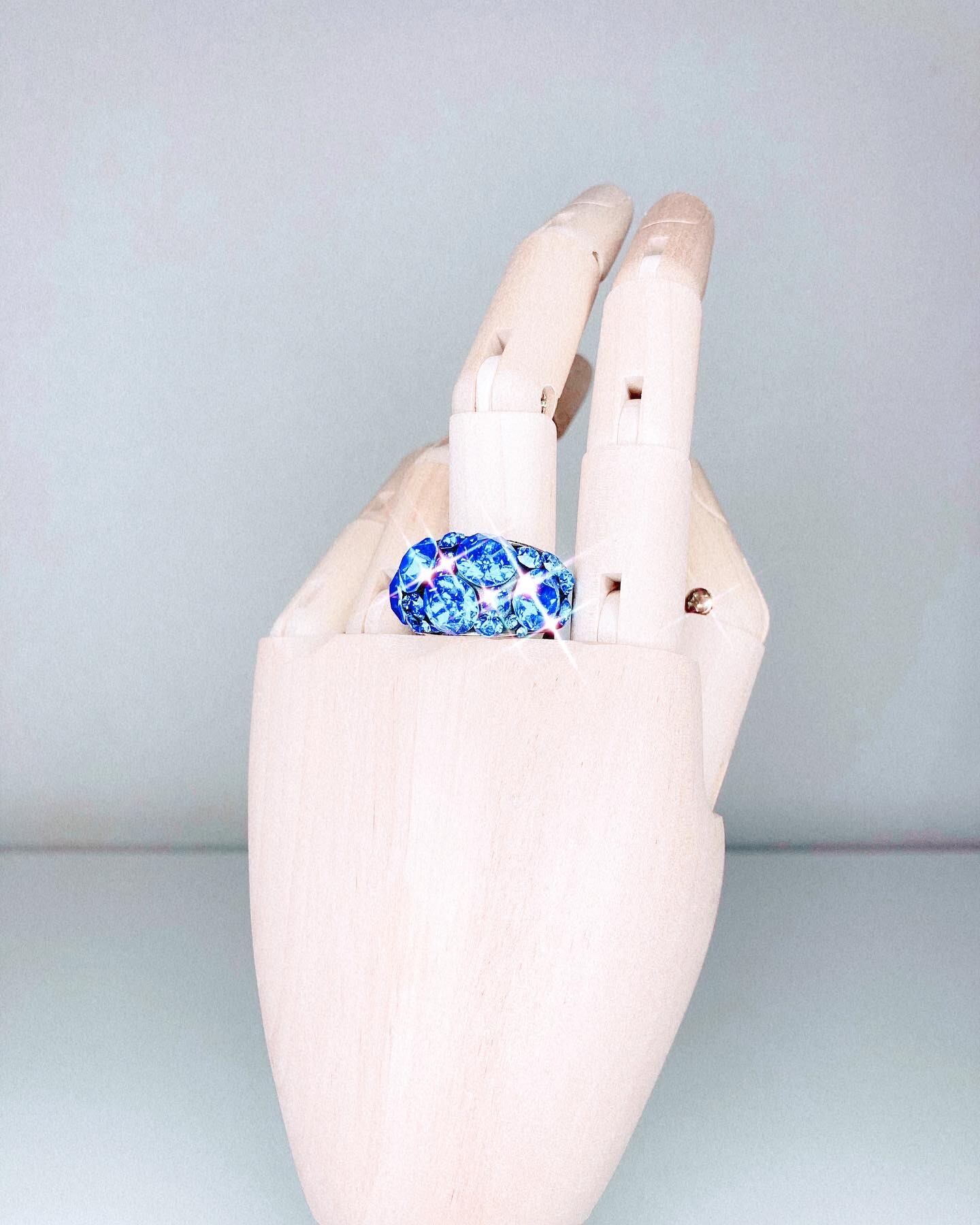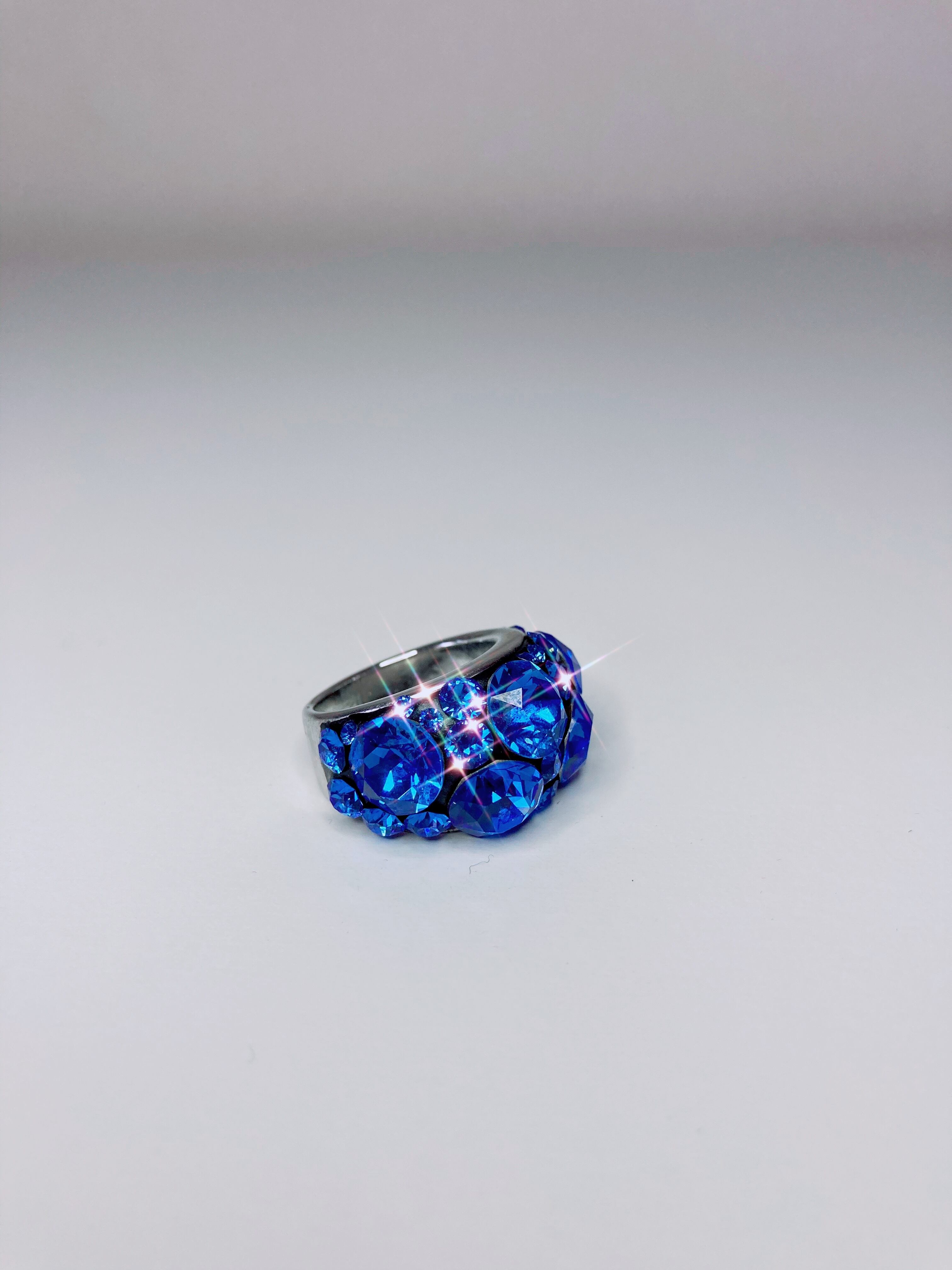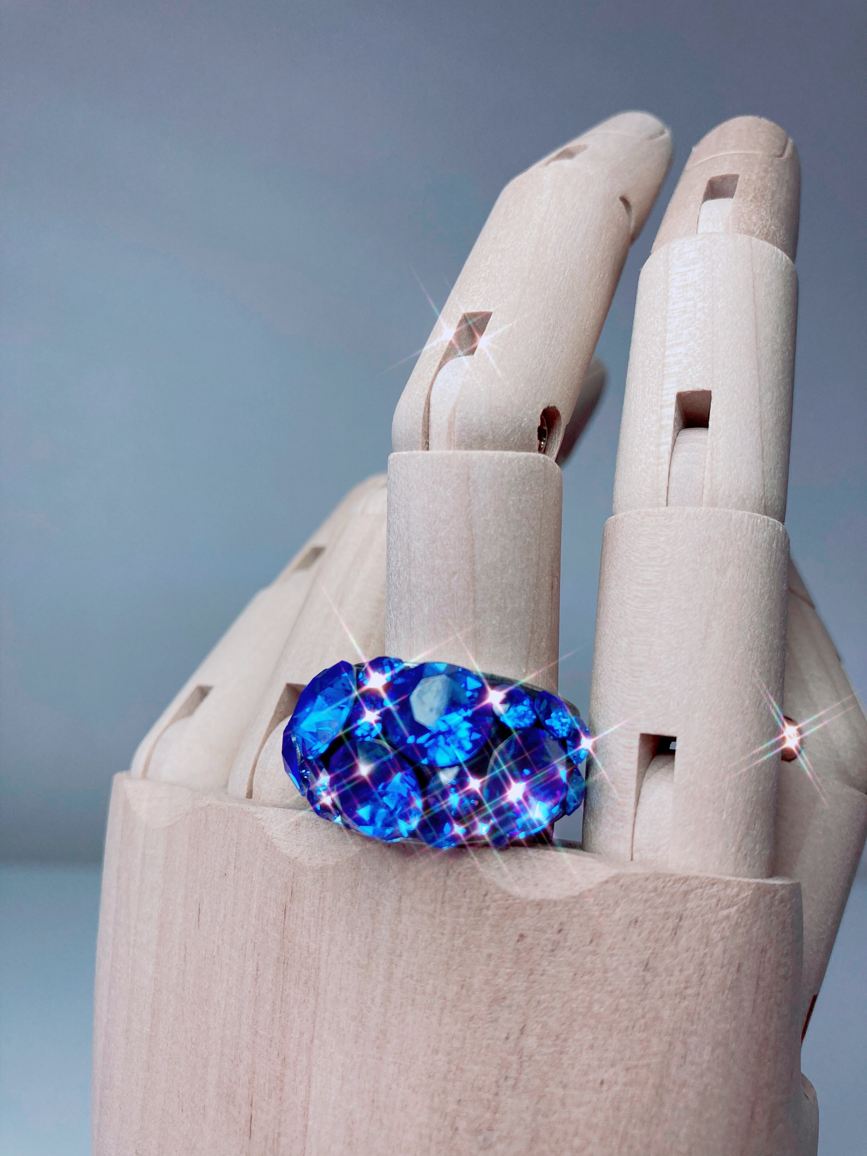 大ぶり 大人可愛い クリスタル ビジュー リング ゴージャス ボリューム ボリューミー 春 夏 秋 冬 ホリデーシーズン お出かけ カジュアル フォーマル パーティー バースデー バースデープレゼント ギフト プチギフト クリスマス クリスマスプレゼント 誕生日 サファイア ブルー