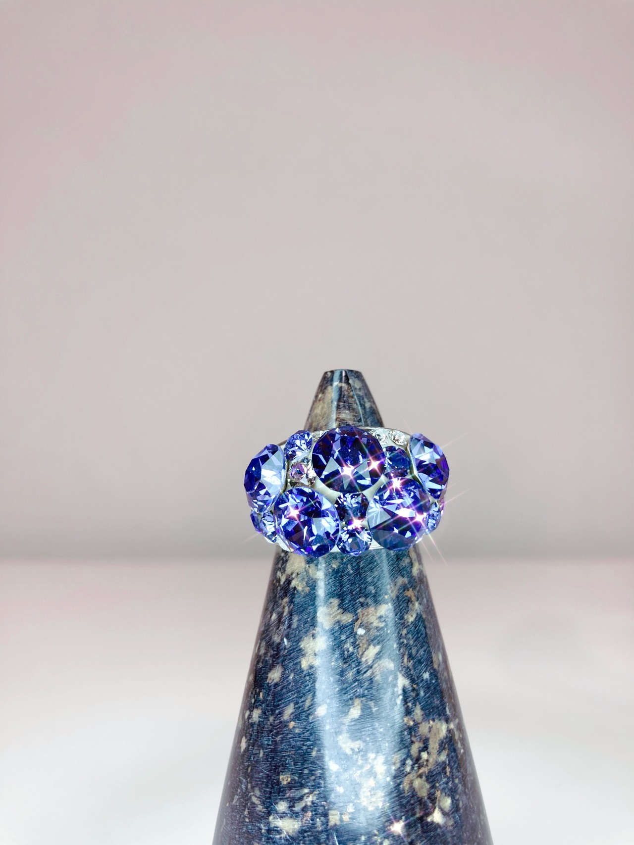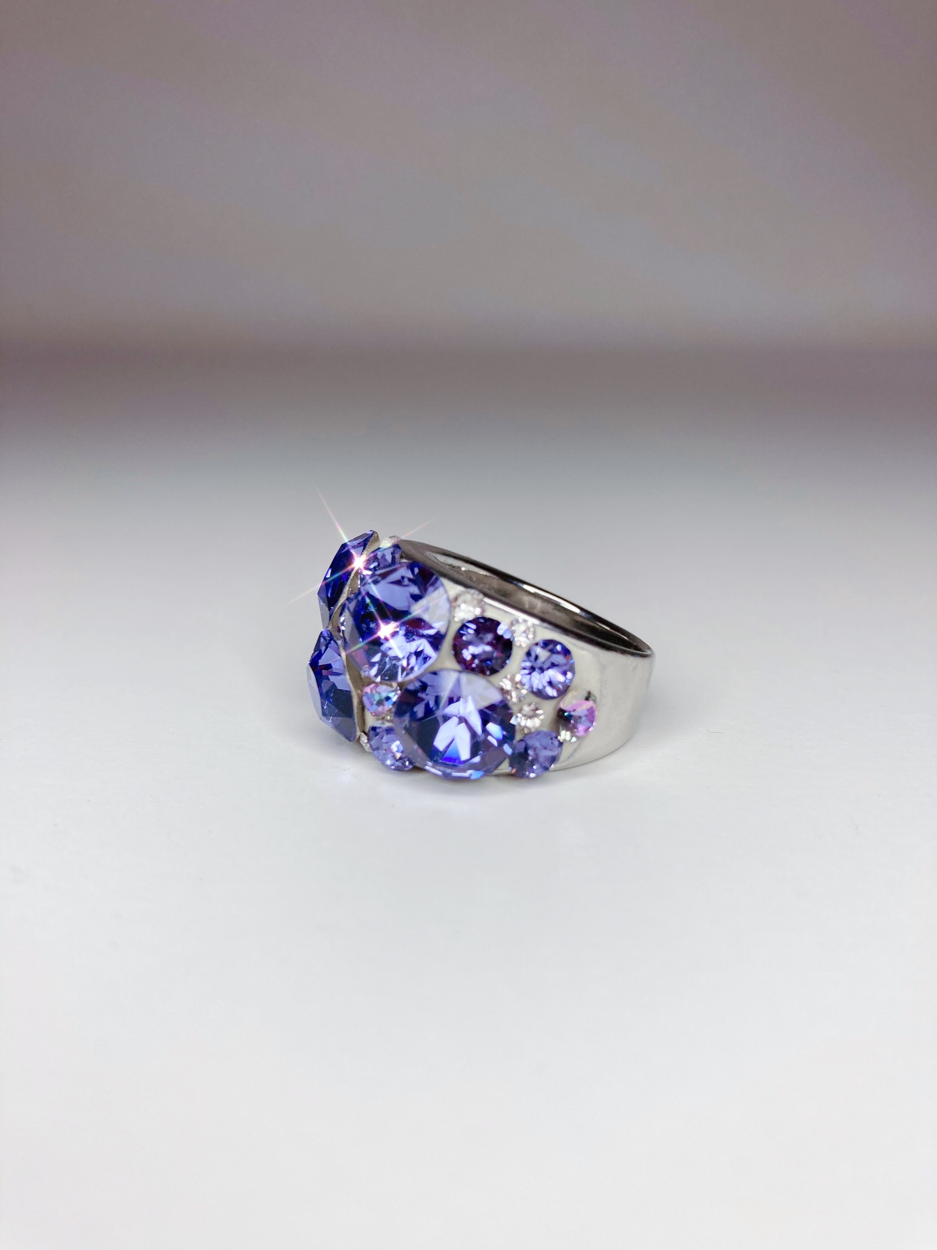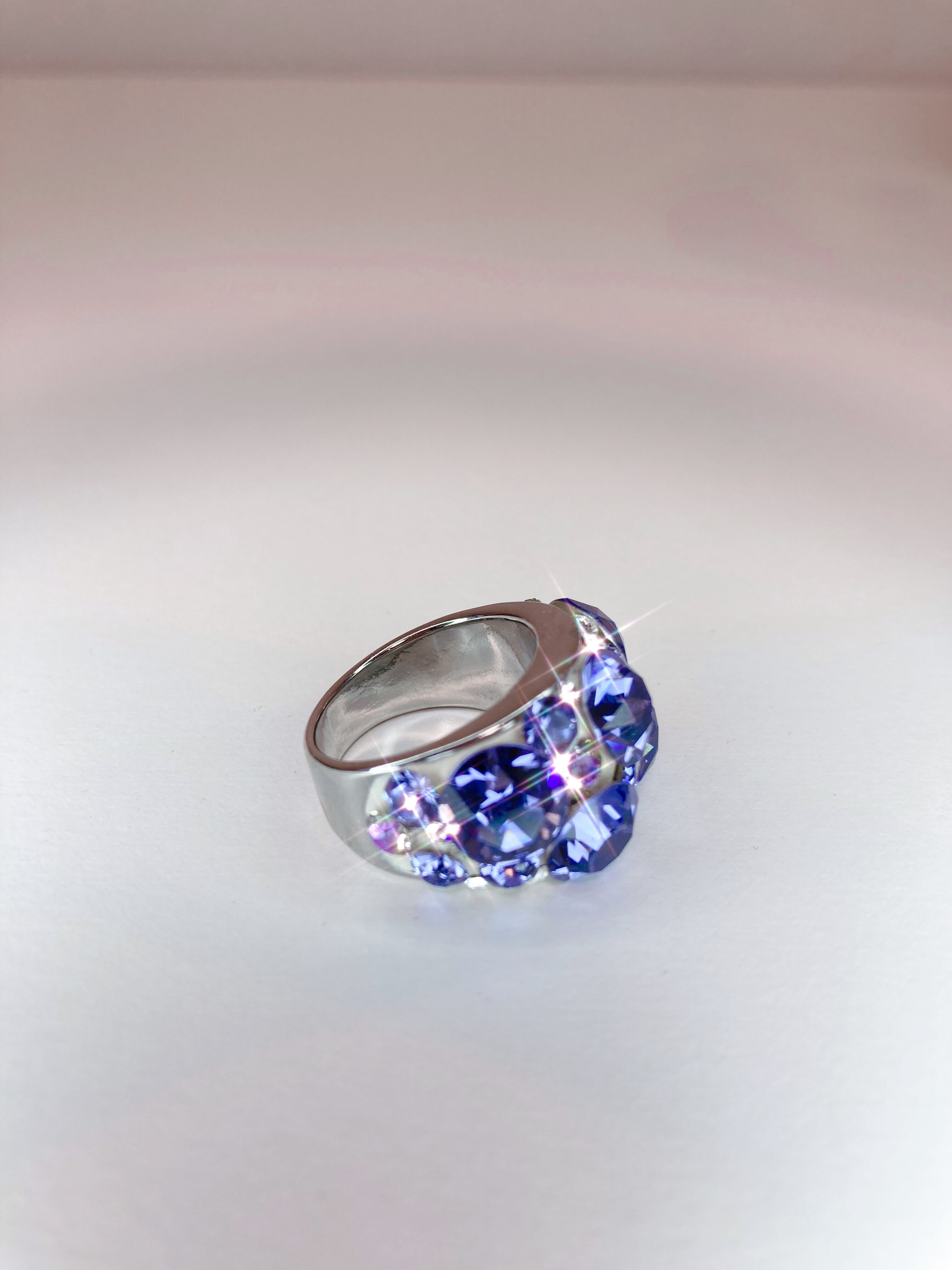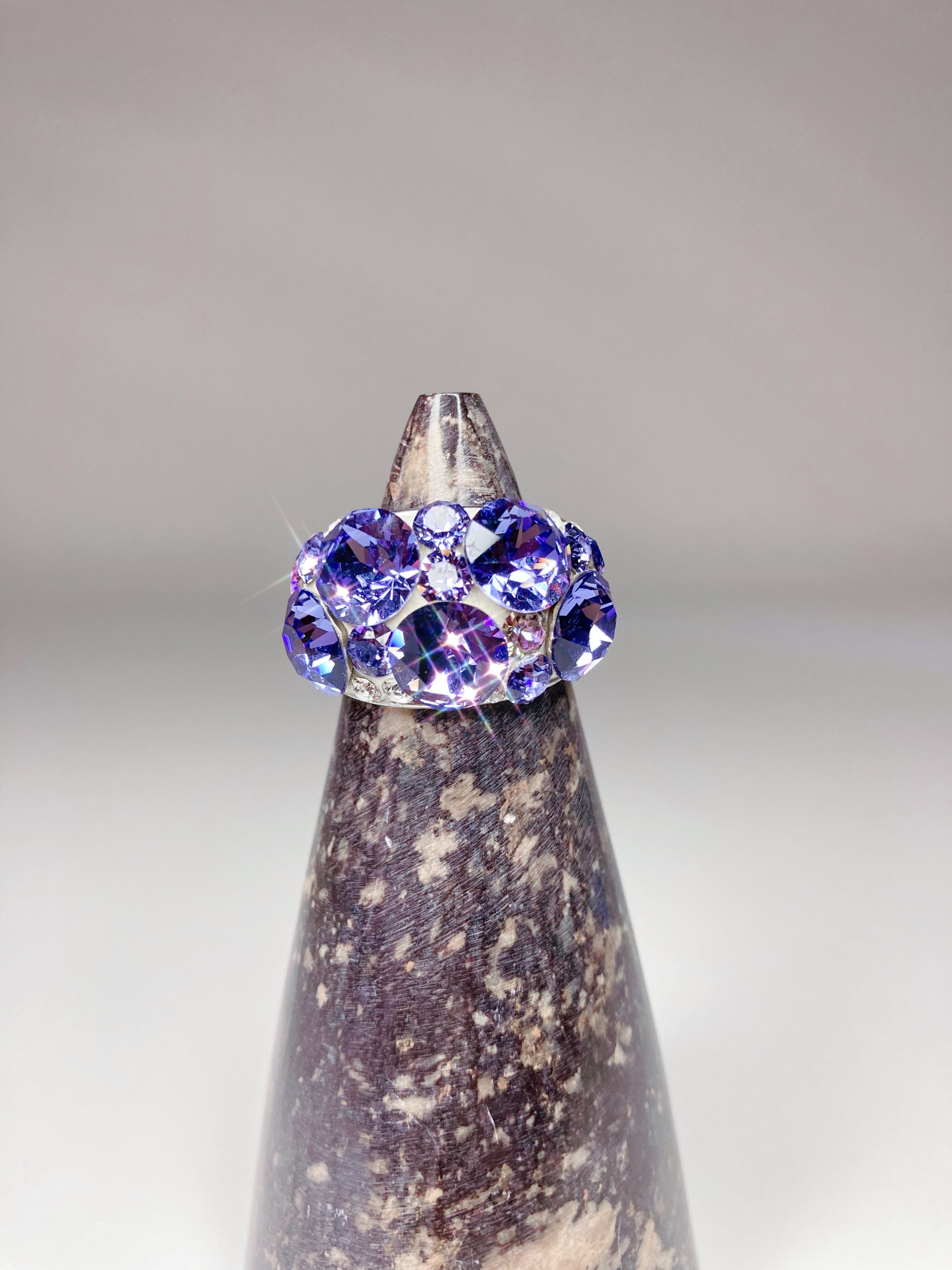 大ぶり クリスタル ビジュー リング キュート ゴージャス ボリューム ボリューミー 大ぶり 春 夏 秋 冬 12月 ホリデーシーズン お出かけ カジュアル オケージョン フォーマル パーティー バースデープレゼント プチギフト バースデー クリスマス クリスマスプレゼント クリスマスギフト 記念日 12月 タンザナイト パープル