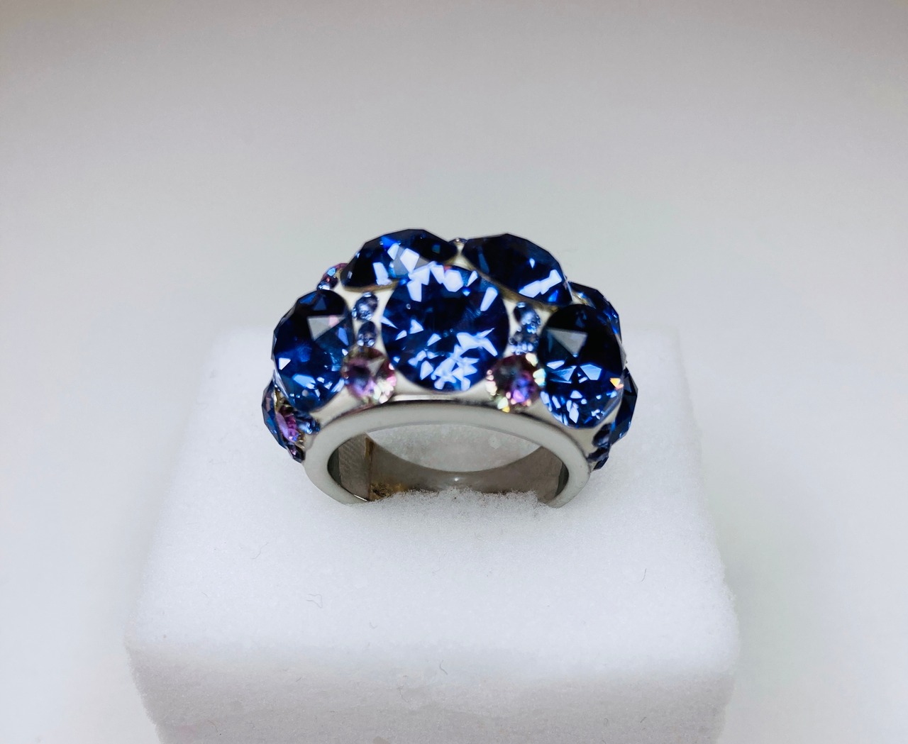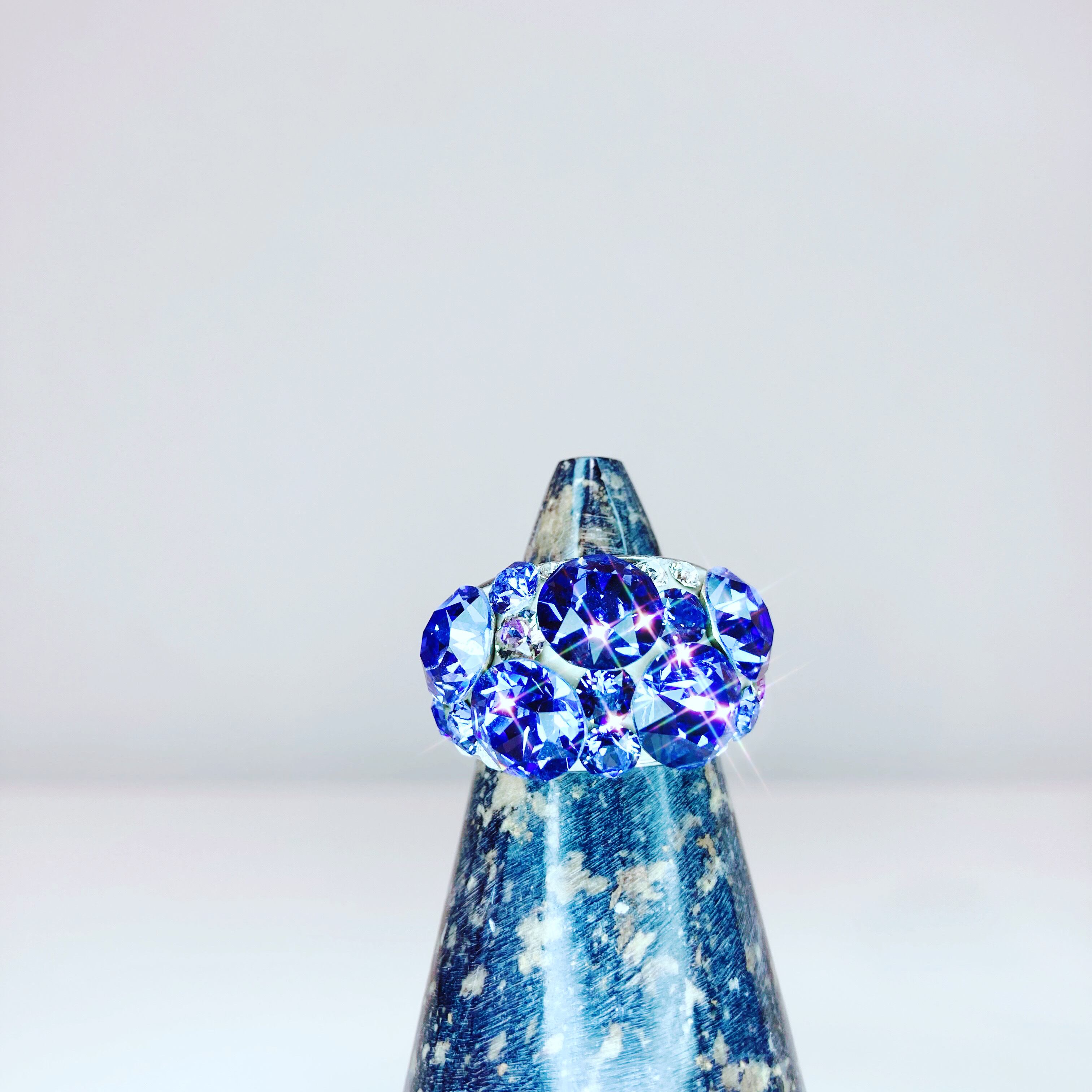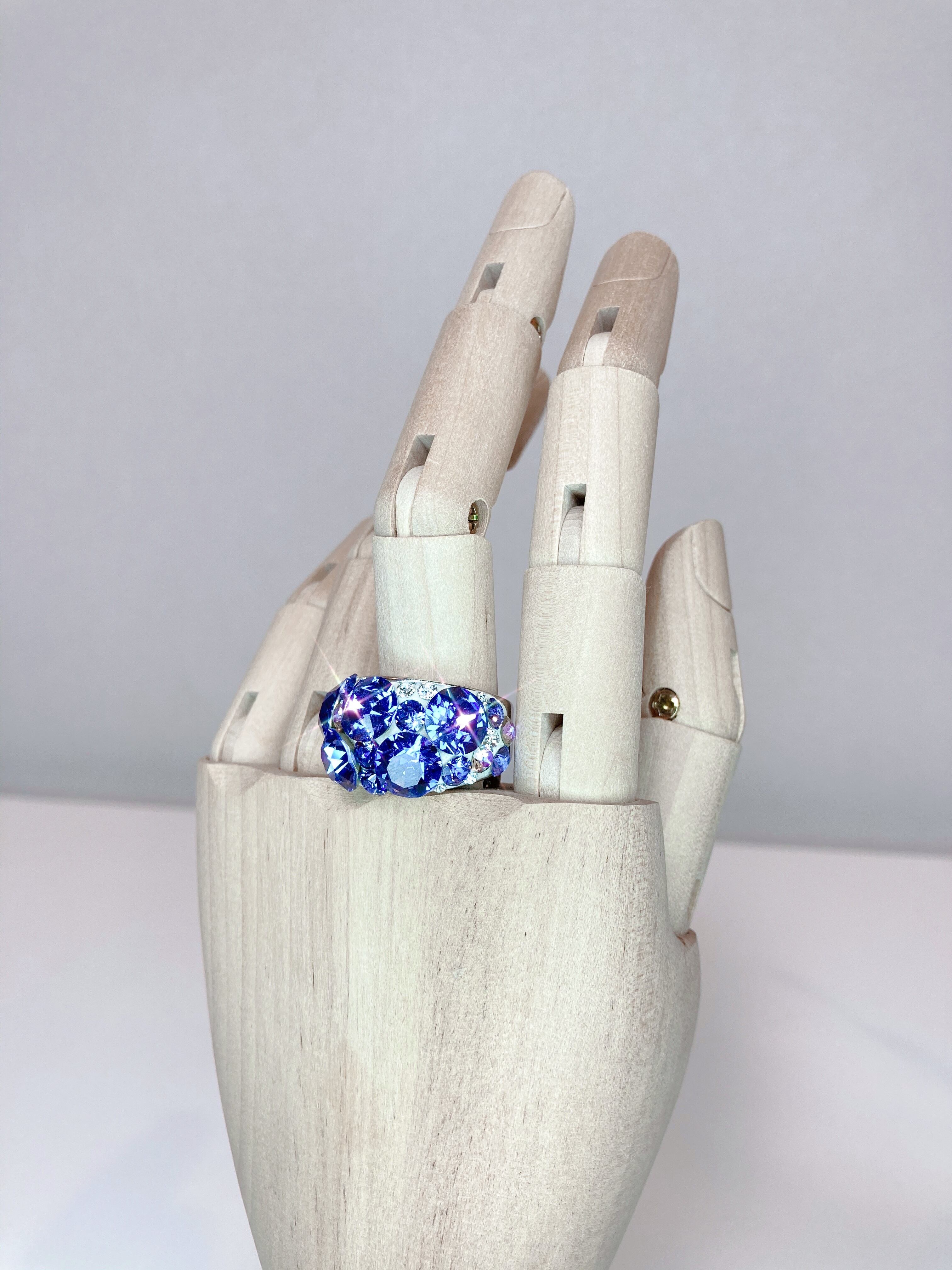 タンザナイトをイメージしてクリスタルで表現したリングですので、バースデーリングとしても最適です。