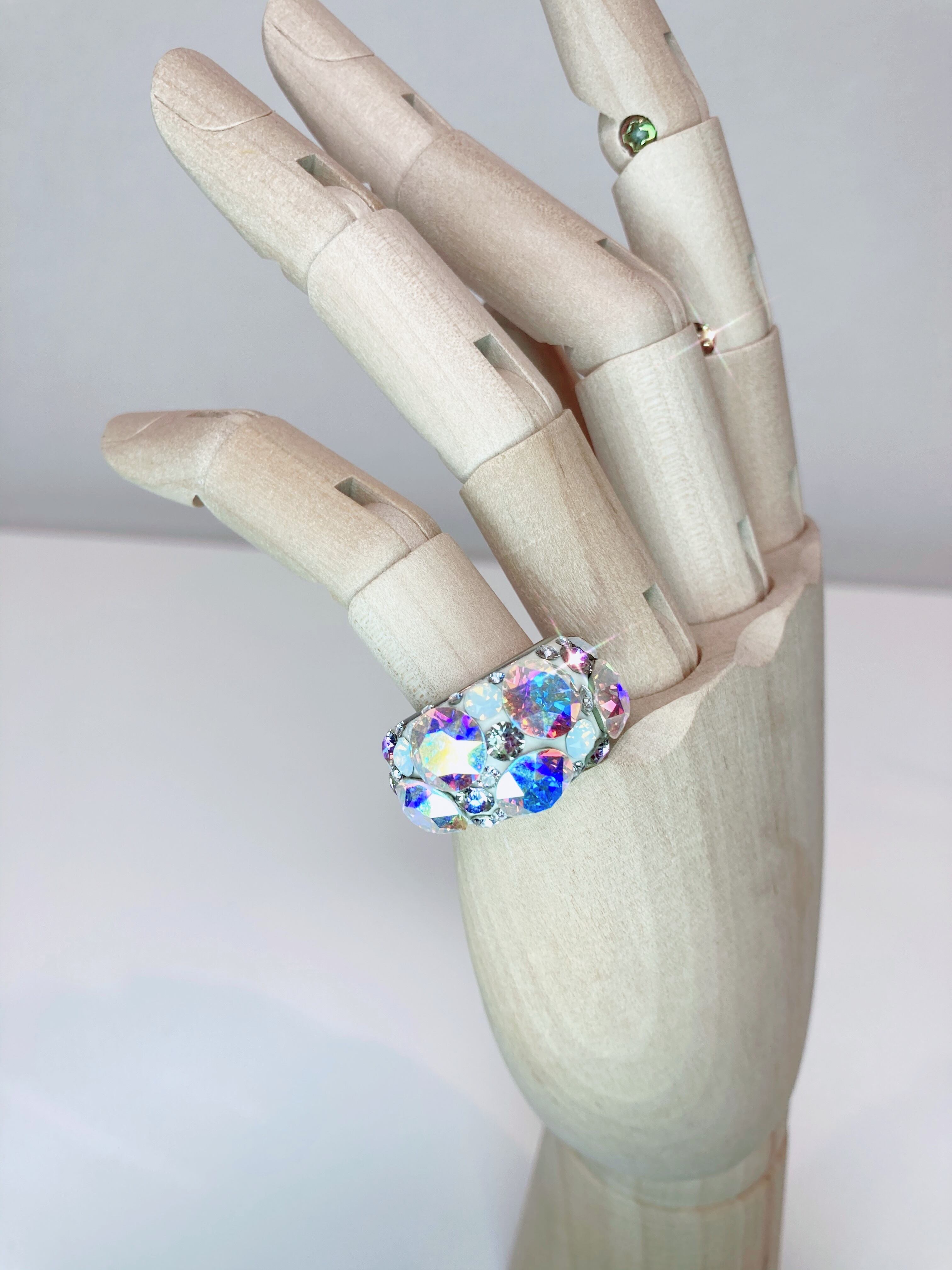 最高級の輝きを放つクリスタルのみを贅沢にクレイに散りばめたリングです。