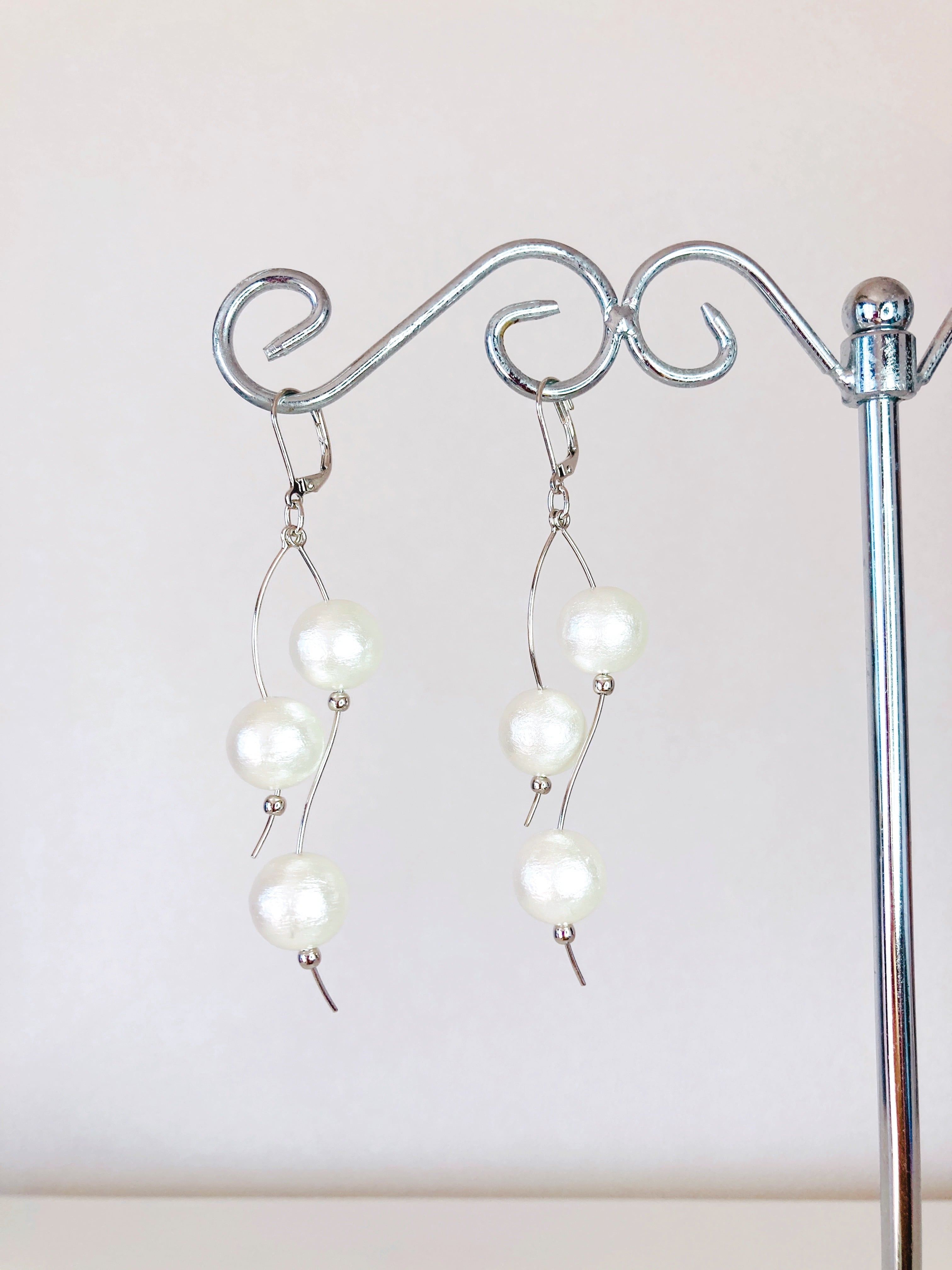 優しさ溢れる光沢のコットンパールを3粒使用した