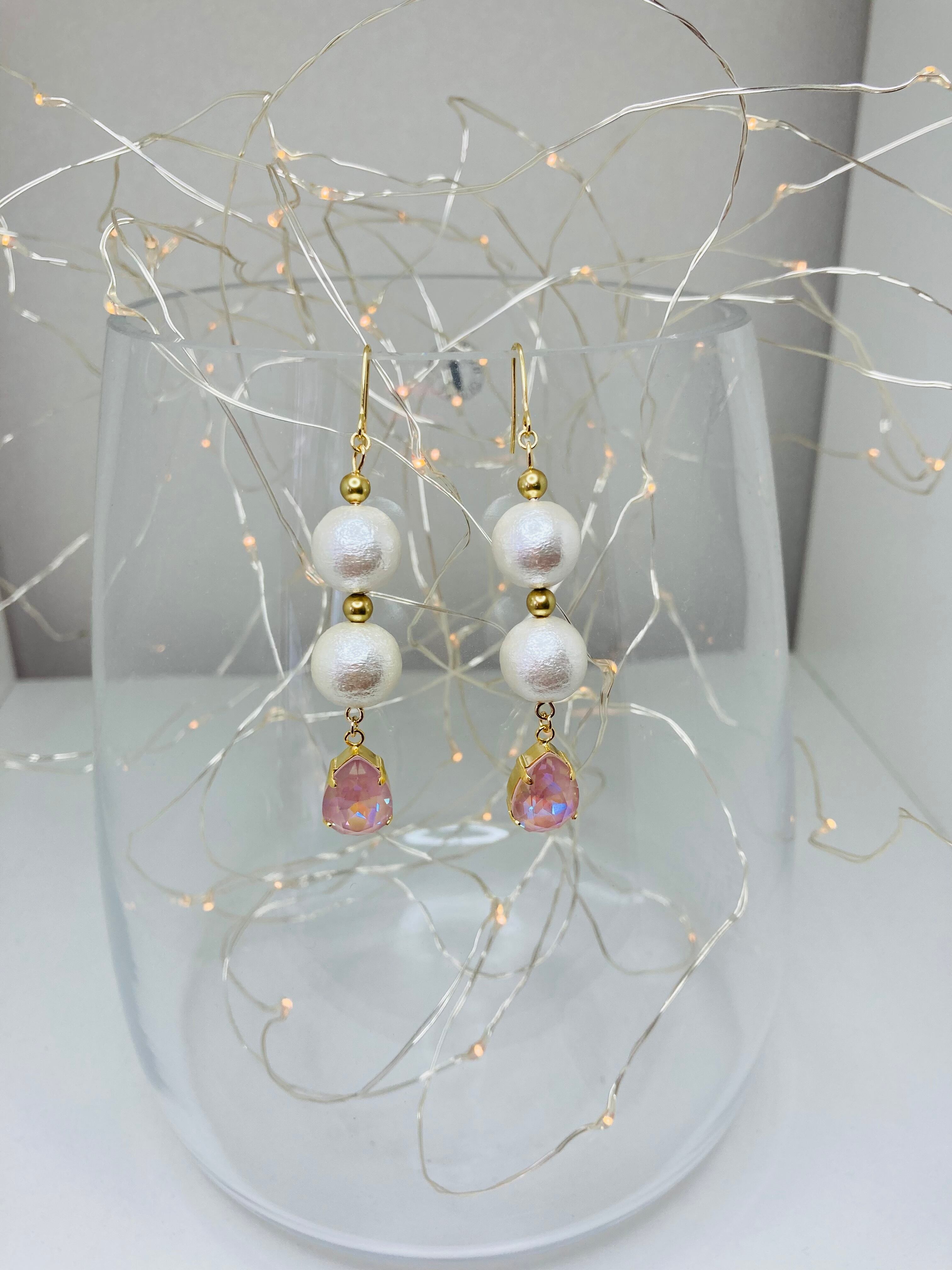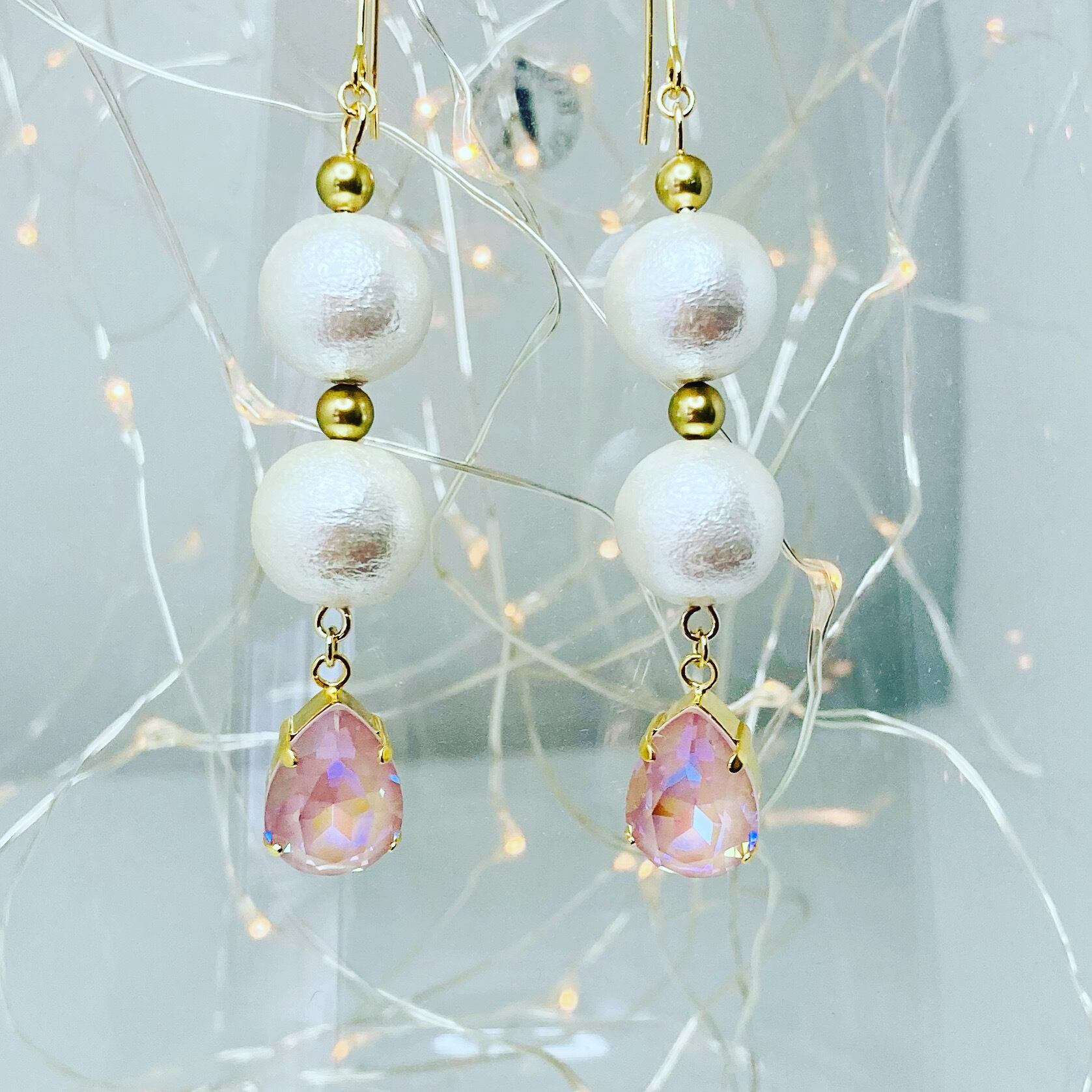 クリスタルには、2022春夏の新色、クリスタルダスティピンクディライトの大ぶりなドロップを使用。