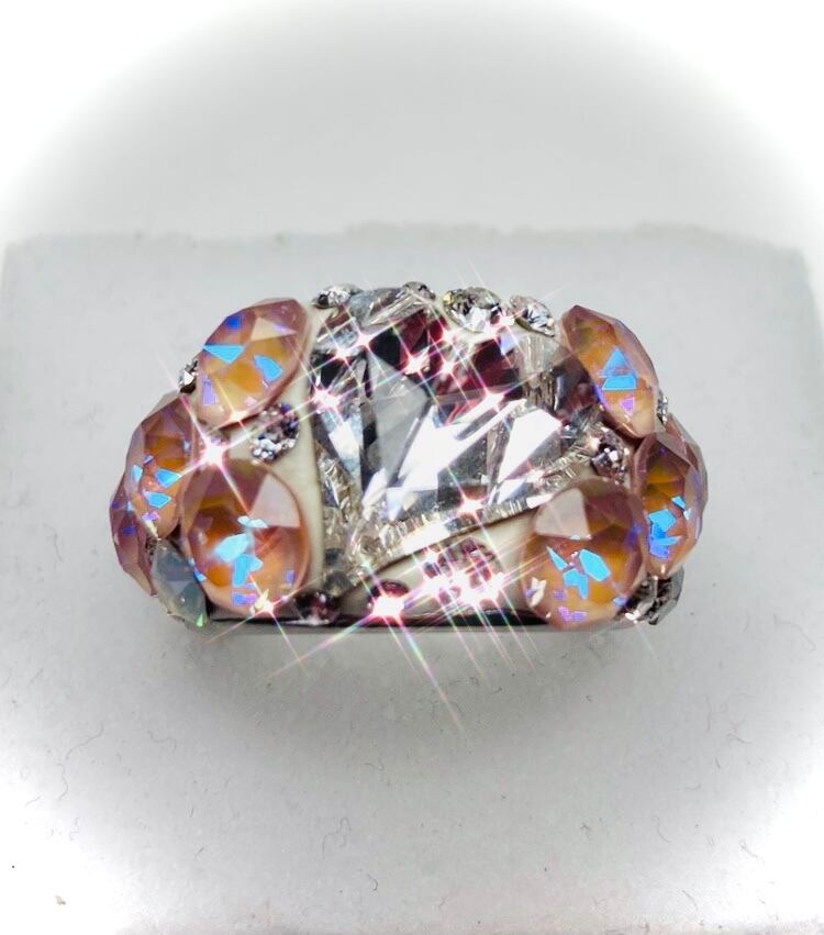 中央に大きなハート、その周りにはクリスタルダスティピンクディライトを散りばめ、とってもキュートな仕上がりとなっております。