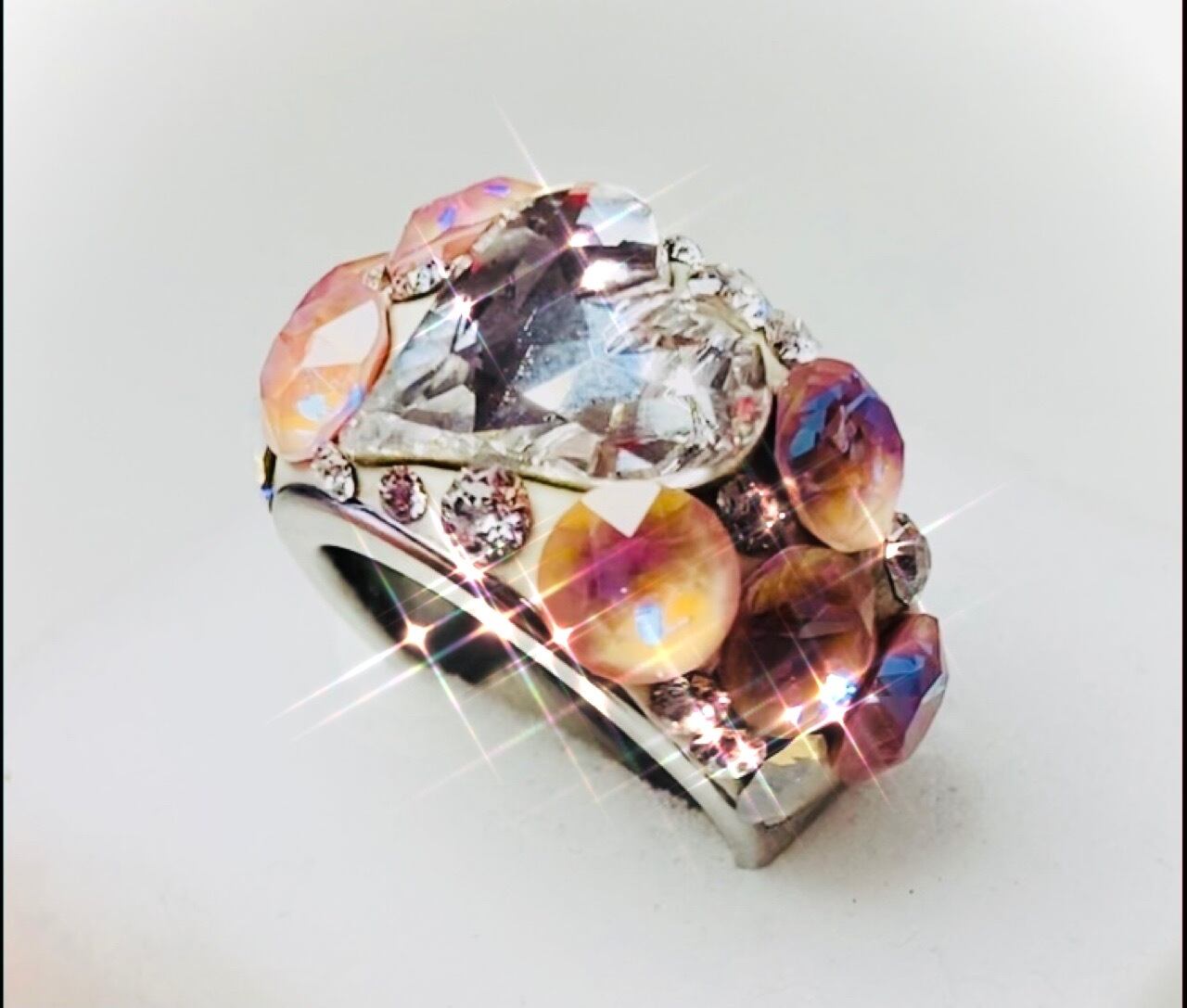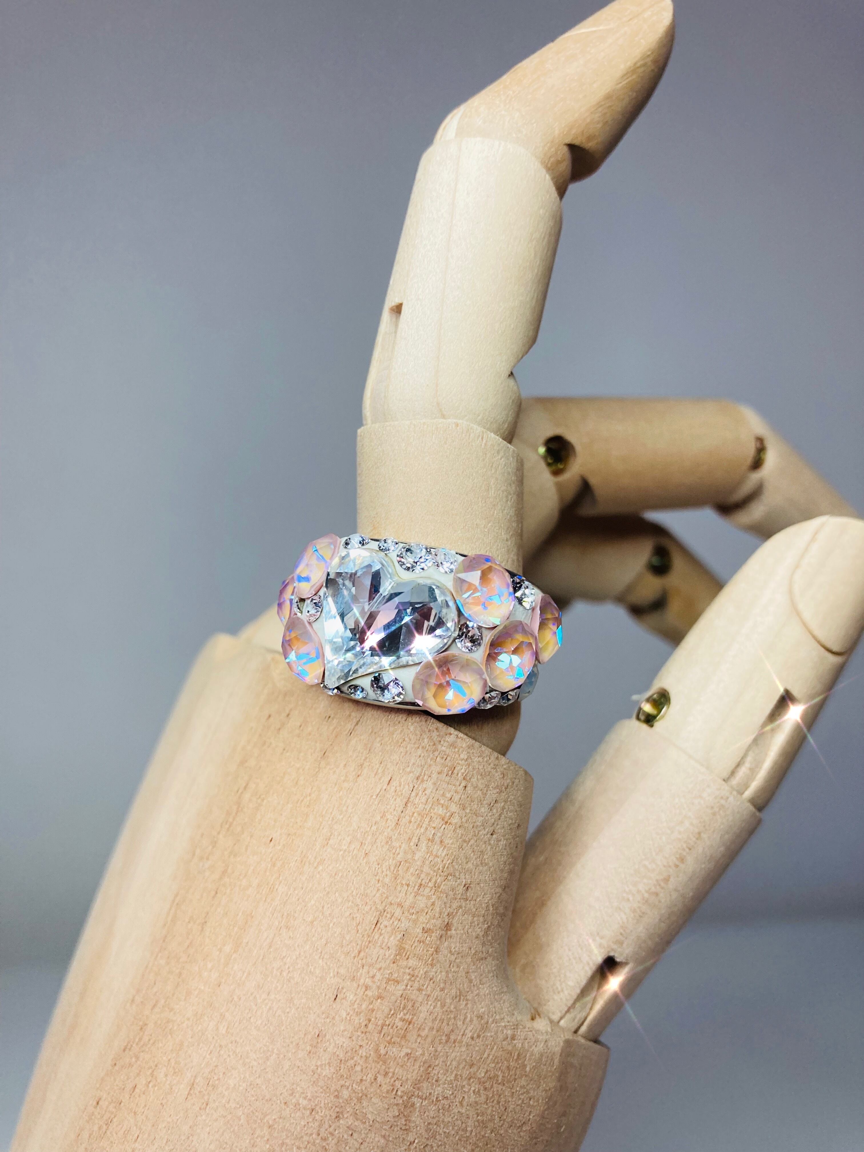 最高級の輝きを放つクリスタルのみを贅沢に散りばめたハートリングです。