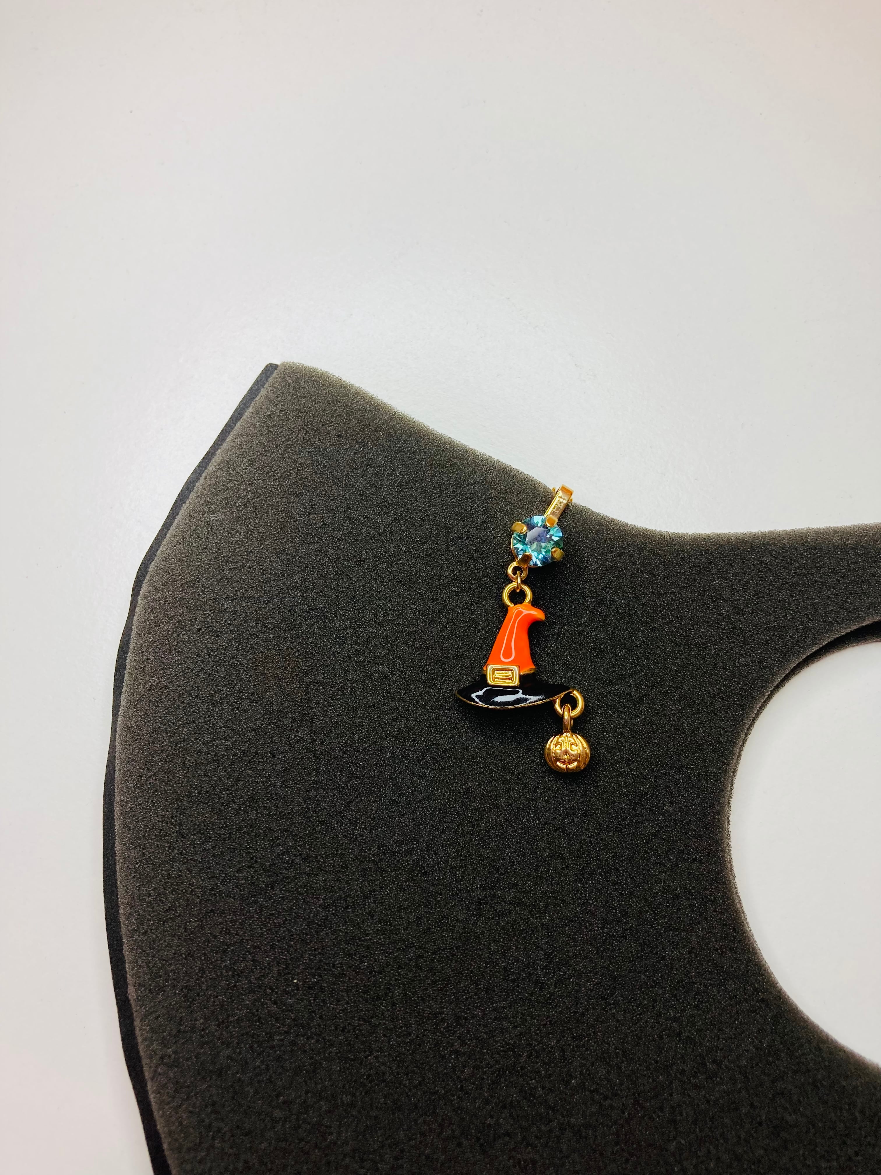 魔女の帽子とクリスタルを組み合わせたマスクチャームです。