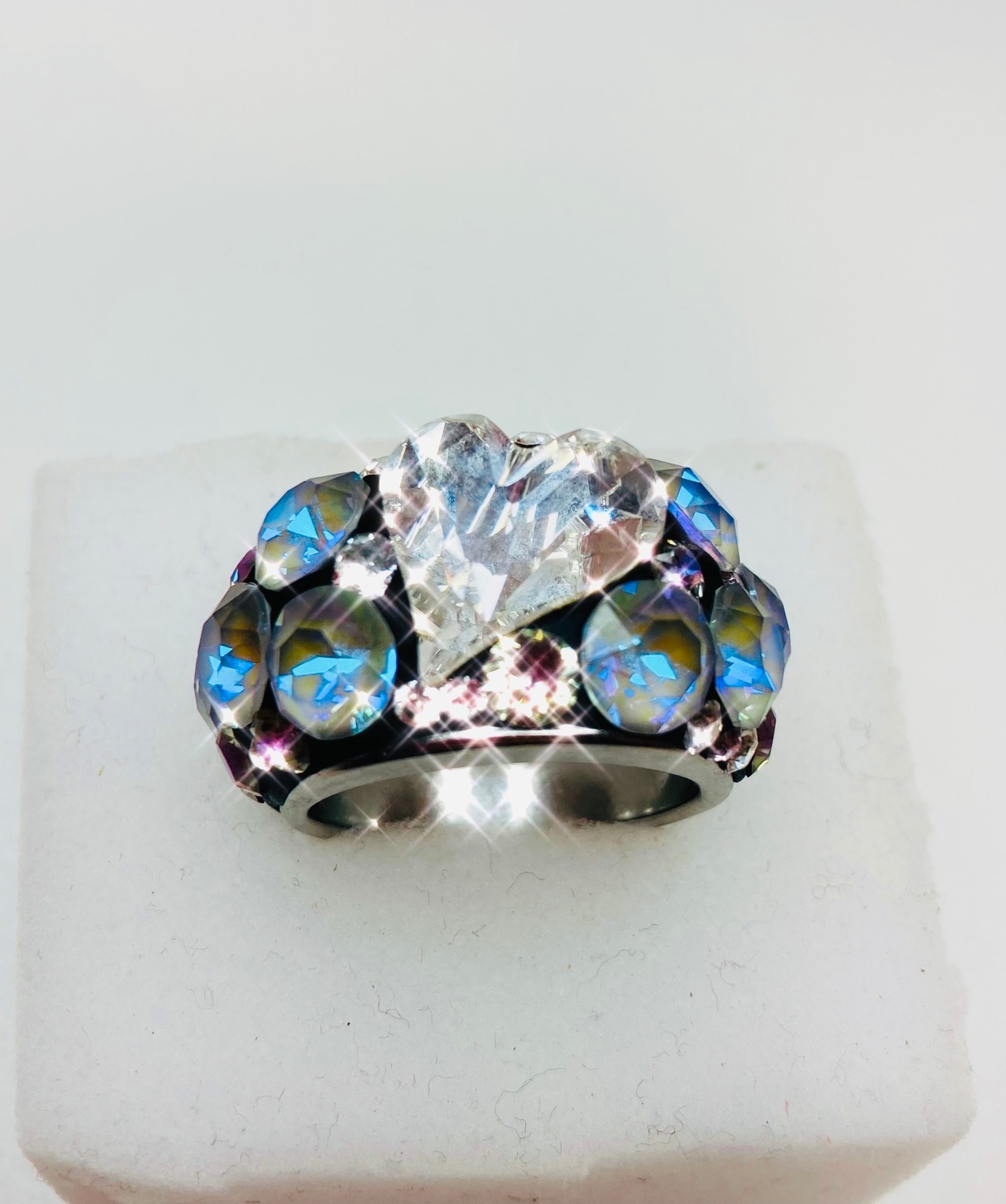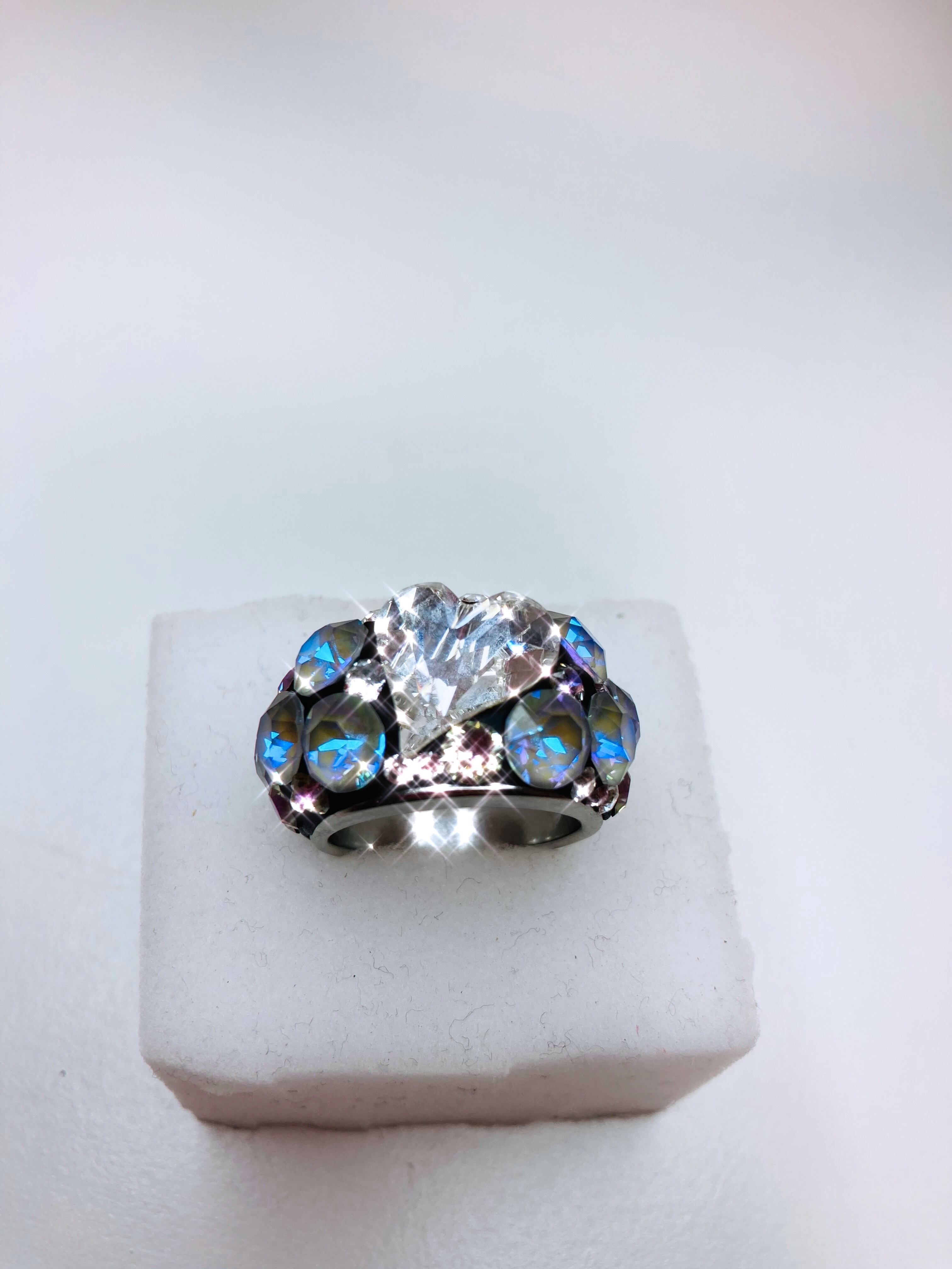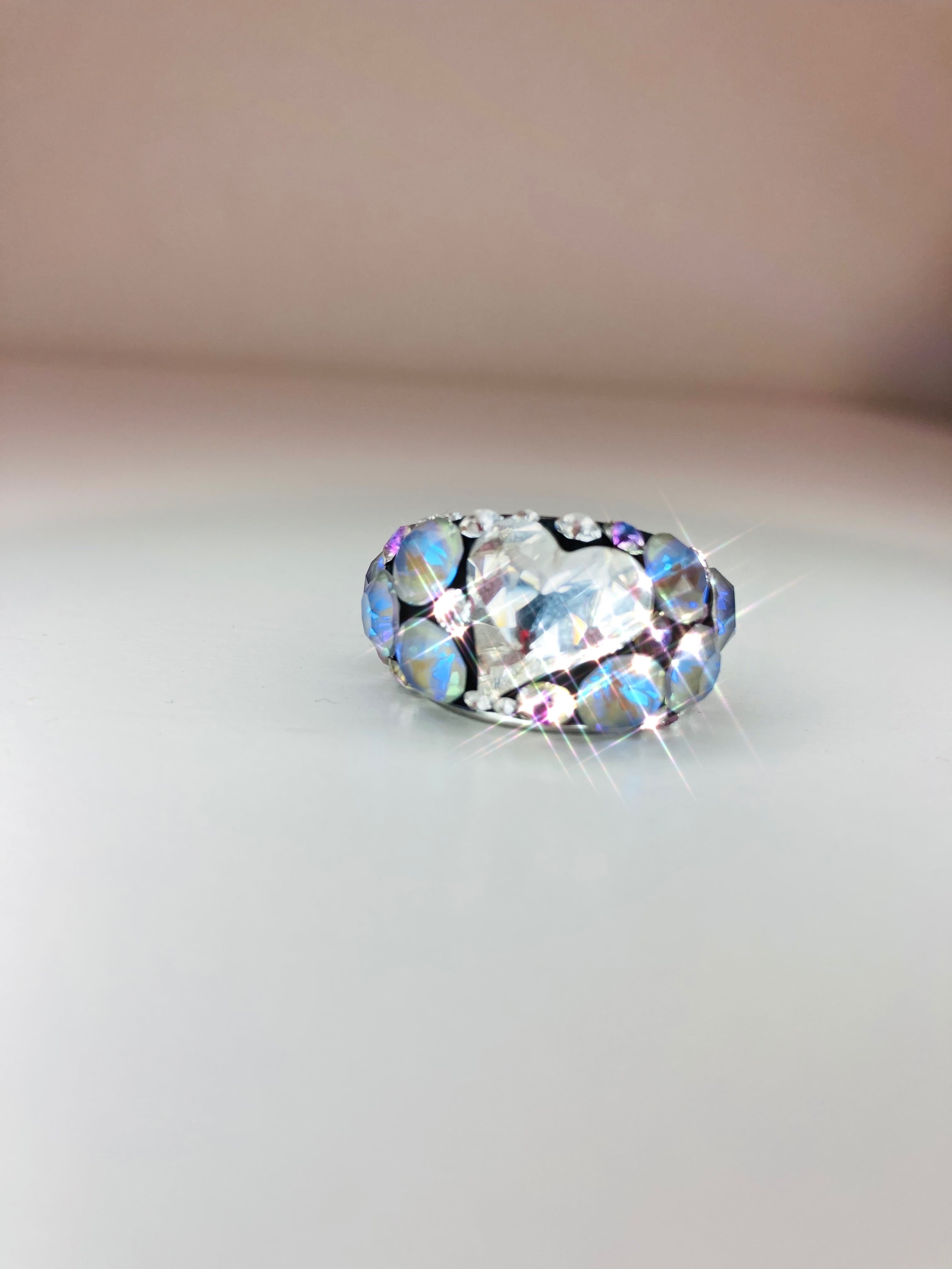 最高級の輝きを放つクリスタルのみを贅沢に散りばめたハートリングです。