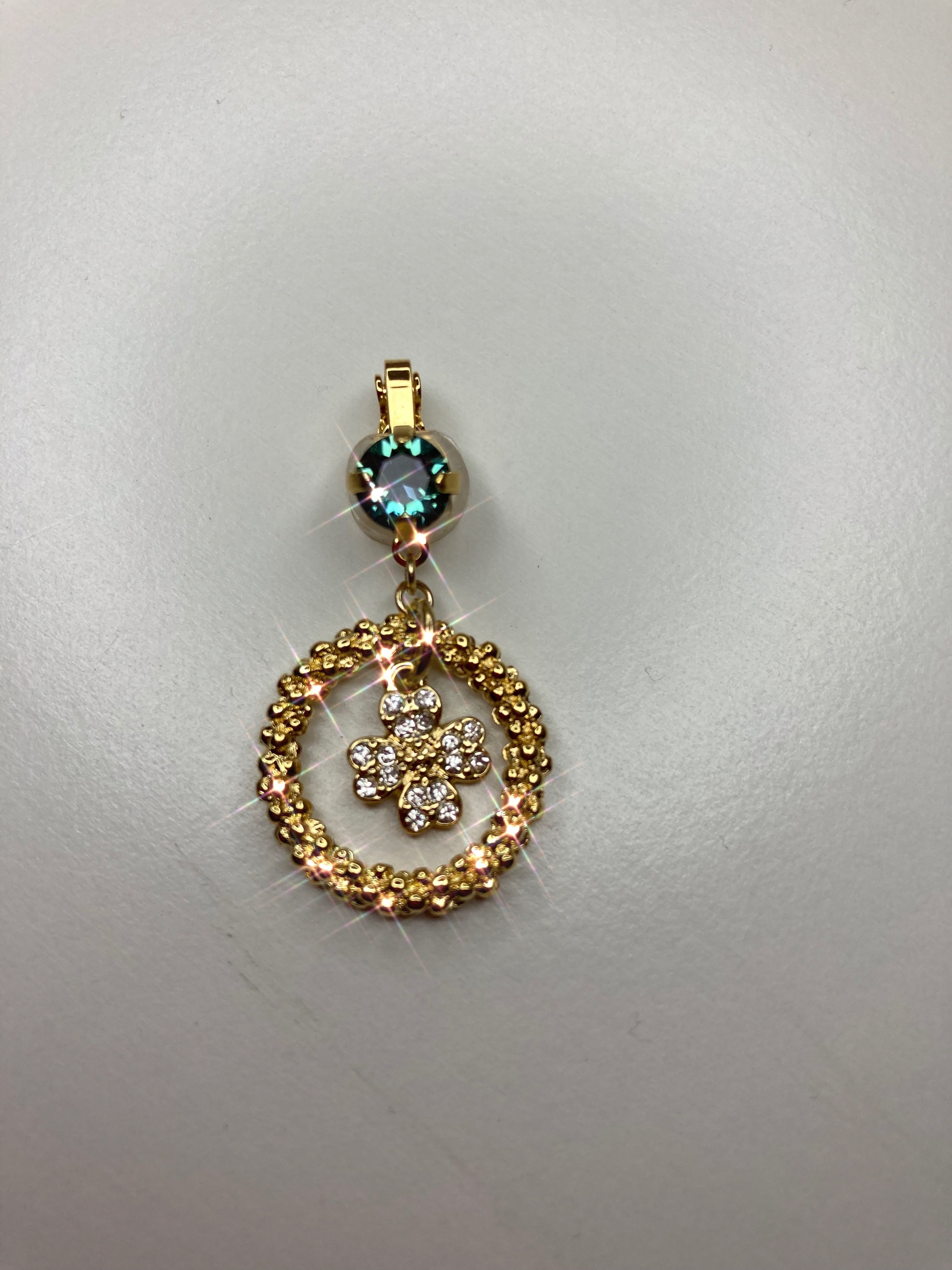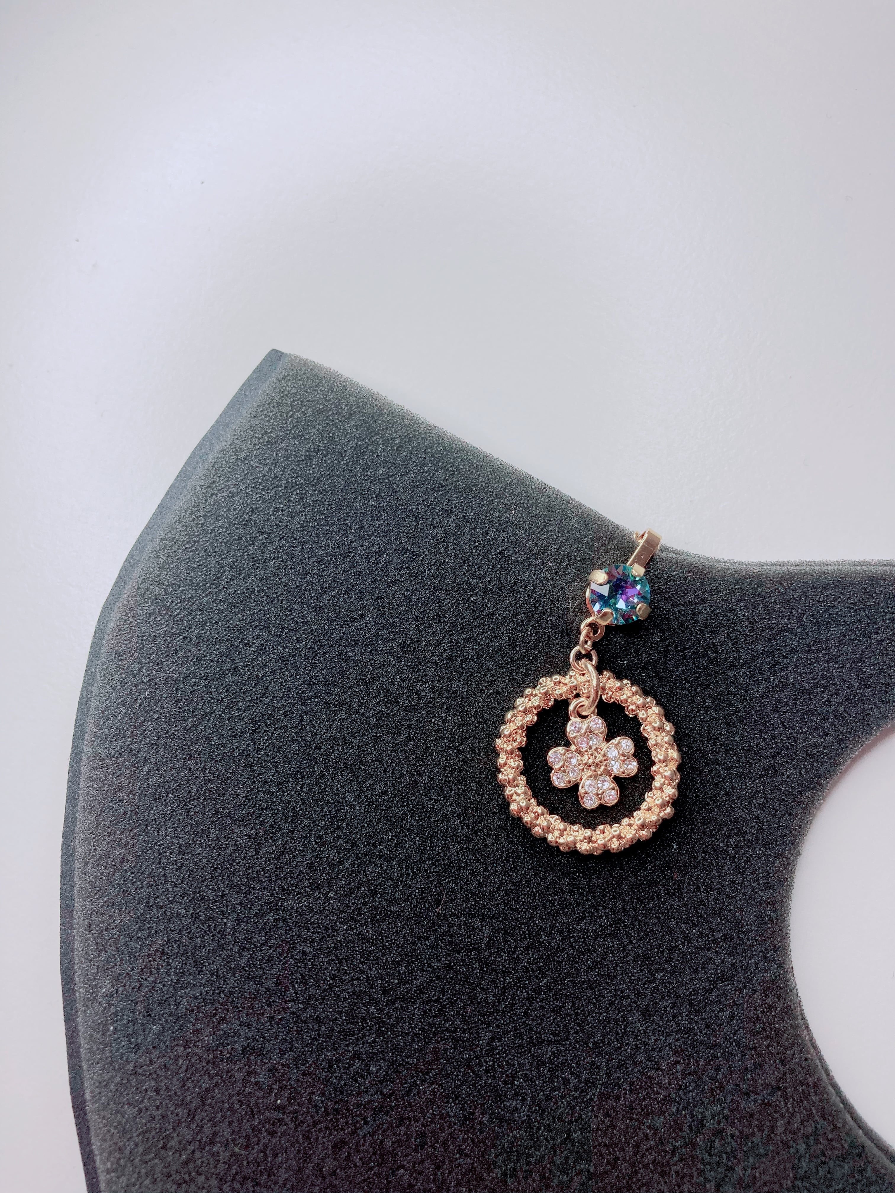 最高級の輝きを放つクリスタルを1粒とキュートな揺れるラッキークローバーのマスクチャームです。