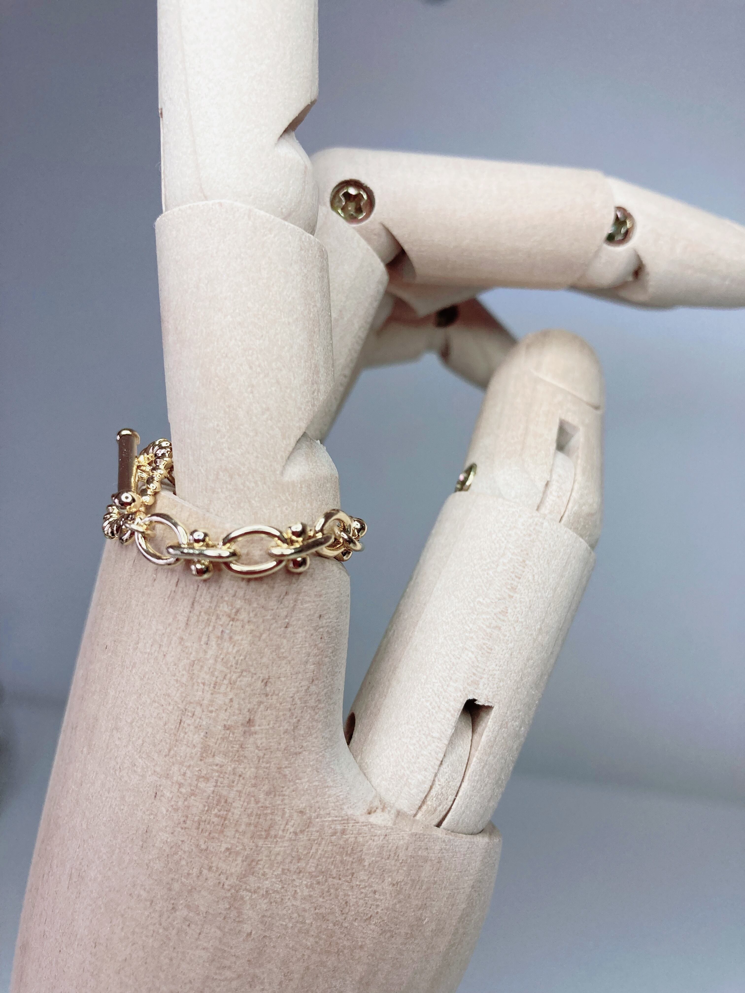 デザインチェーンにマンテルの留め具を使用したリングです。