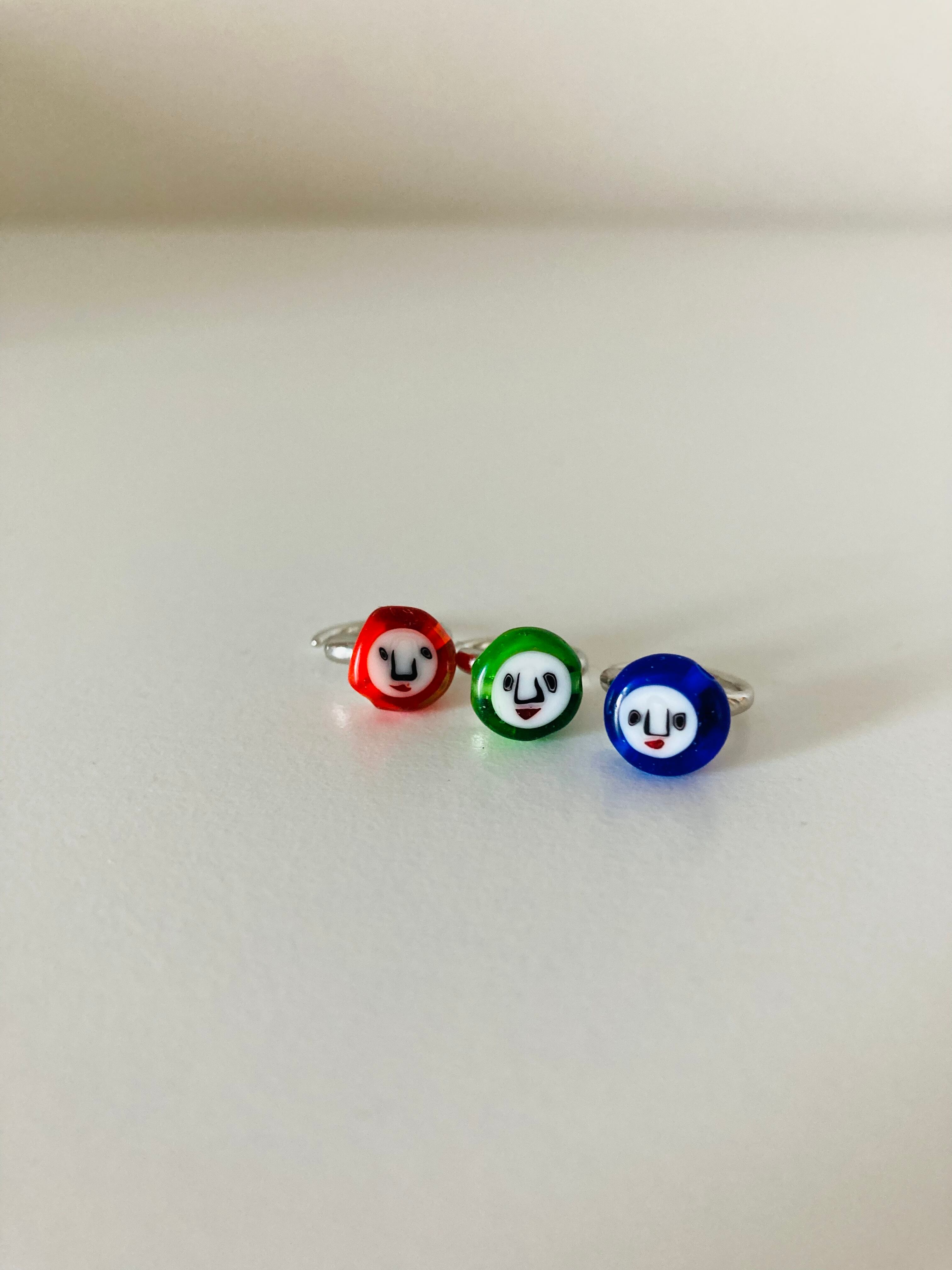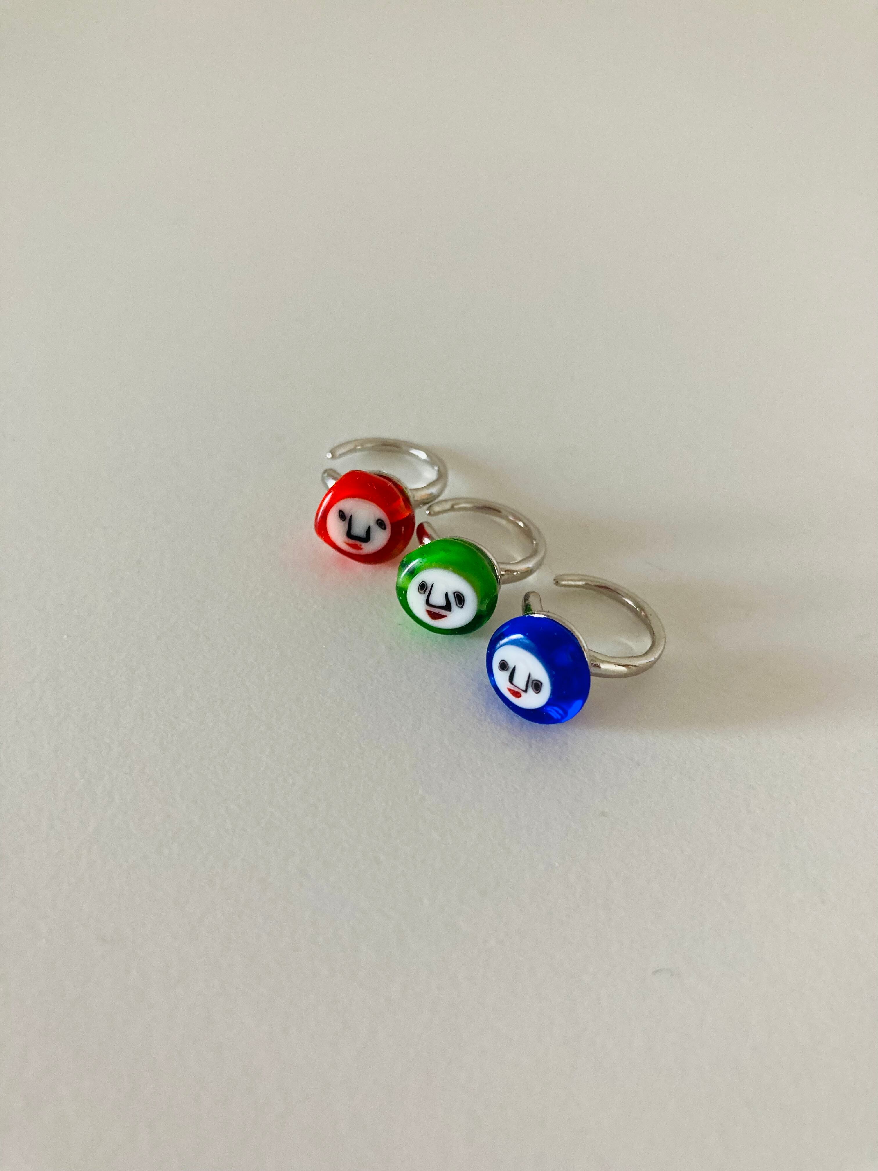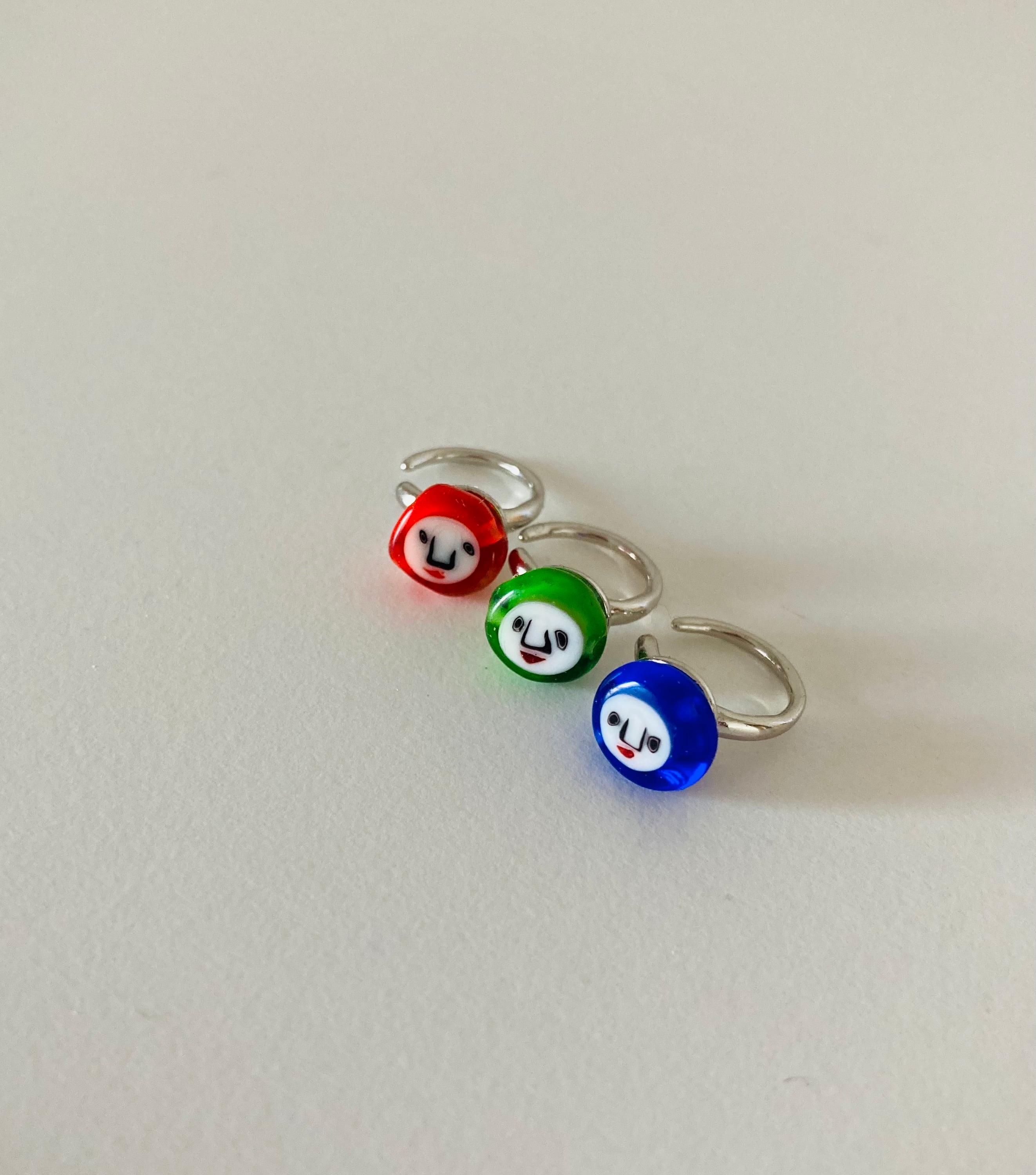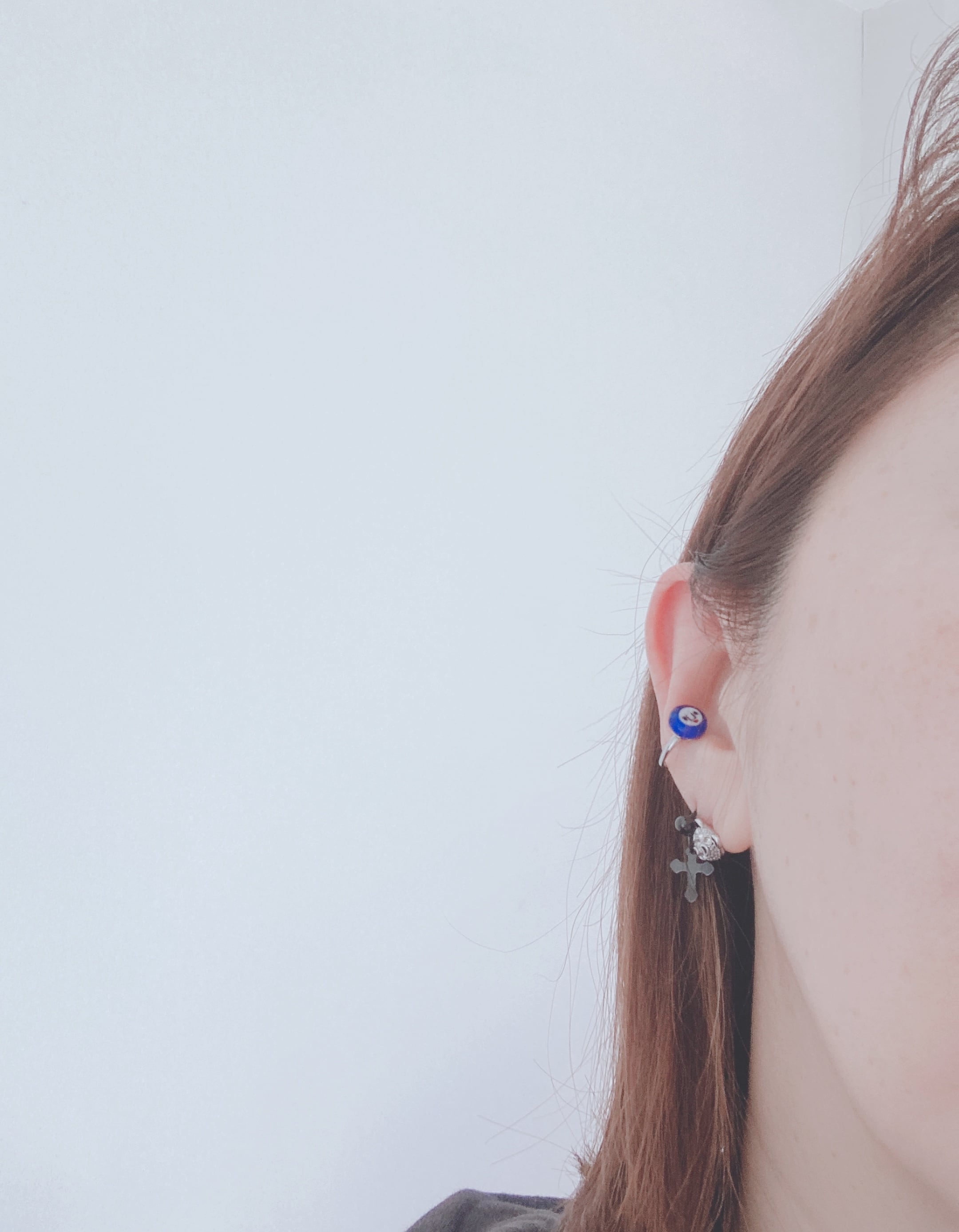 シュールな表情がなんとも可愛いガラスビーズでイヤーカフ、作ってみました♪