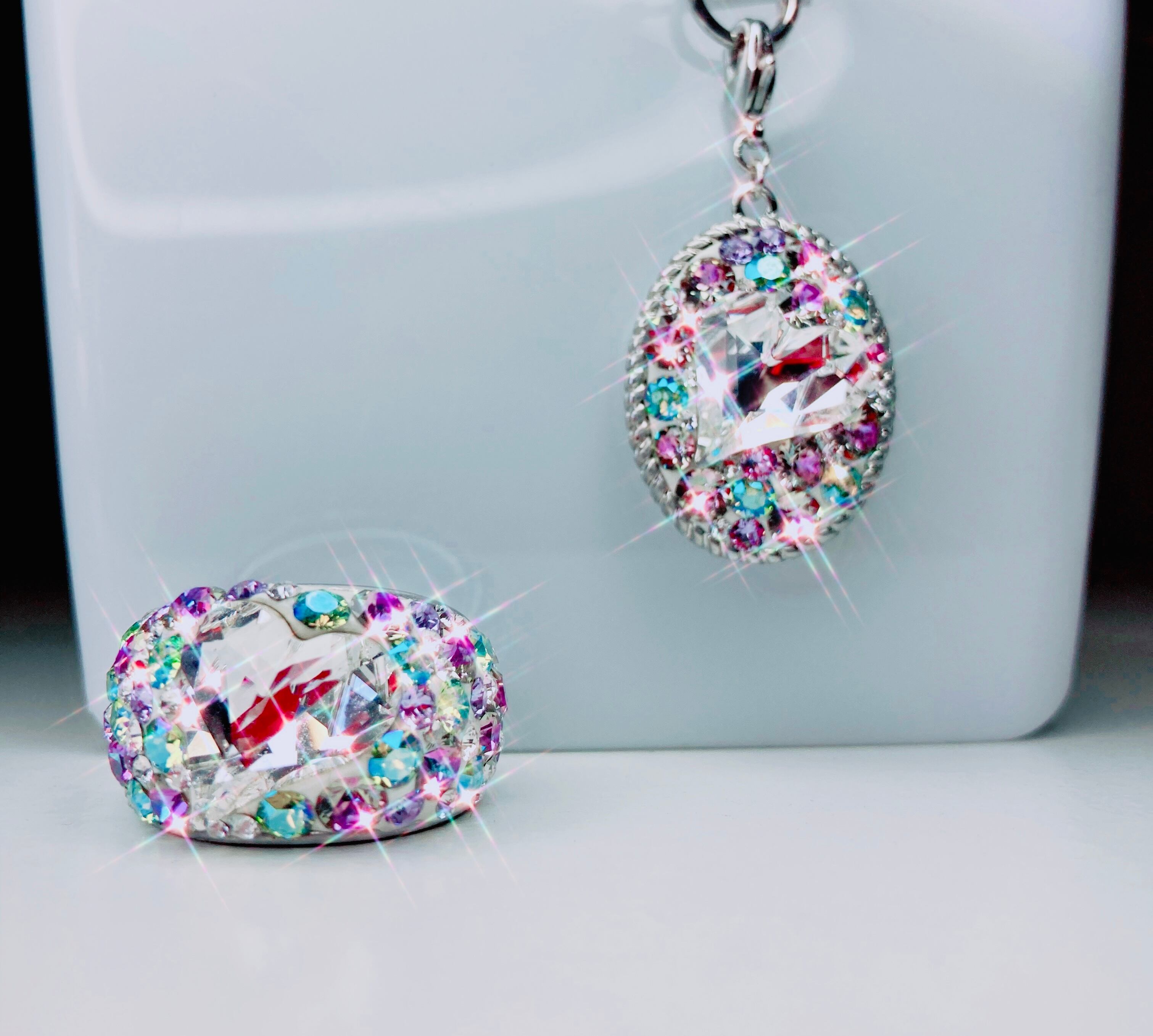 中央に大きなハート、その周りには、多彩な輝きを放つペリドットシマーやヴィトラルライトをメインに散りばめ、とってもキュートな仕上がりとなっております。