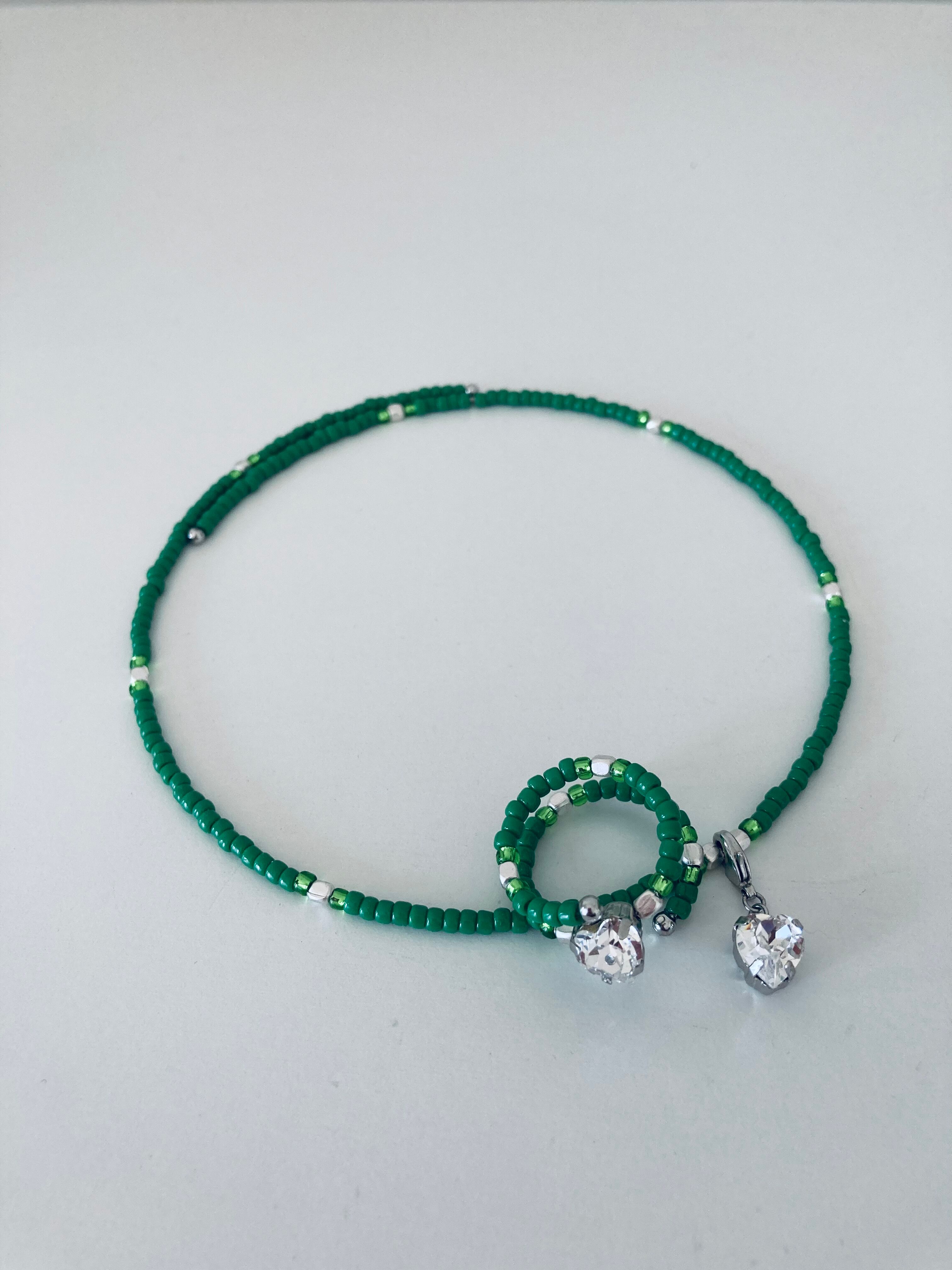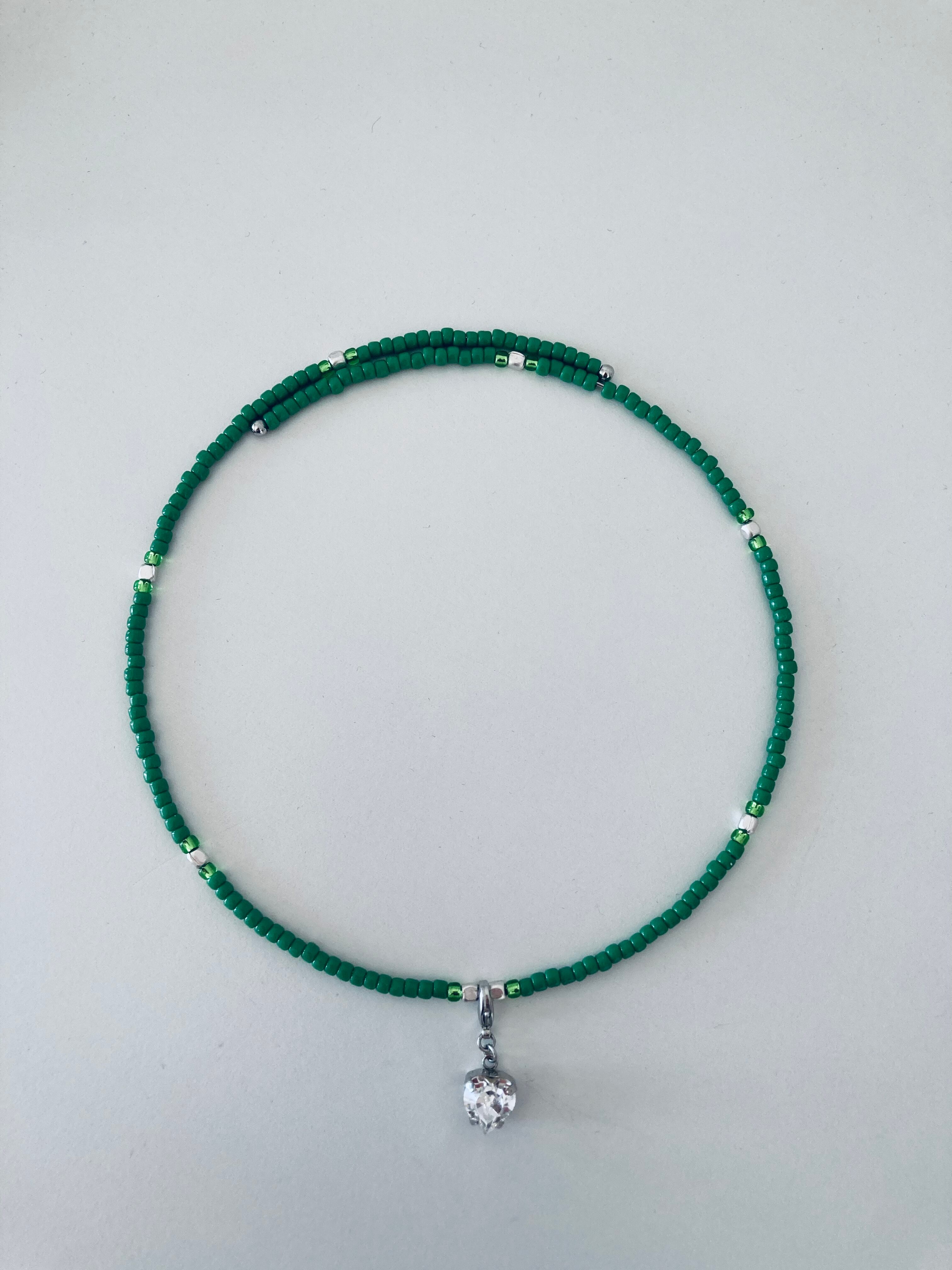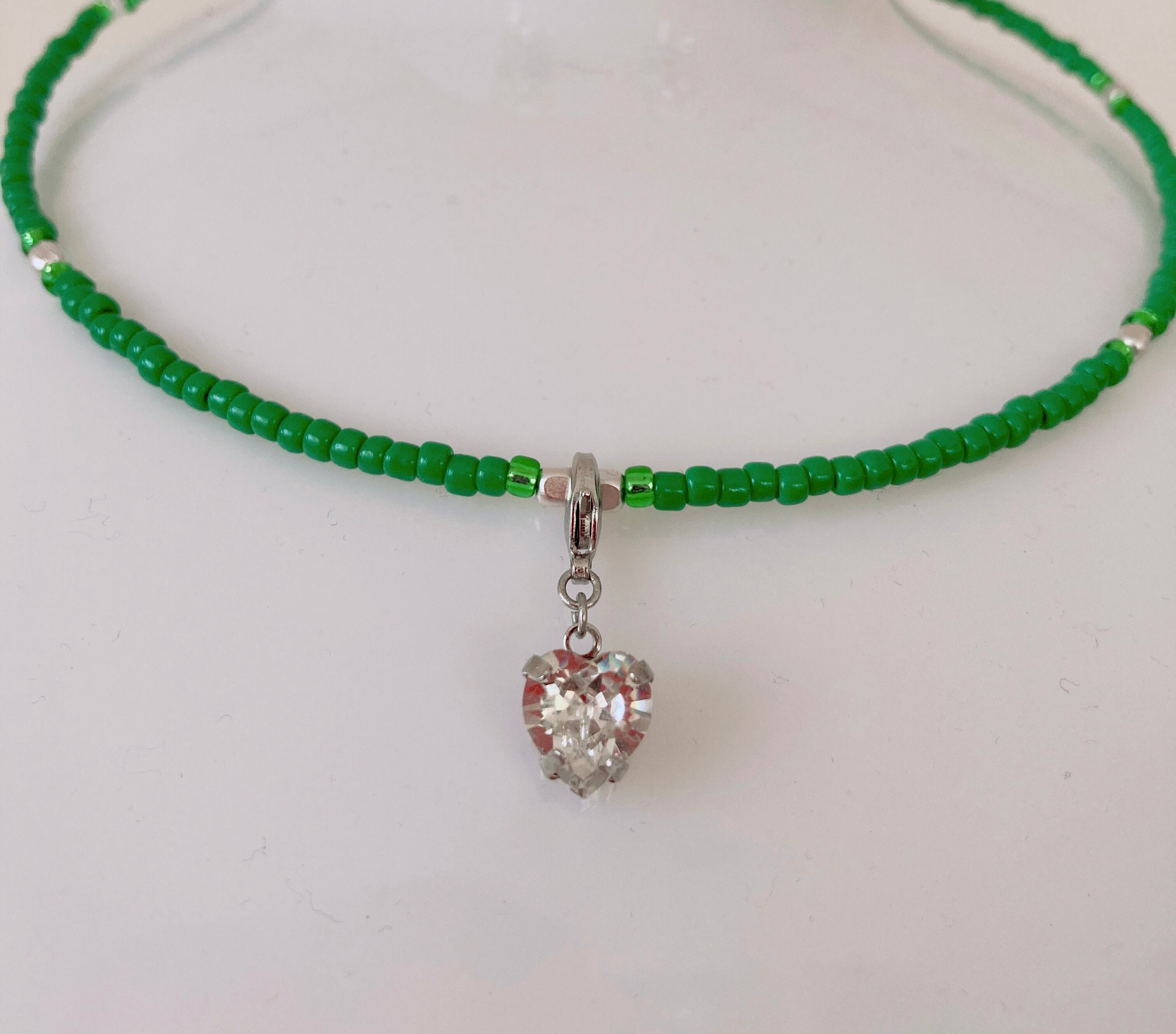 グリーンビーズのネックレスに、取り外し可能なクリスタルハートチャーム付