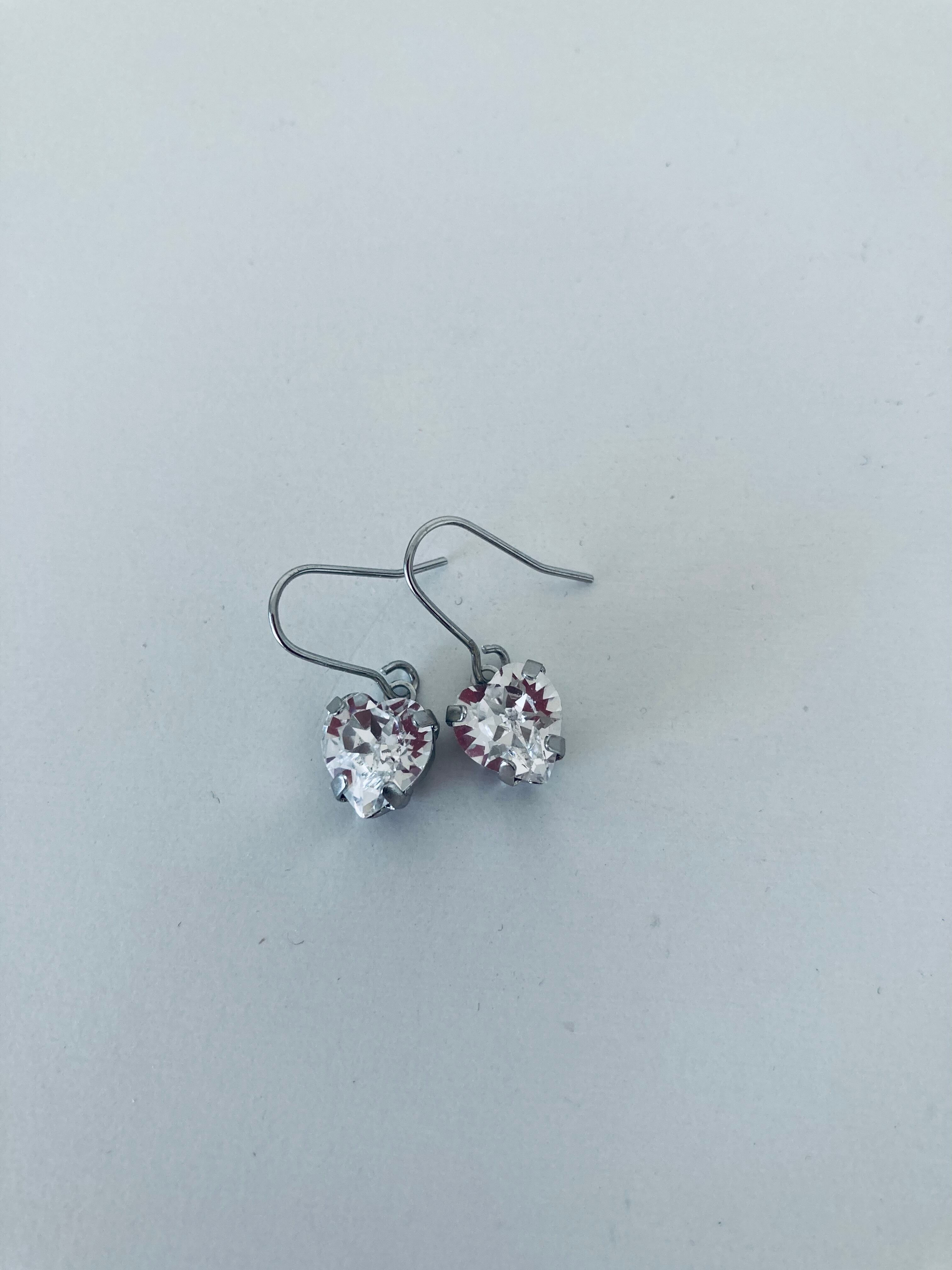 シンプルなクリスタルハートピアスです。
