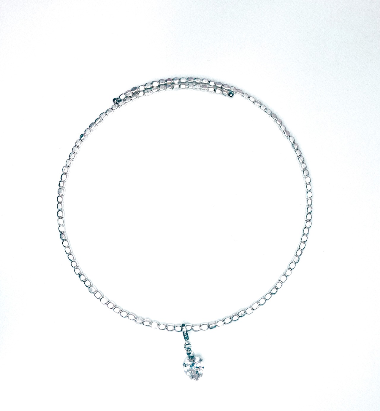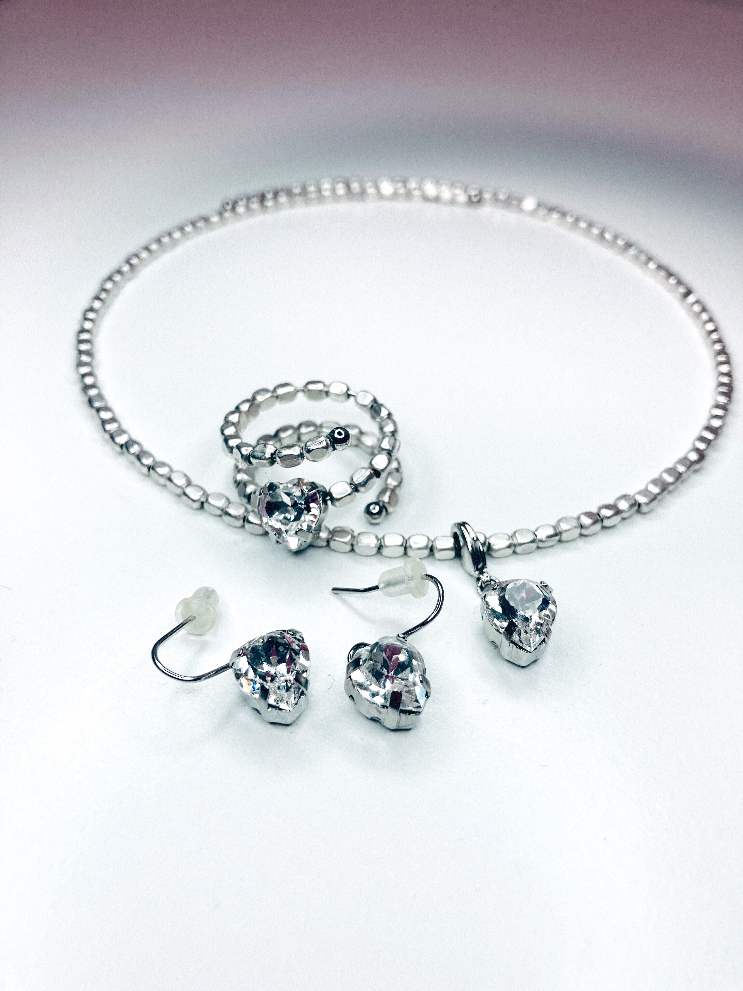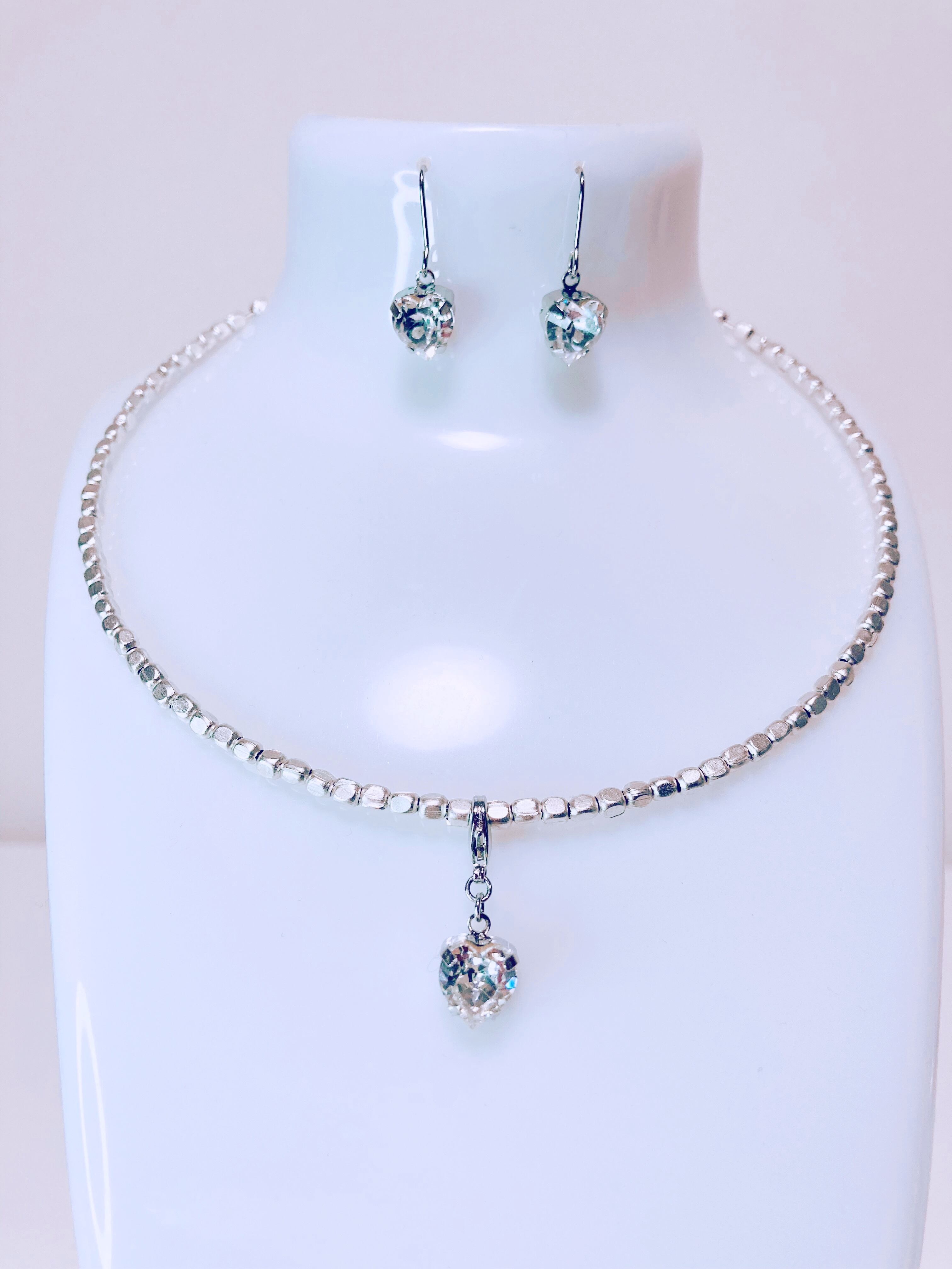 メタルビーズのネックレスに、取り外し可能なクリスタルハートチャーム付