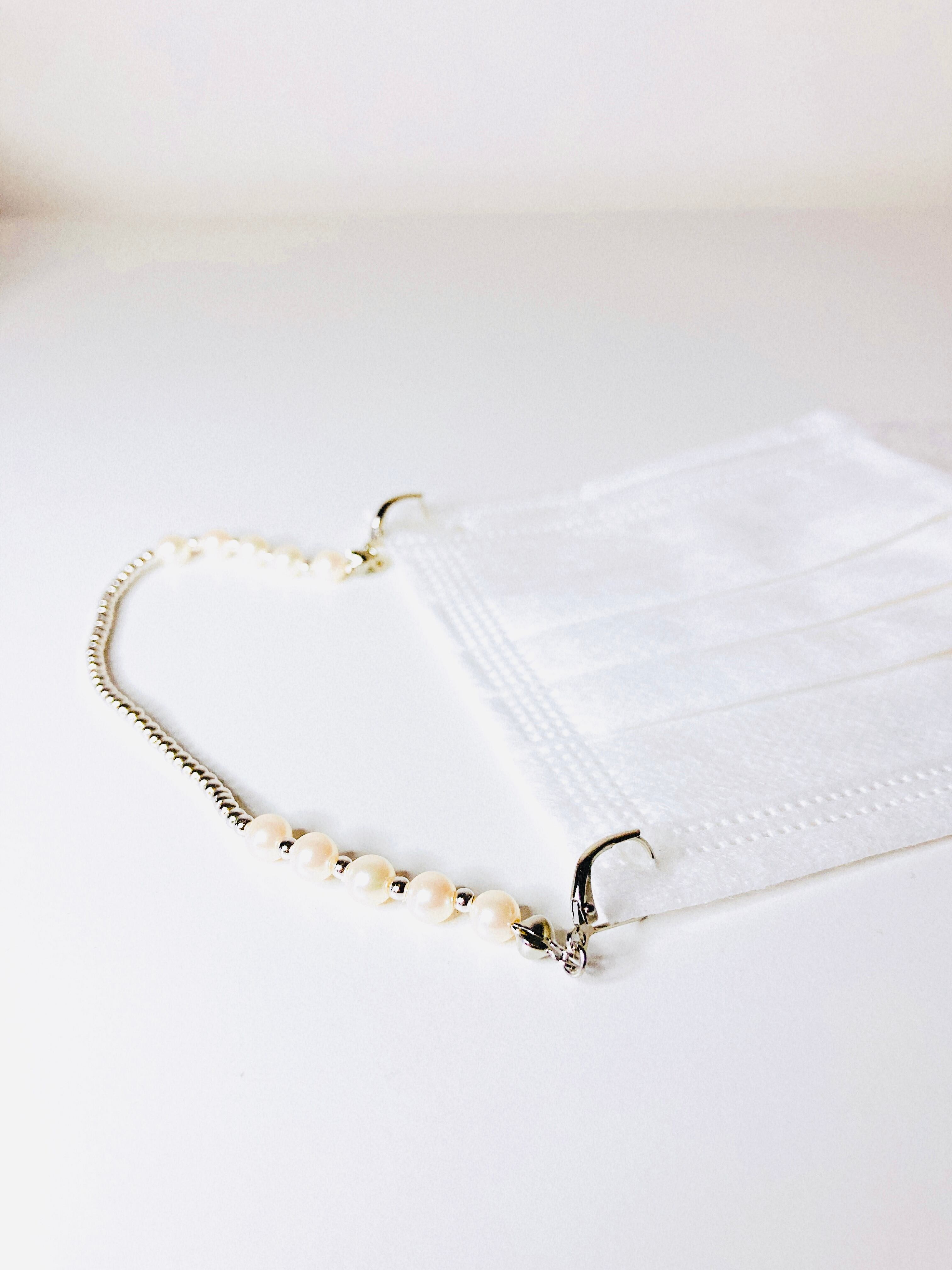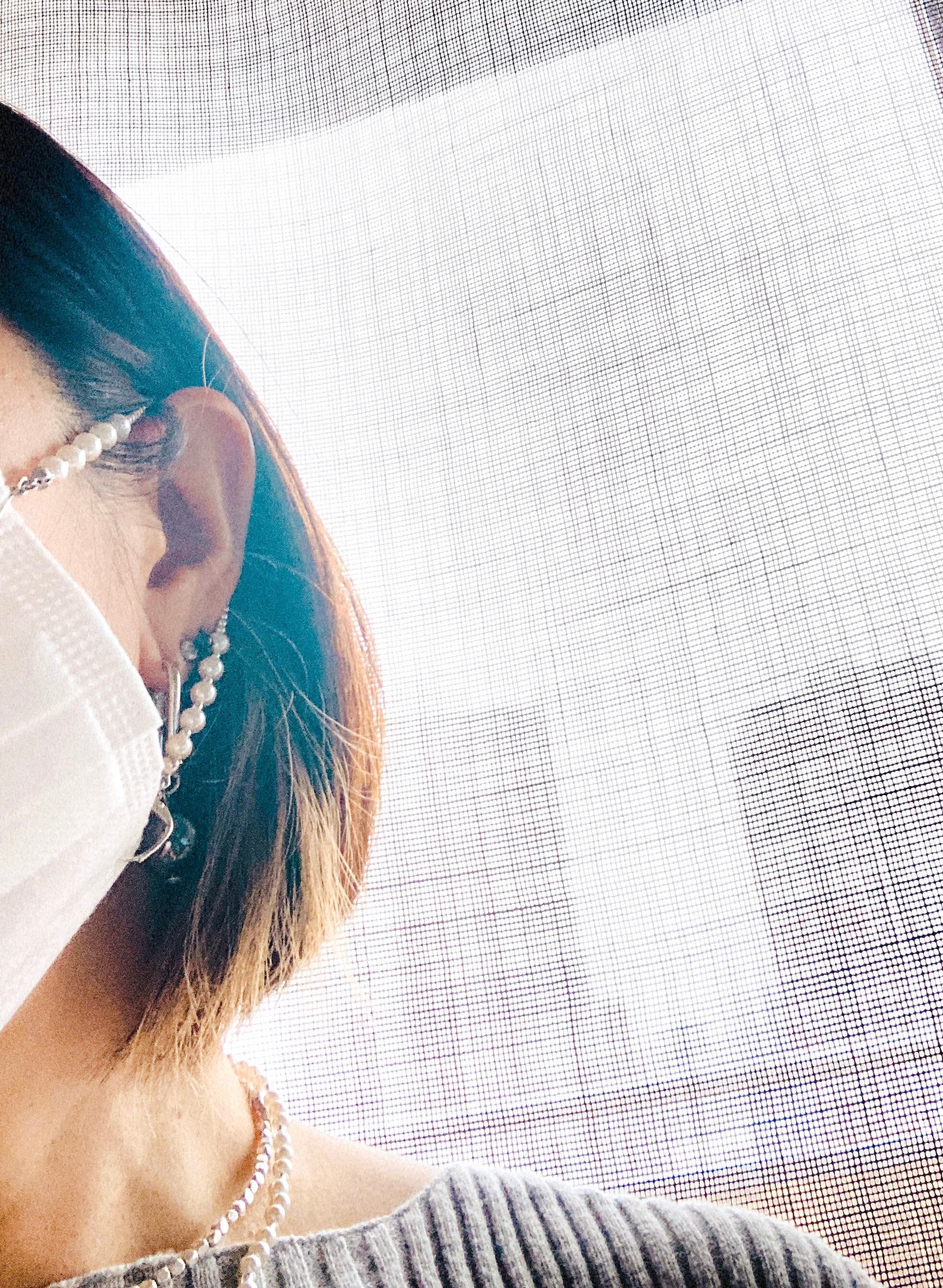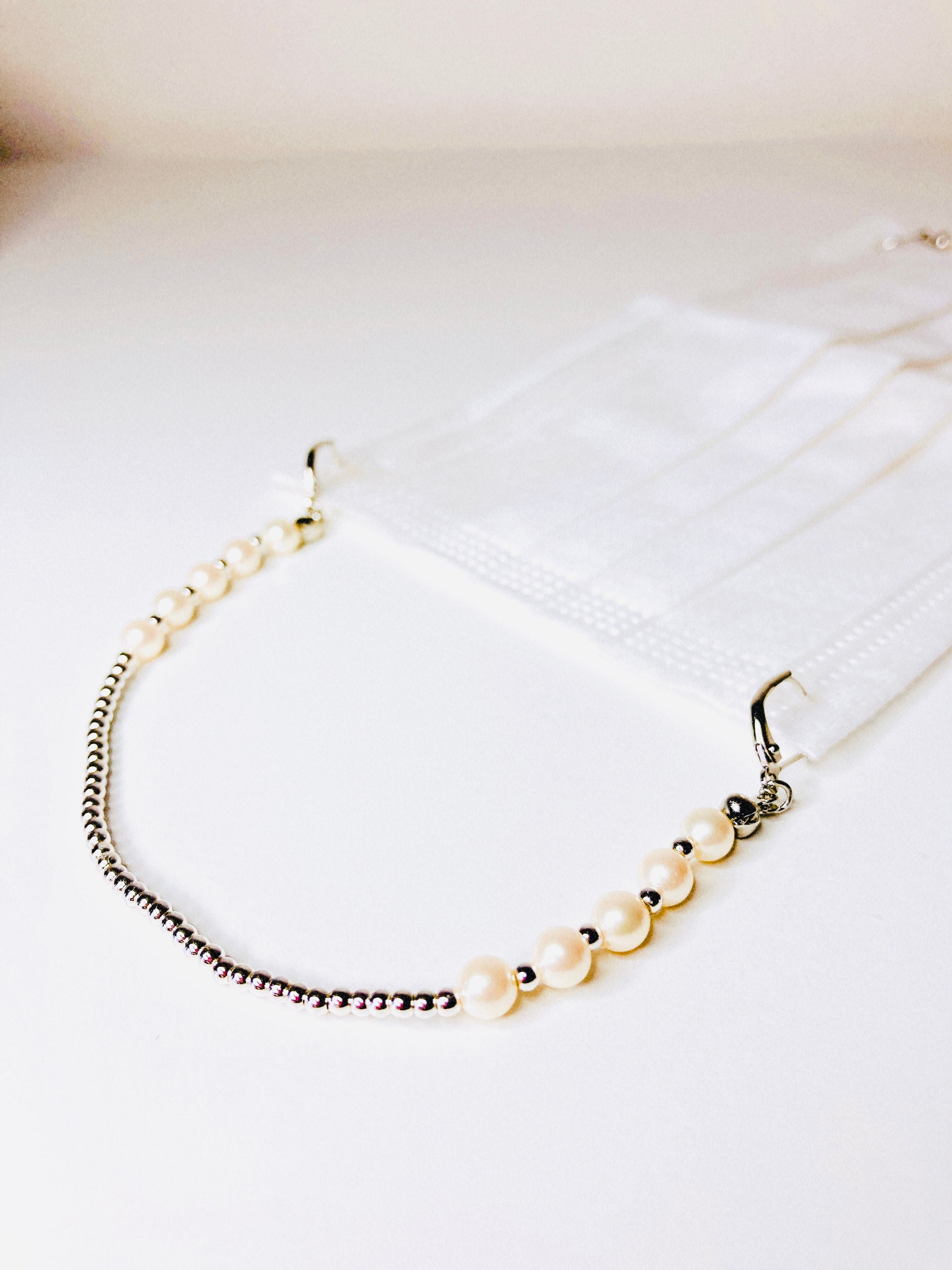 コットンパールとメタルビーズのチェーンはとっても軽量なのでお耳にもとても優しいです。