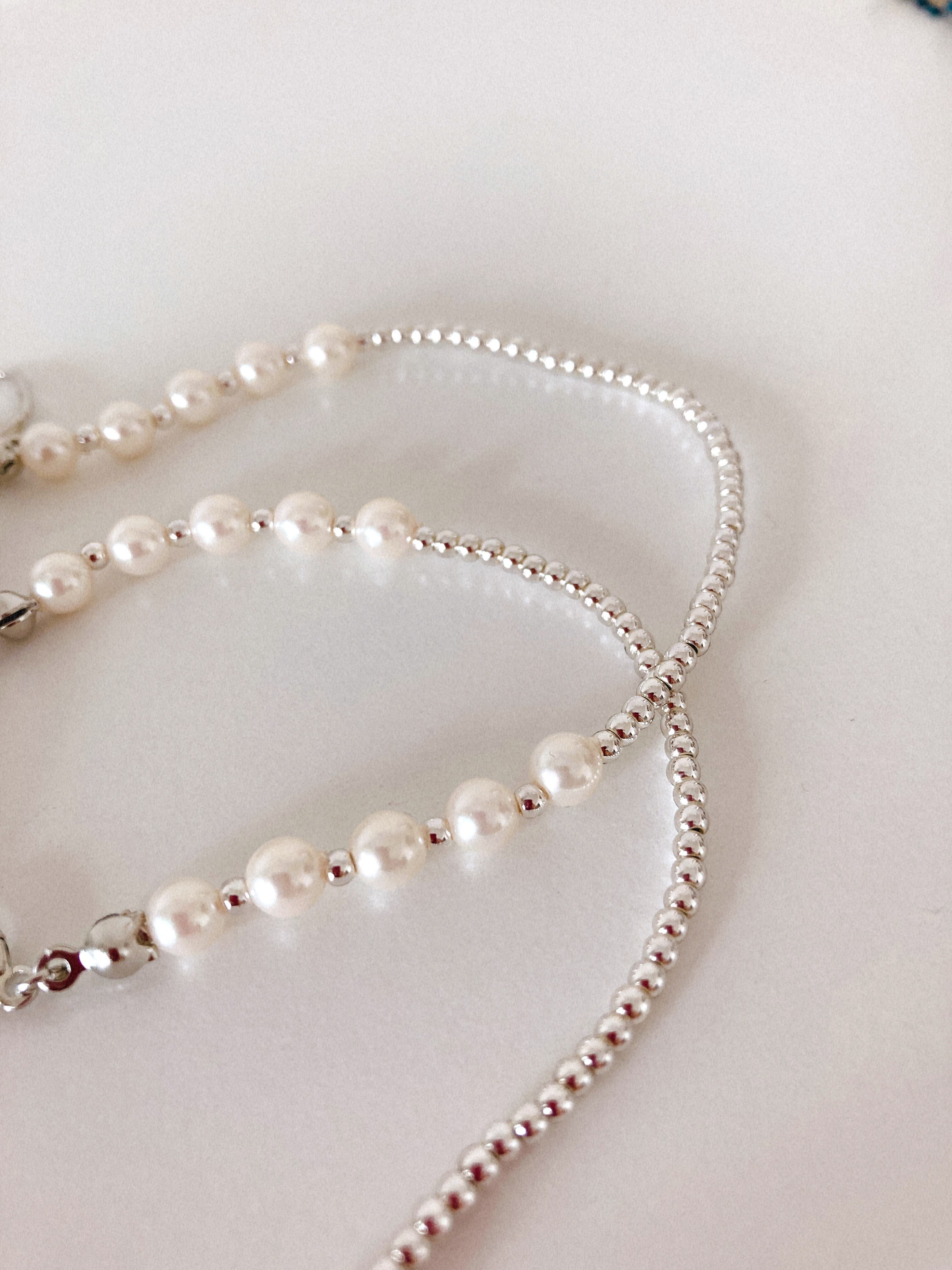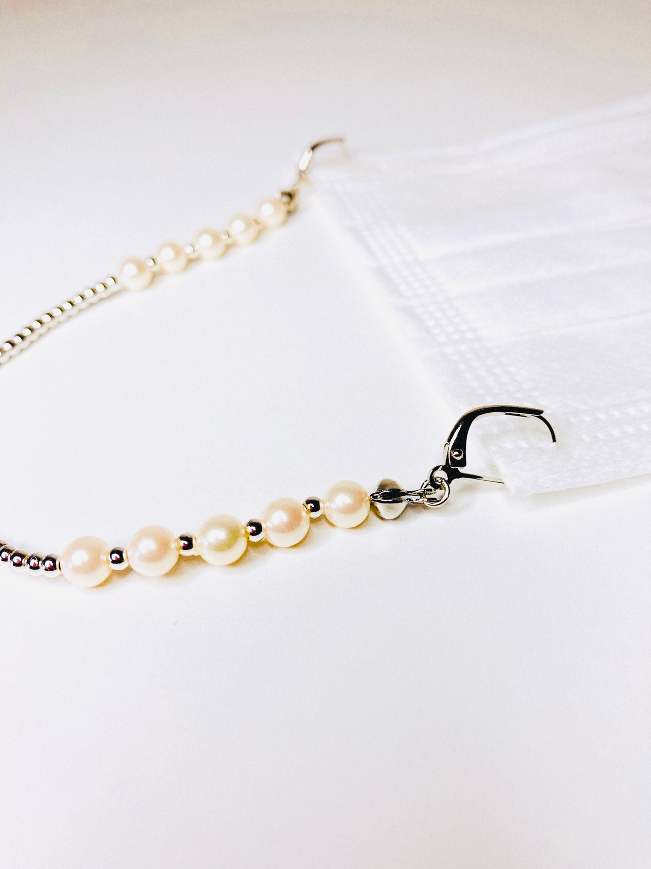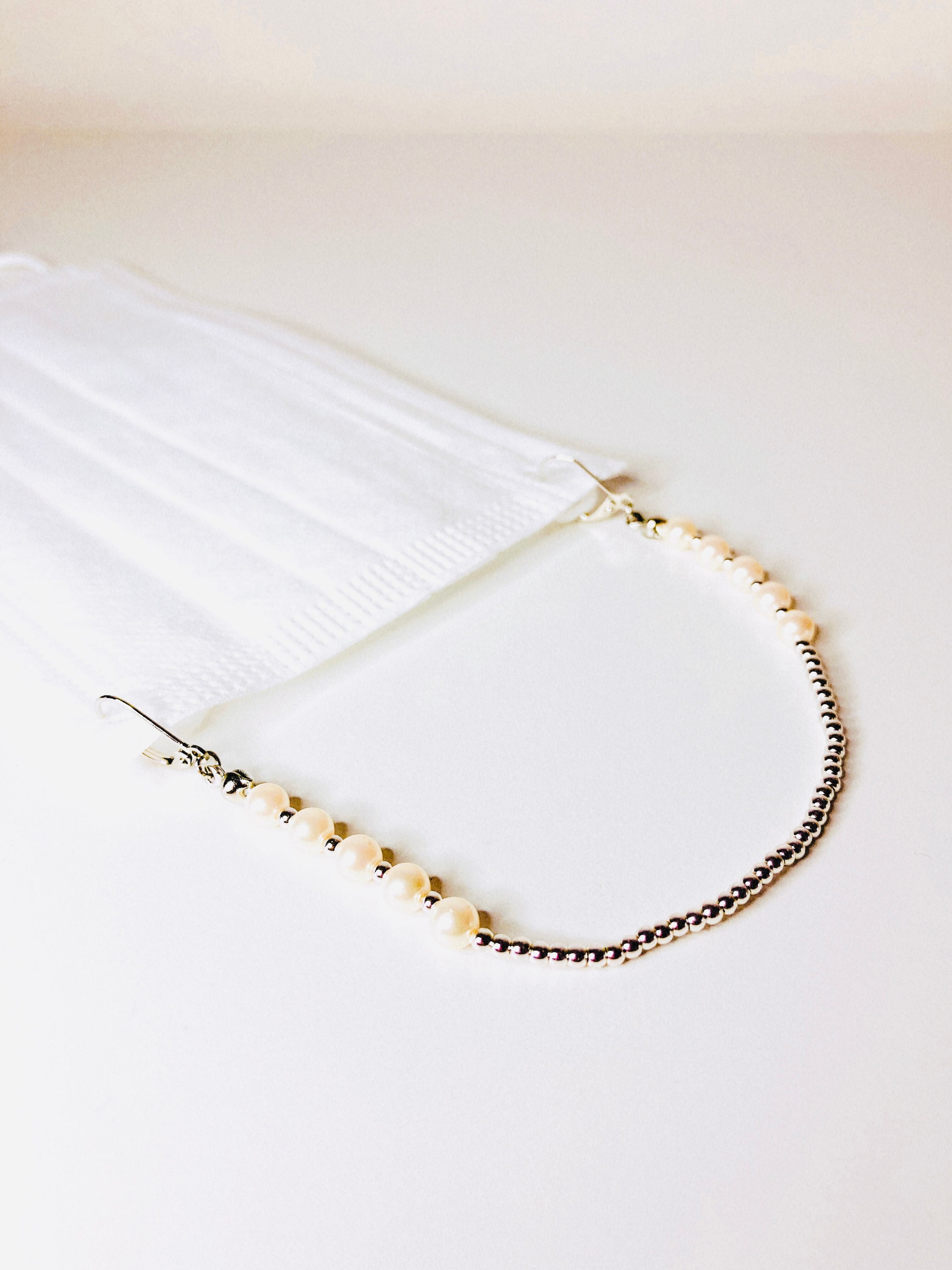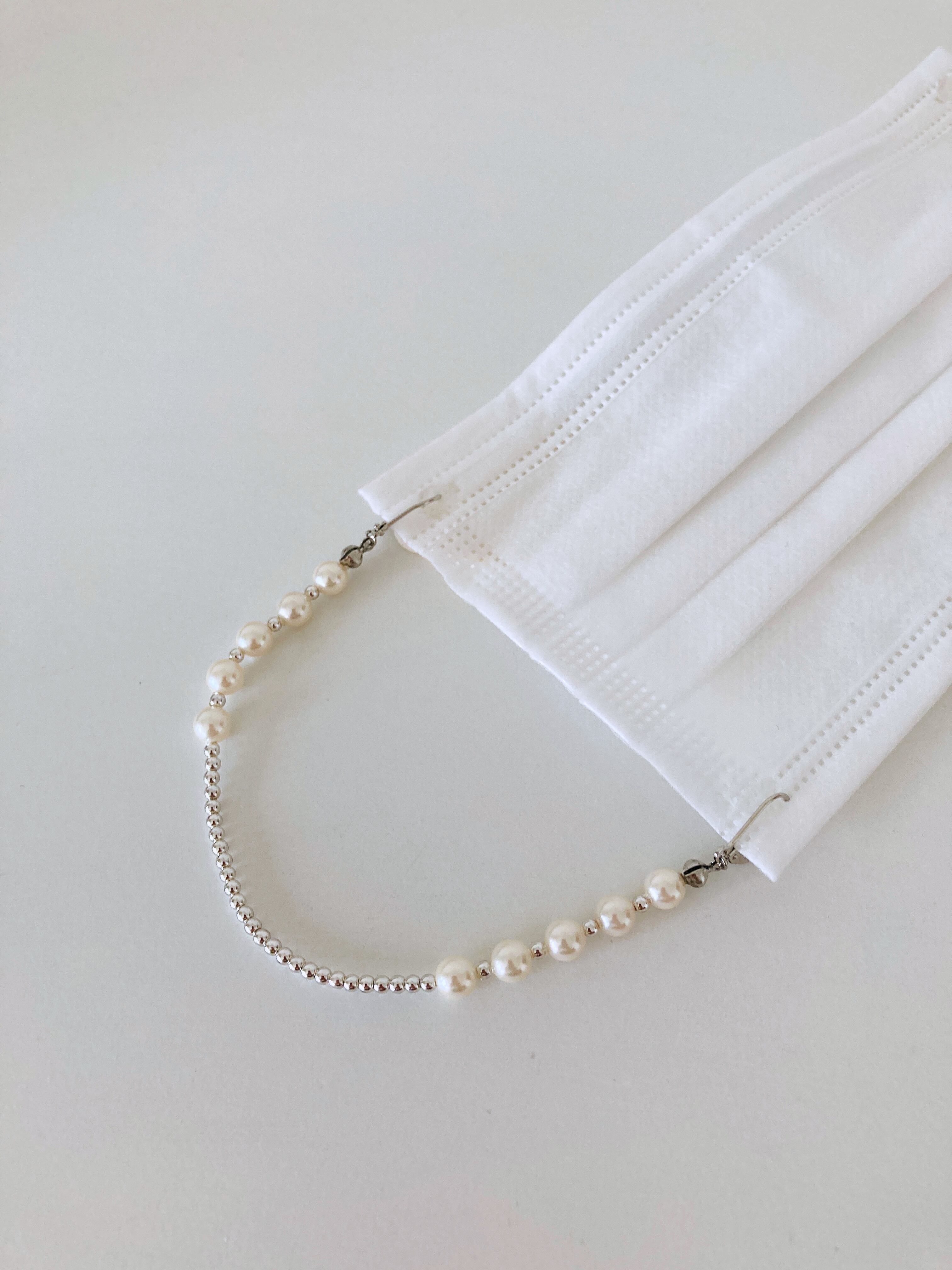 コットンパールとメタルビーズのチェーンはとっても軽量なのでお耳にもとても優しいです。