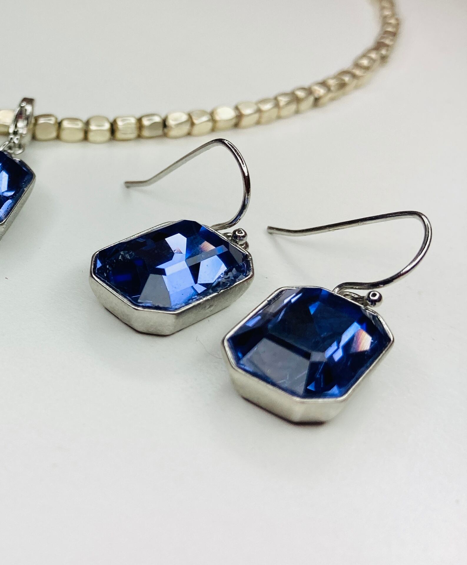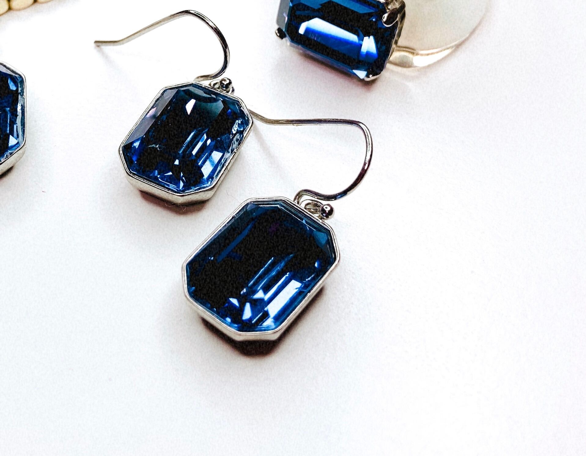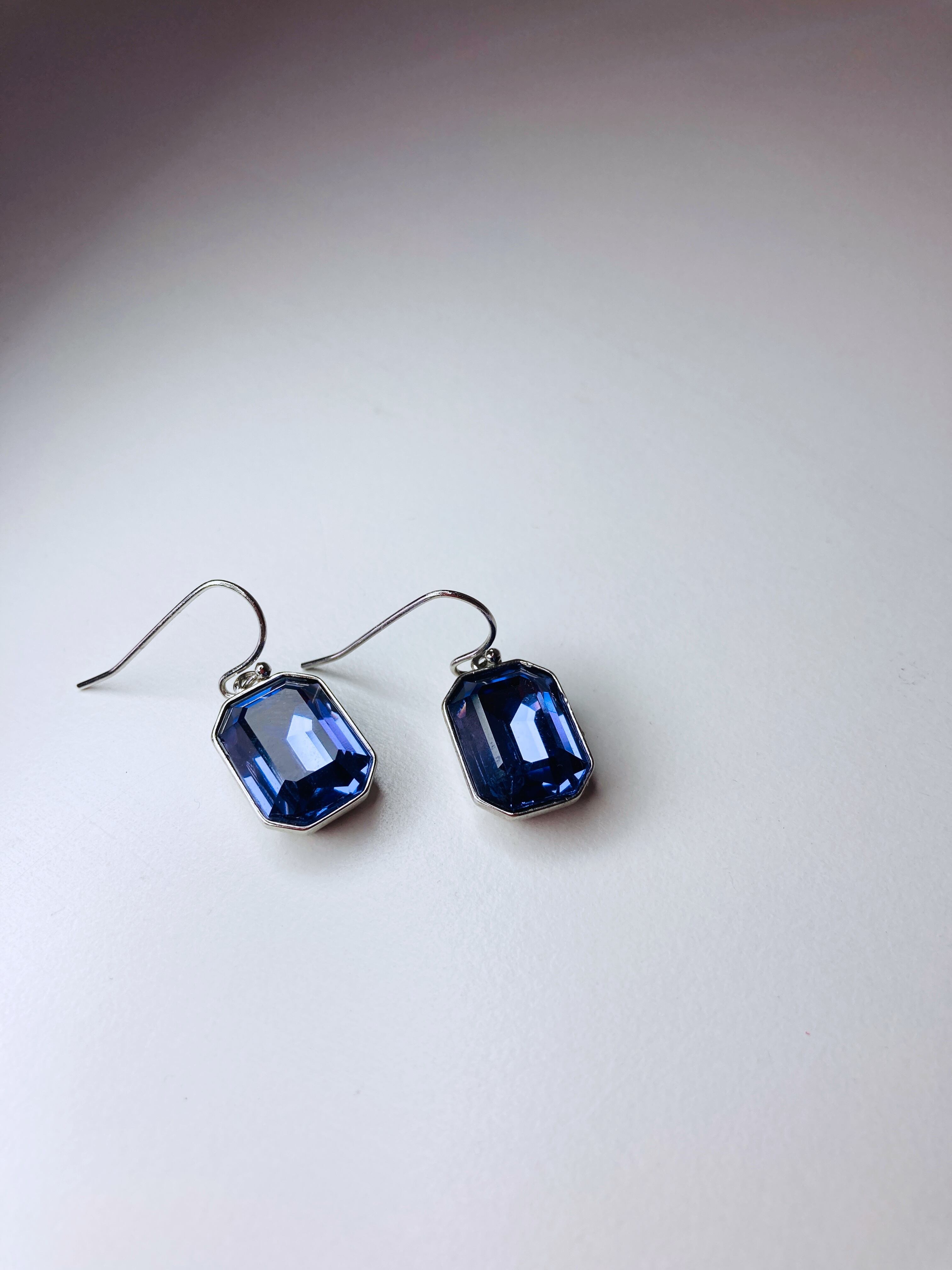 タンザナイトカラーのクリスタルを使用したシンプルなピアスです。
