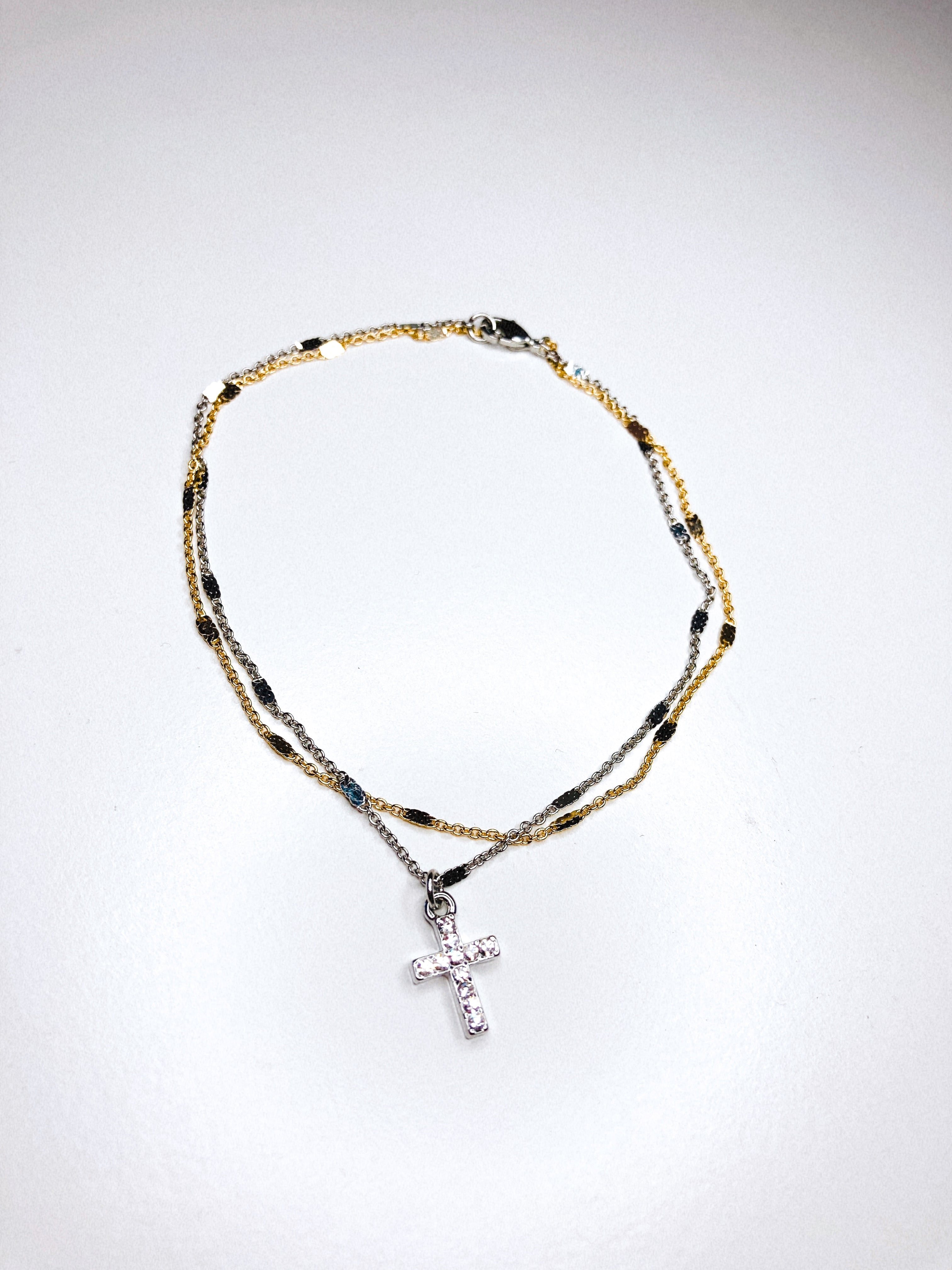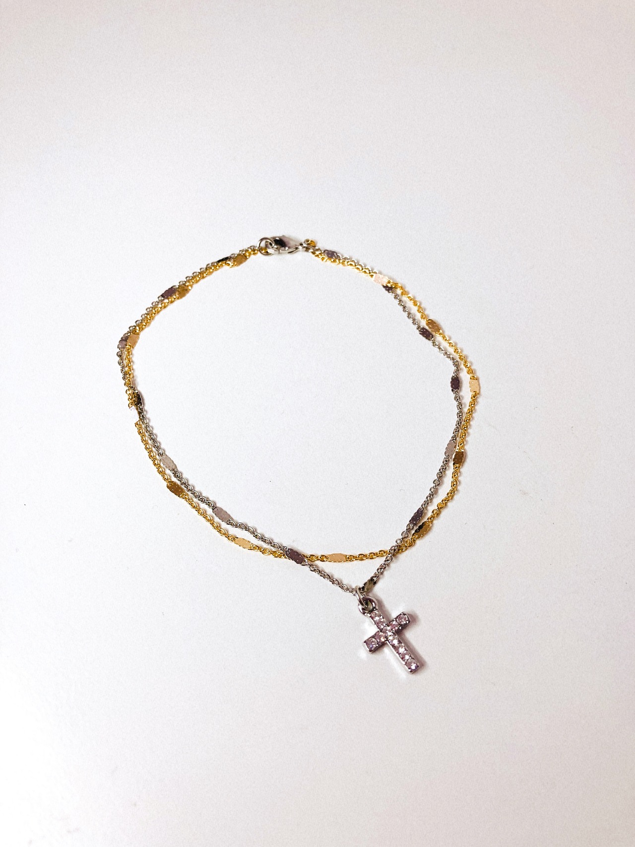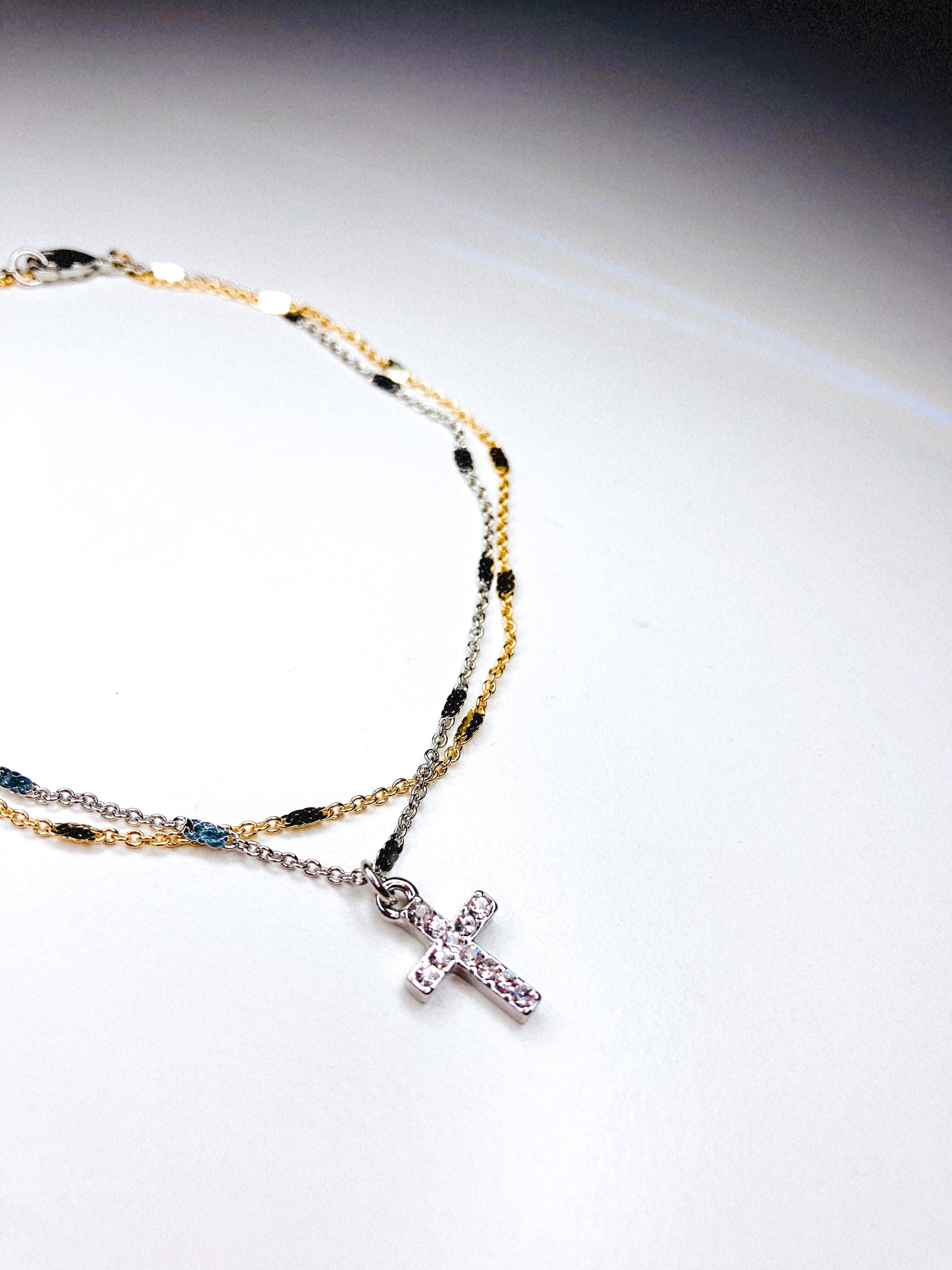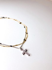 シルバーチェーンにクリスタルのクロスチャームをつけました。