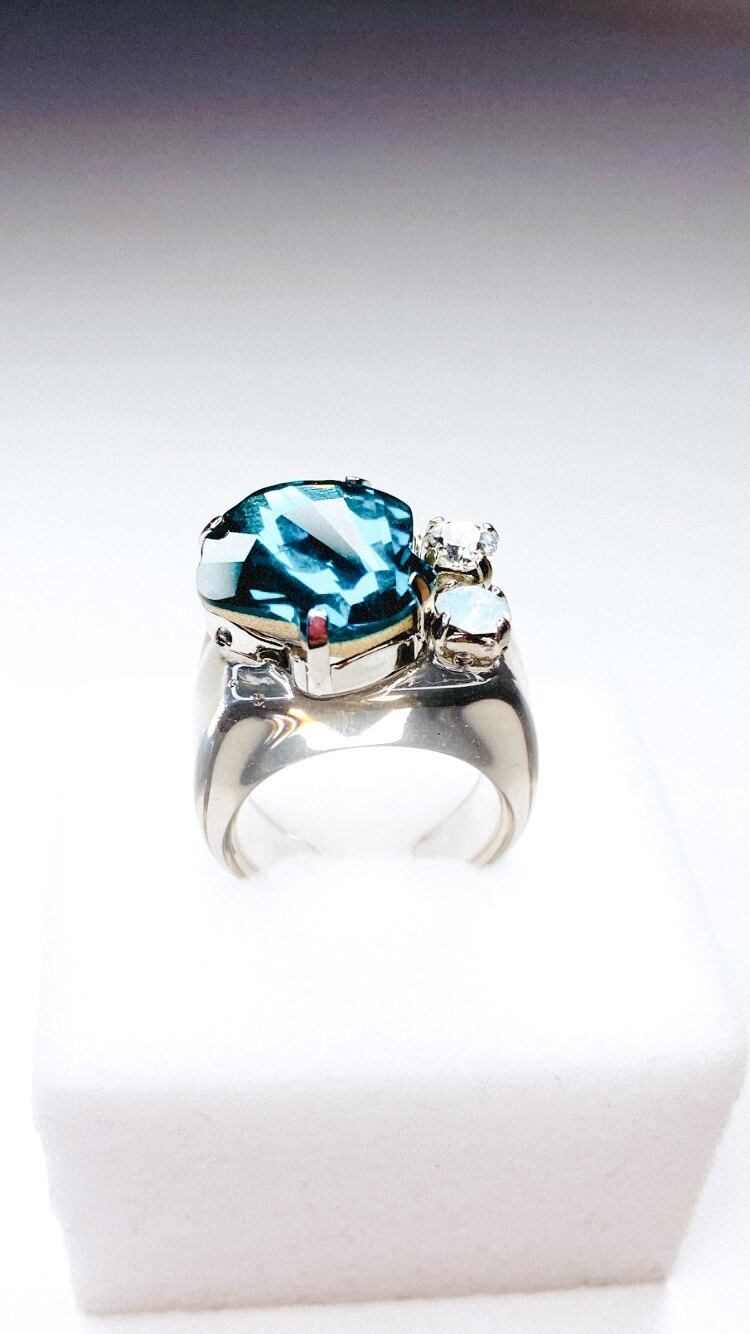 大ぶり クリスタル ビジュー リング キュート ゴージャス ボリューム ボリューミー 大ぶり 春 夏 秋 冬 お出かけ カジュアル フォーマル パーティー バースデープレゼント プチギフト バースデー クリスマス クリスマスプレゼント クリスマスギフト Xmas ホリデーシーズン ブルーシェル