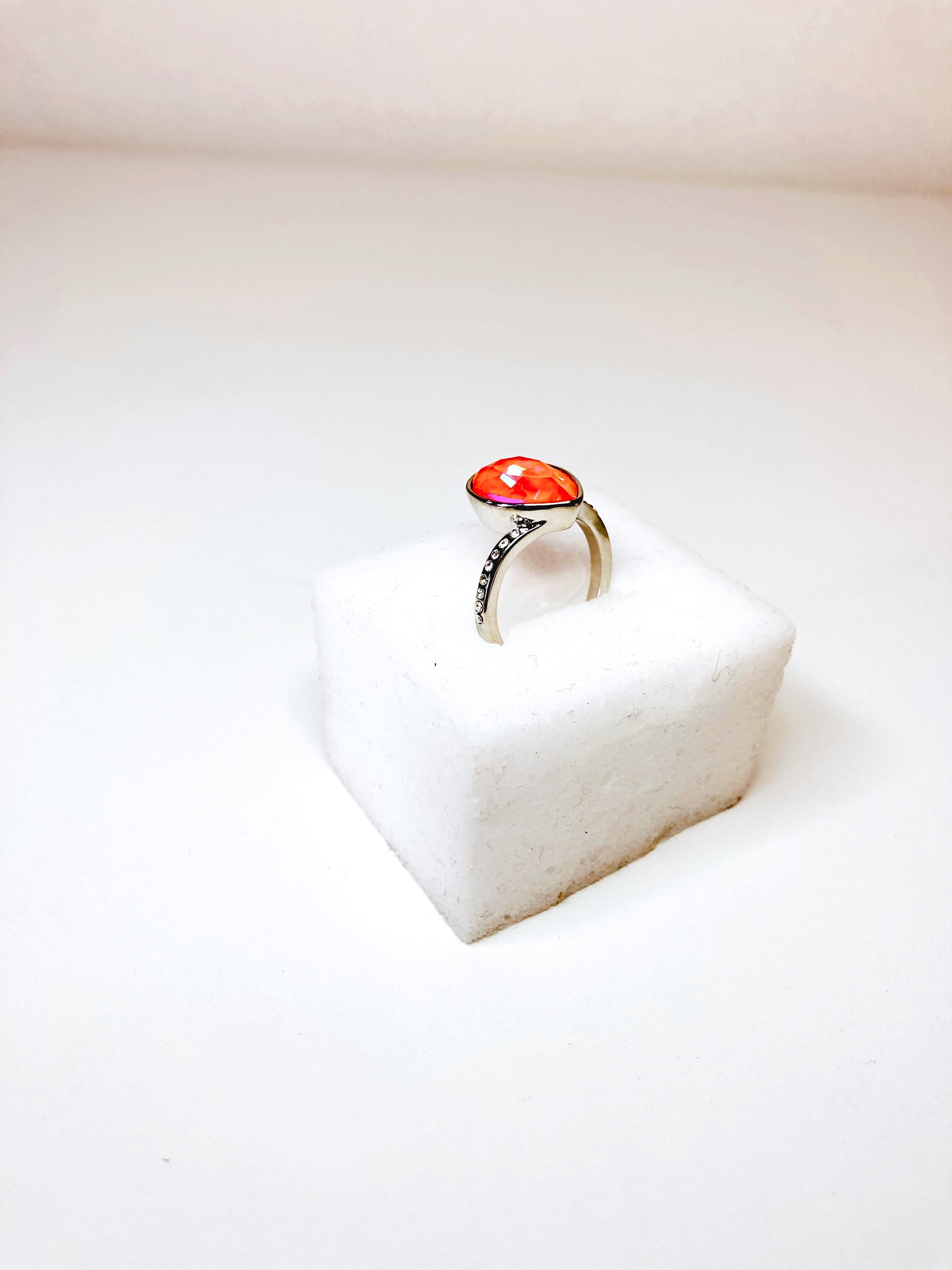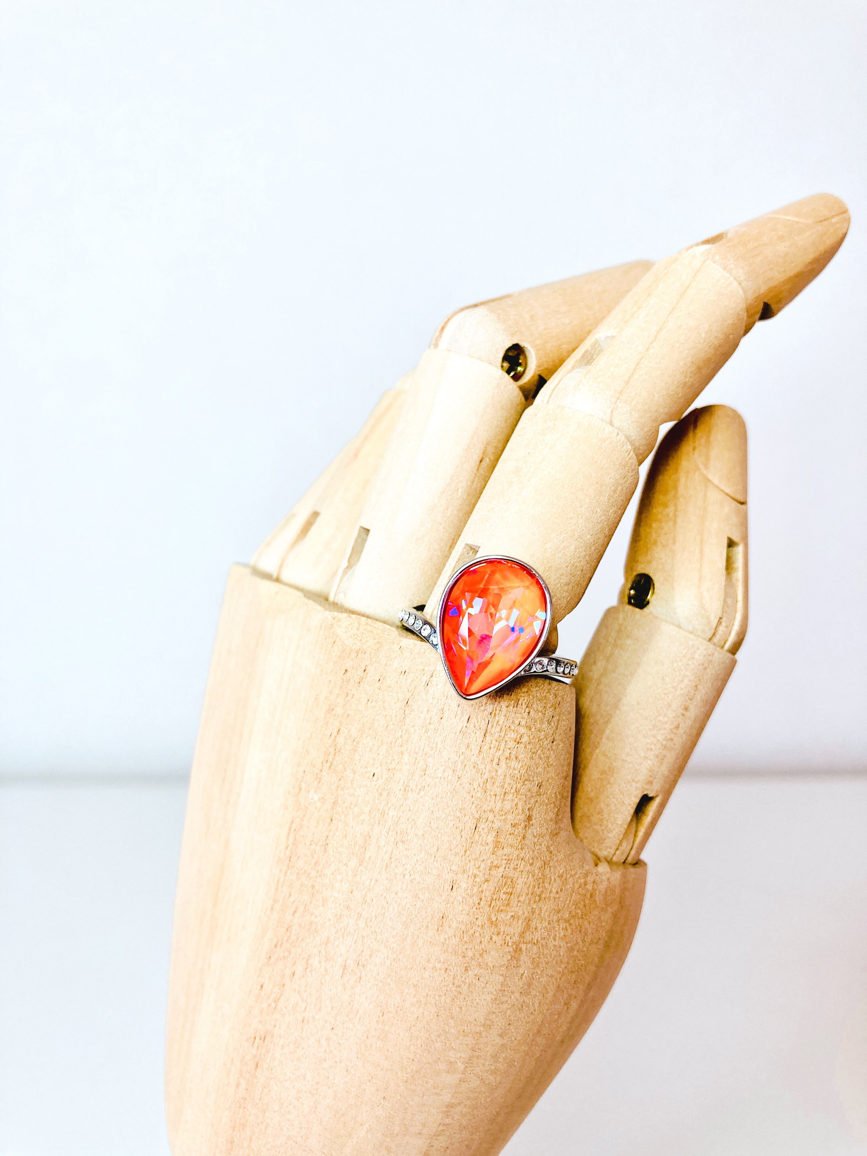 大ぶり クリスタル ビジュー リング キュート ゴージャス ボリューム ボリューミー 春 夏 秋 冬 お出かけ カジュアル フォーマル パーティー ホリデーシーズン バースデープレゼント プチギフト バースデー オレンジ オレンジグローディライト