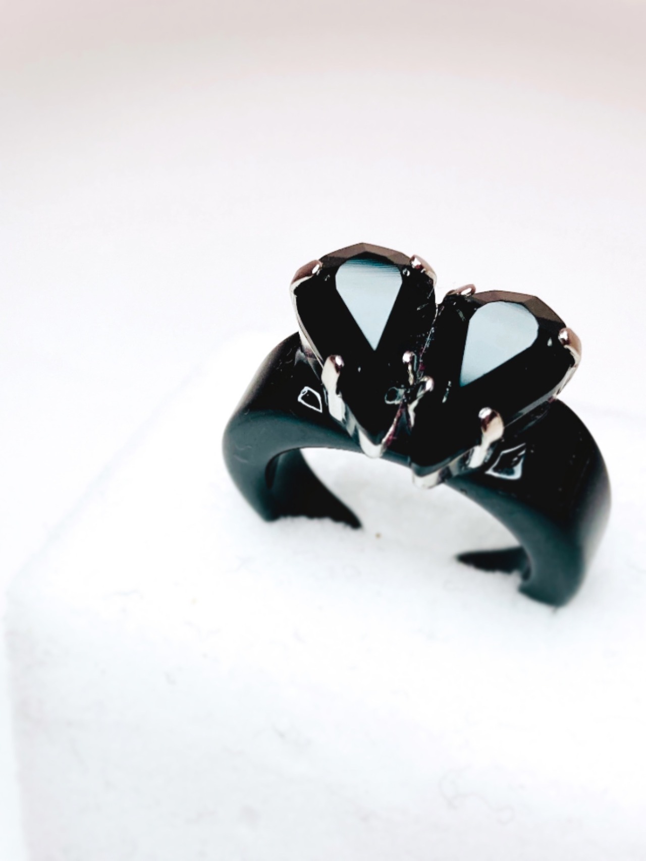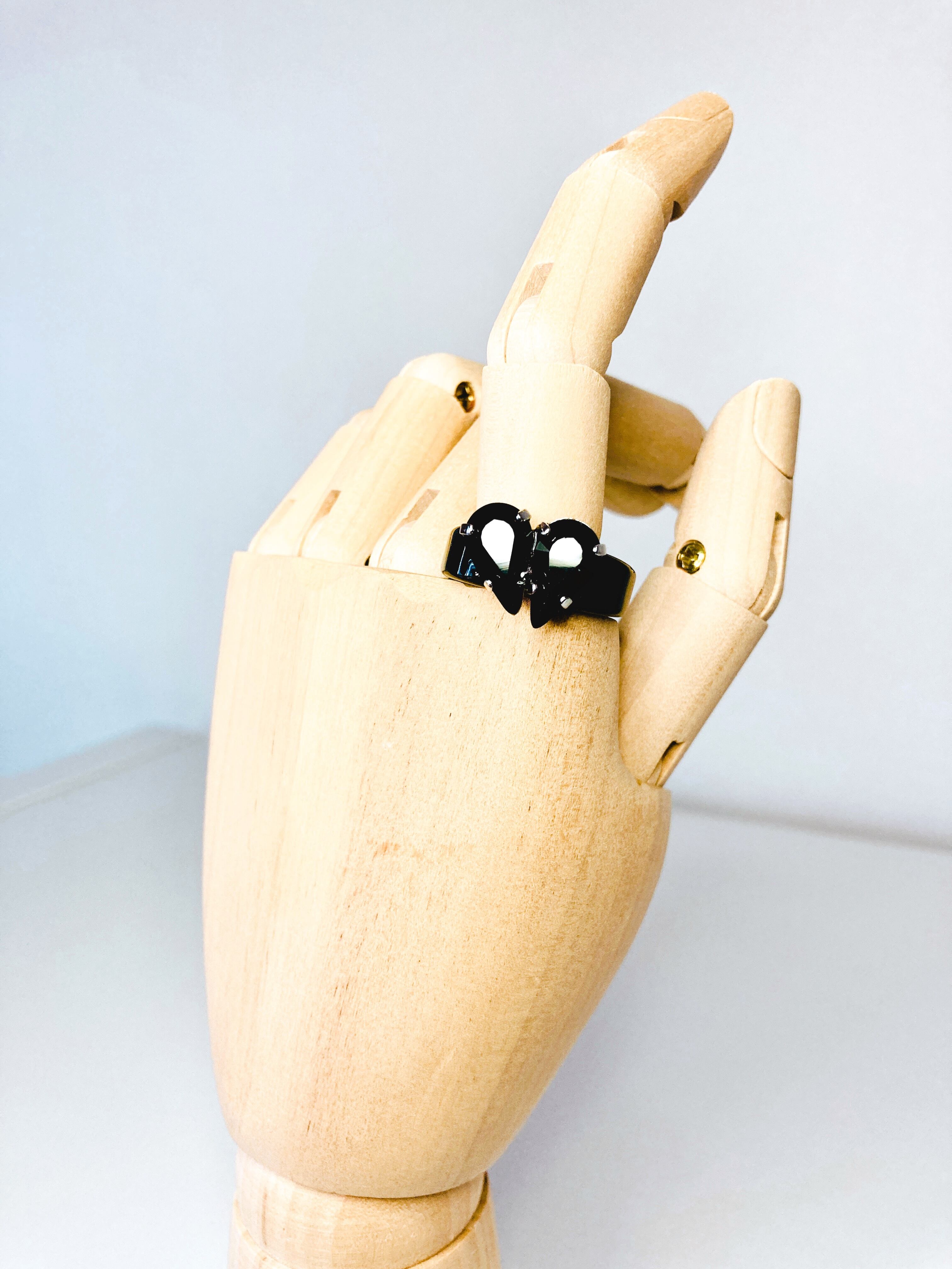 大ぶり ハート 大人可愛い ブラック クリスタル ビジュー リング ゴージャス ボリューム ボリューミー 春 夏 秋 冬 お出かけ カジュアル フォーマル パーティー ハートリング 貴和クリスタル ハートアクセサリー クリスタルリング リーズナブル カジュアルリング バースデーギフト プチギフト ロック