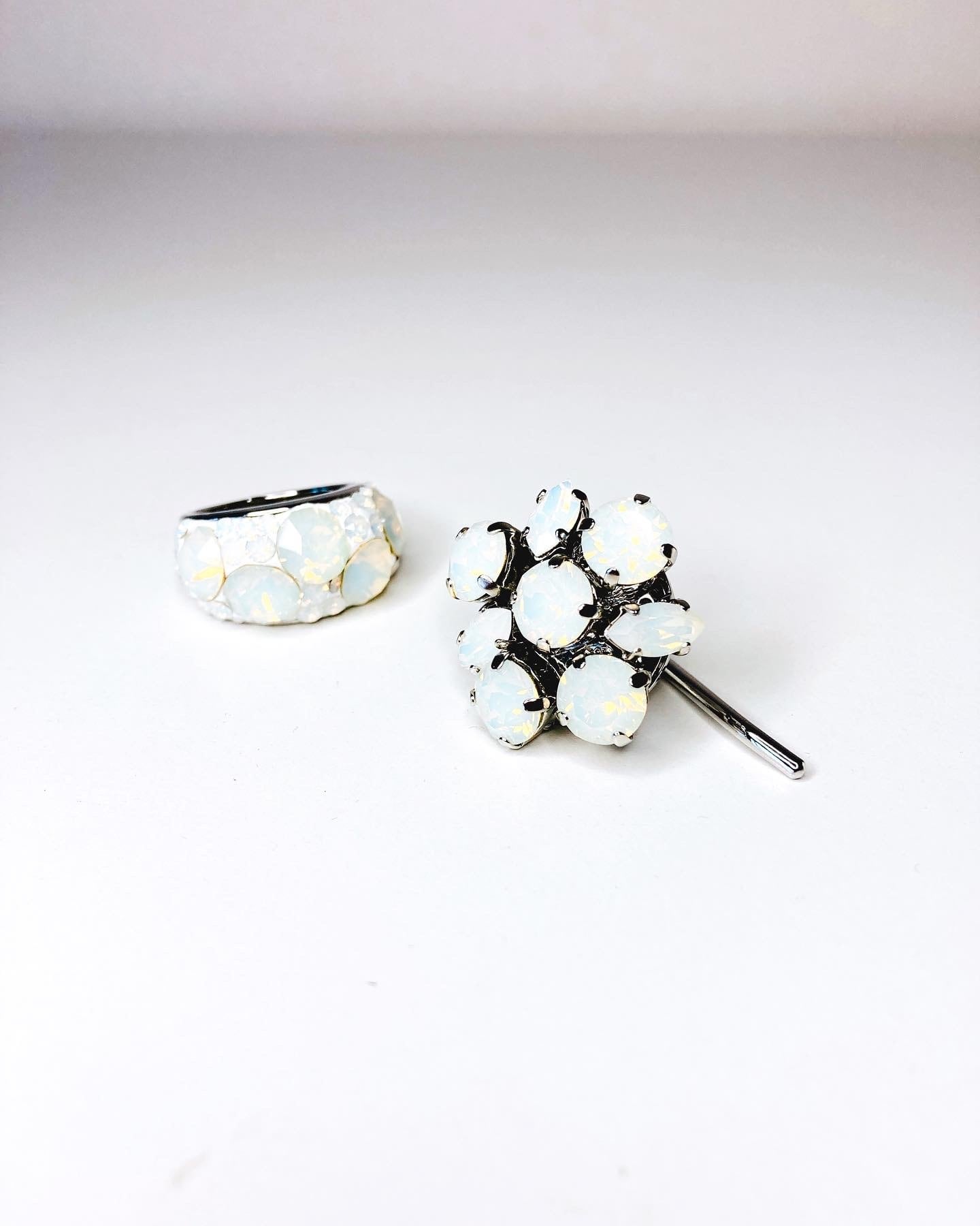 大ぶり 大人可愛い クリスタル ビジュー ゴージャス ボリューム ボリューミー 春 夏 秋 冬 お出かけ カジュアル フォーマル オケージョン パーティー 貴和クリスタル リーズナブル カジュアル バースデー 誕生日 記念日 バースデーギフト プチギフト クリスマス クリスマスプレゼント クリスマスギフト フラワー ポニーフック ヘアーアクセサリー 白 雪 スノー