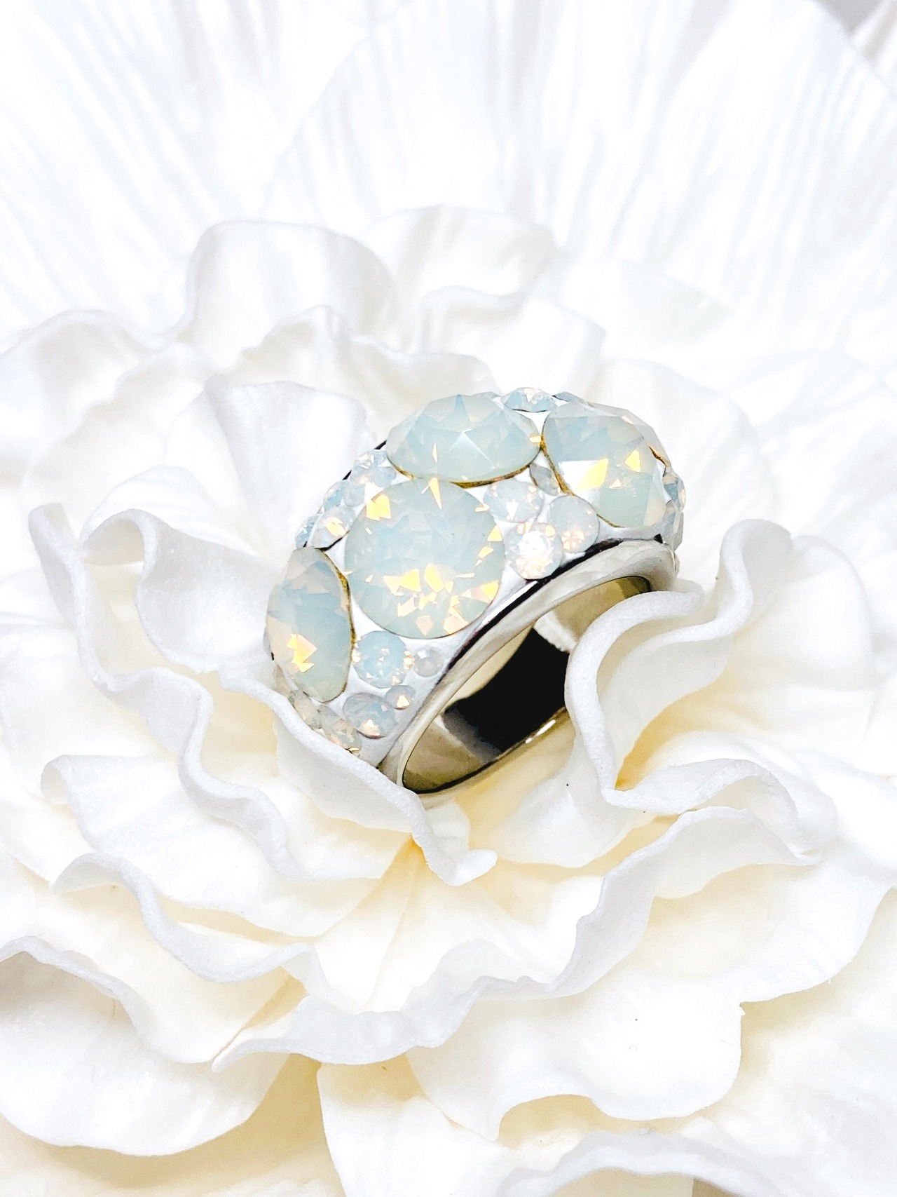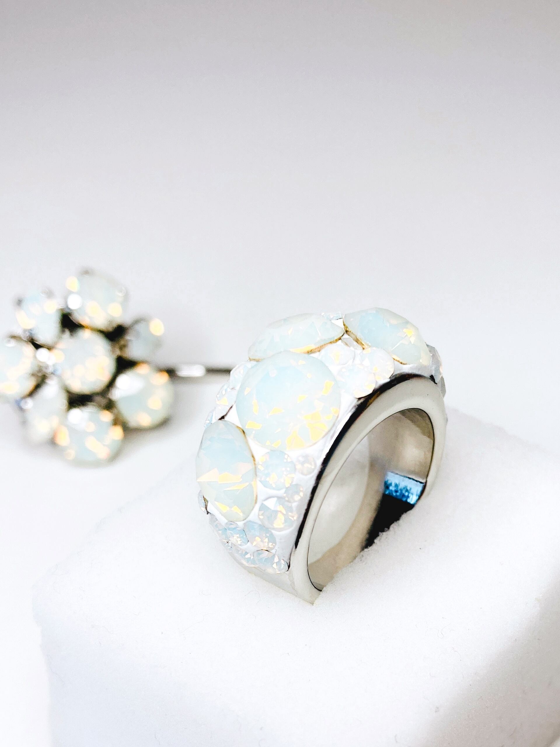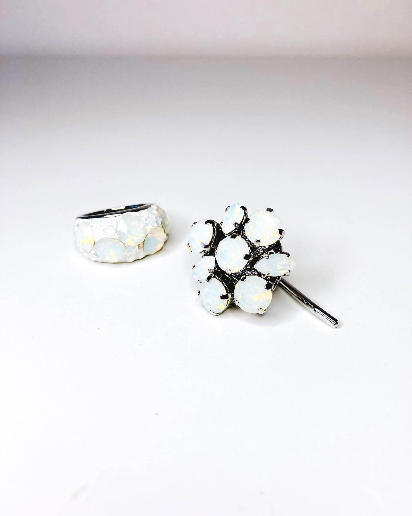 雪のような真っ白なホワイトオパールというカラーのクリスタルを使用し、華やかに彩ります♪