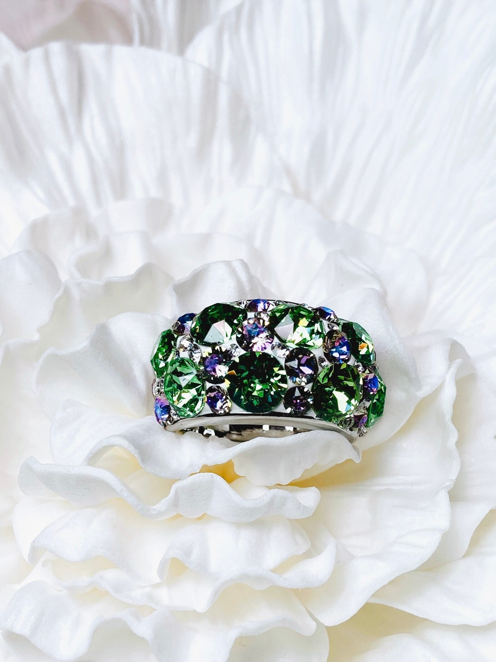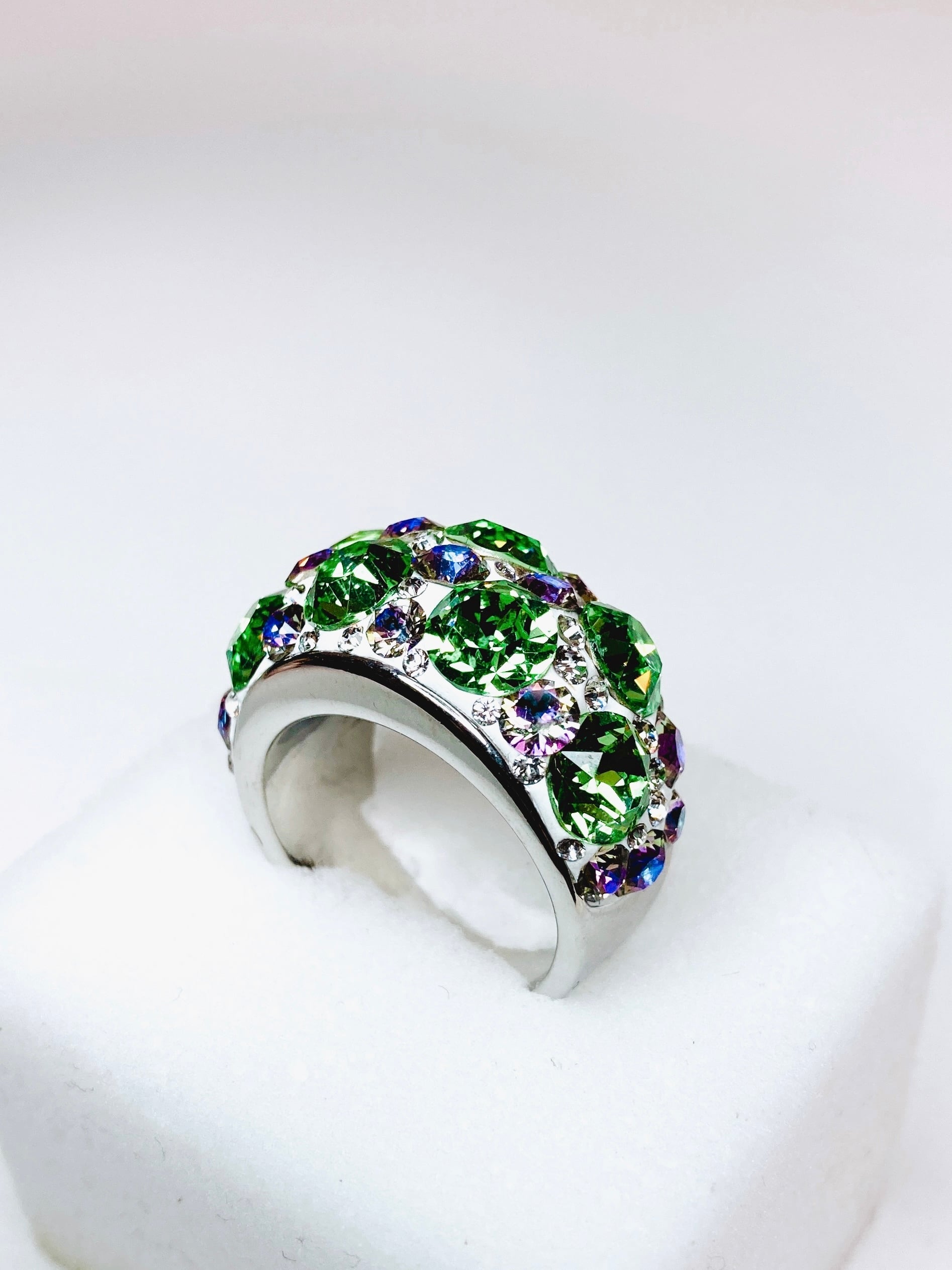 大ぶり 大人可愛い クリスタル ビジュー リング ゴージャス ボリューム ボリューミー 春 夏 秋 冬 お出かけ カジュアル フォーマル オケージョン パーティー 貴和クリスタル クリスタルリング リーズナブル カジュアルリング バースデーギフト 記念日 誕生日 プチギフト クリスマス クリスマスギフト ペリドット ヴィトラルライト パープル