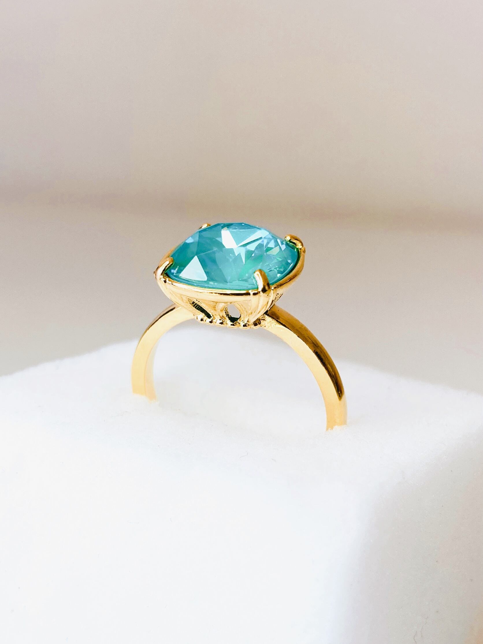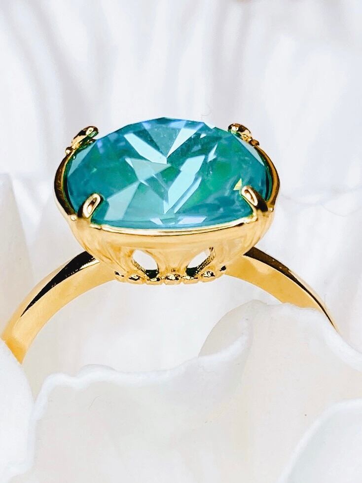 大ぶり 大人可愛い クリスタル ビジュー リング ゴージャス ボリューム ボリューミー 春 夏 秋 冬 お出かけ カジュアル フォーマル オケージョン パーティー 貴和クリスタル クリスタルリング リーズナブル カジュアルリング バースデーギフト 記念日 誕生日 プチギフト クリスマス クリスマスギフト ブルー