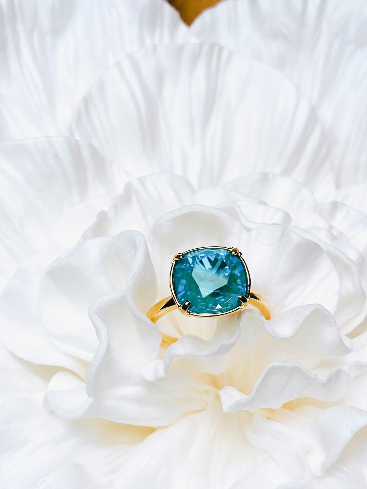 この加工は、立体的にカット面をより一層輝かせ、見る角度によって見せる様々な表情と深みのある透明感を作り出しています。