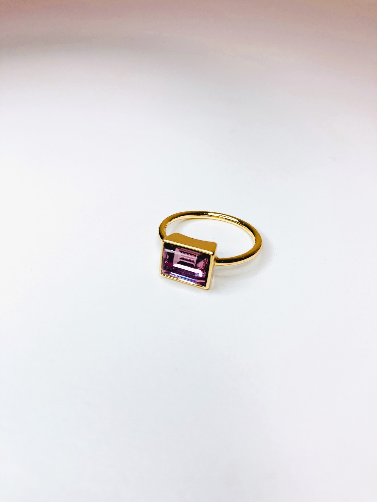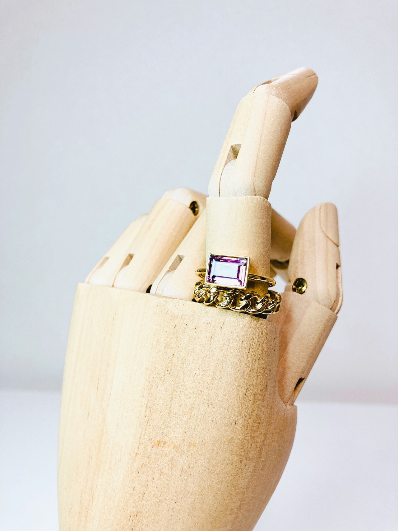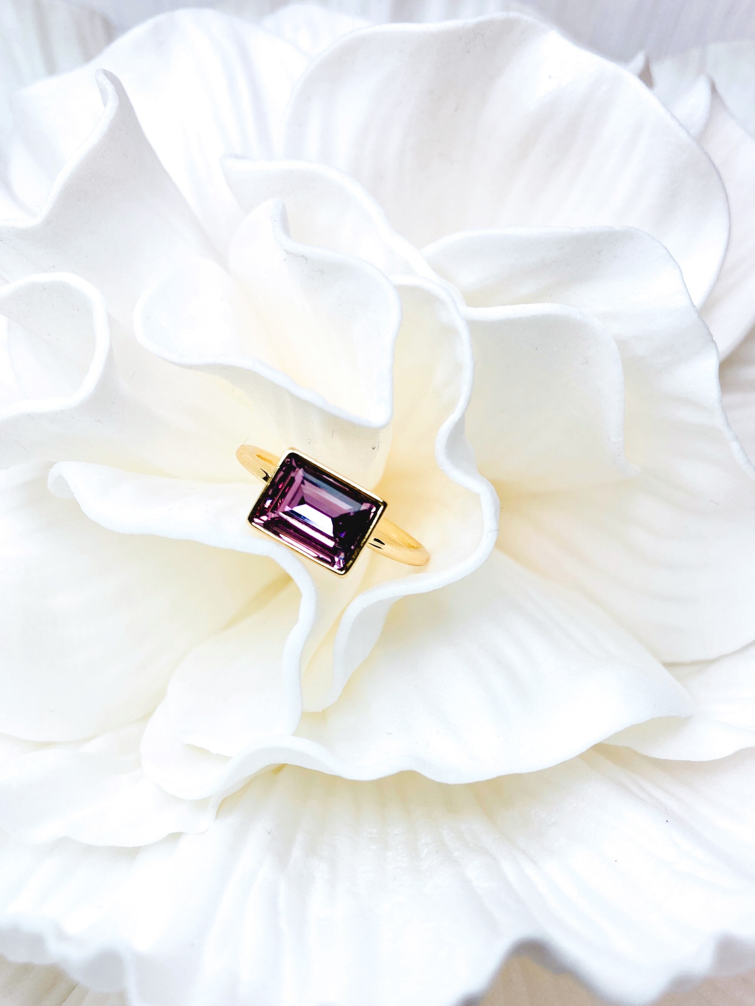スクエア型のクリスタルを使用し、シンプルなリングをつくりました。