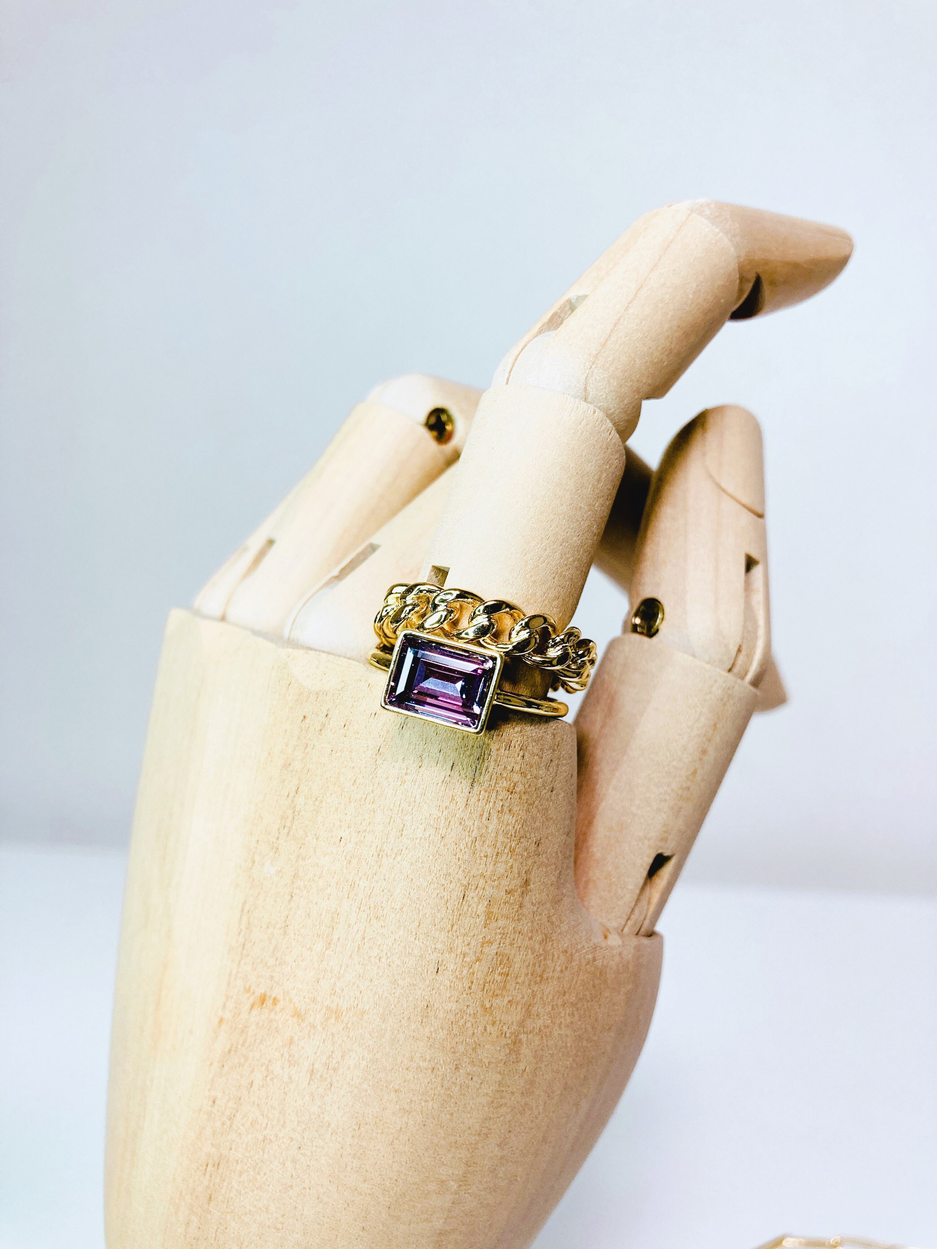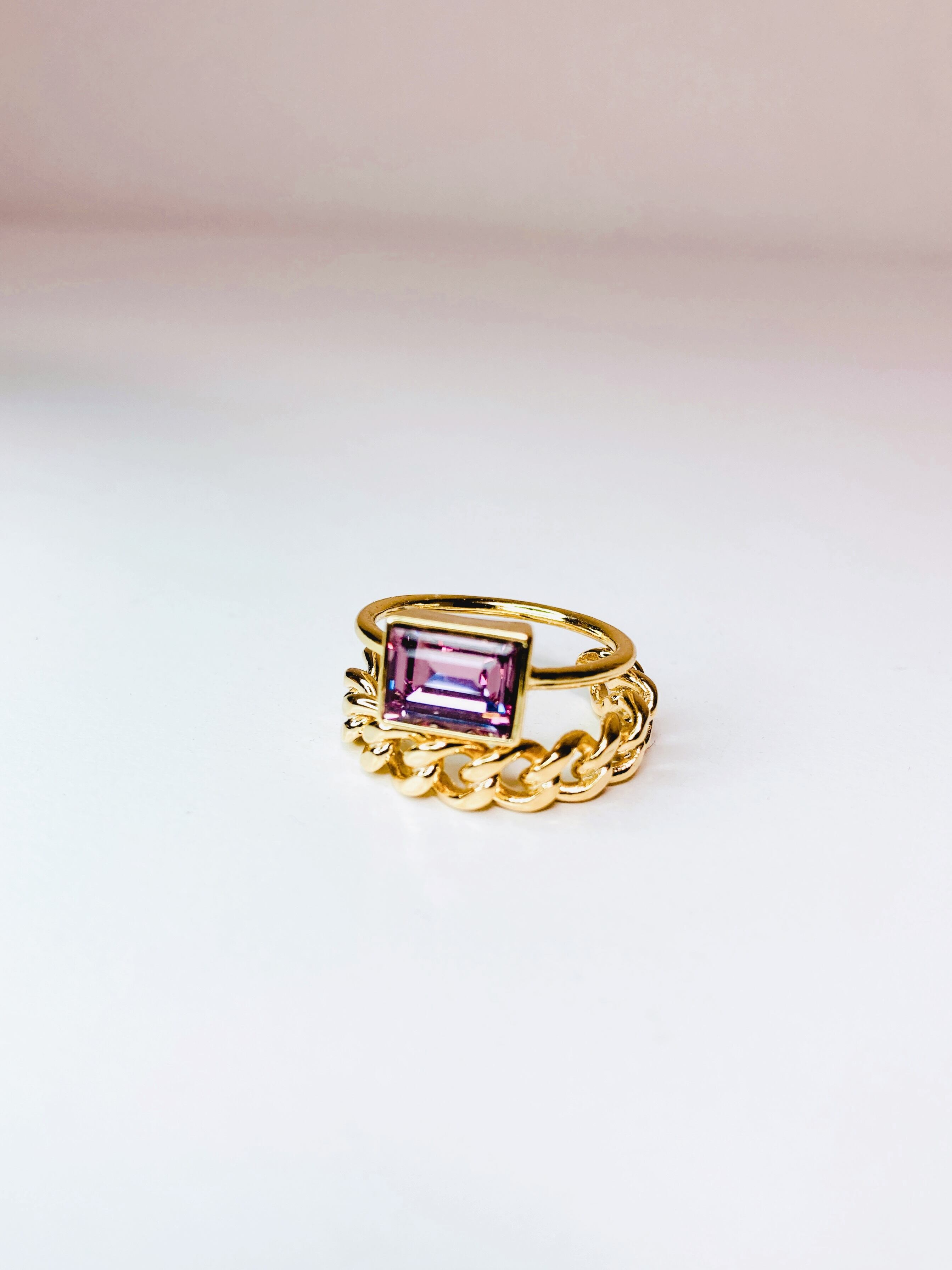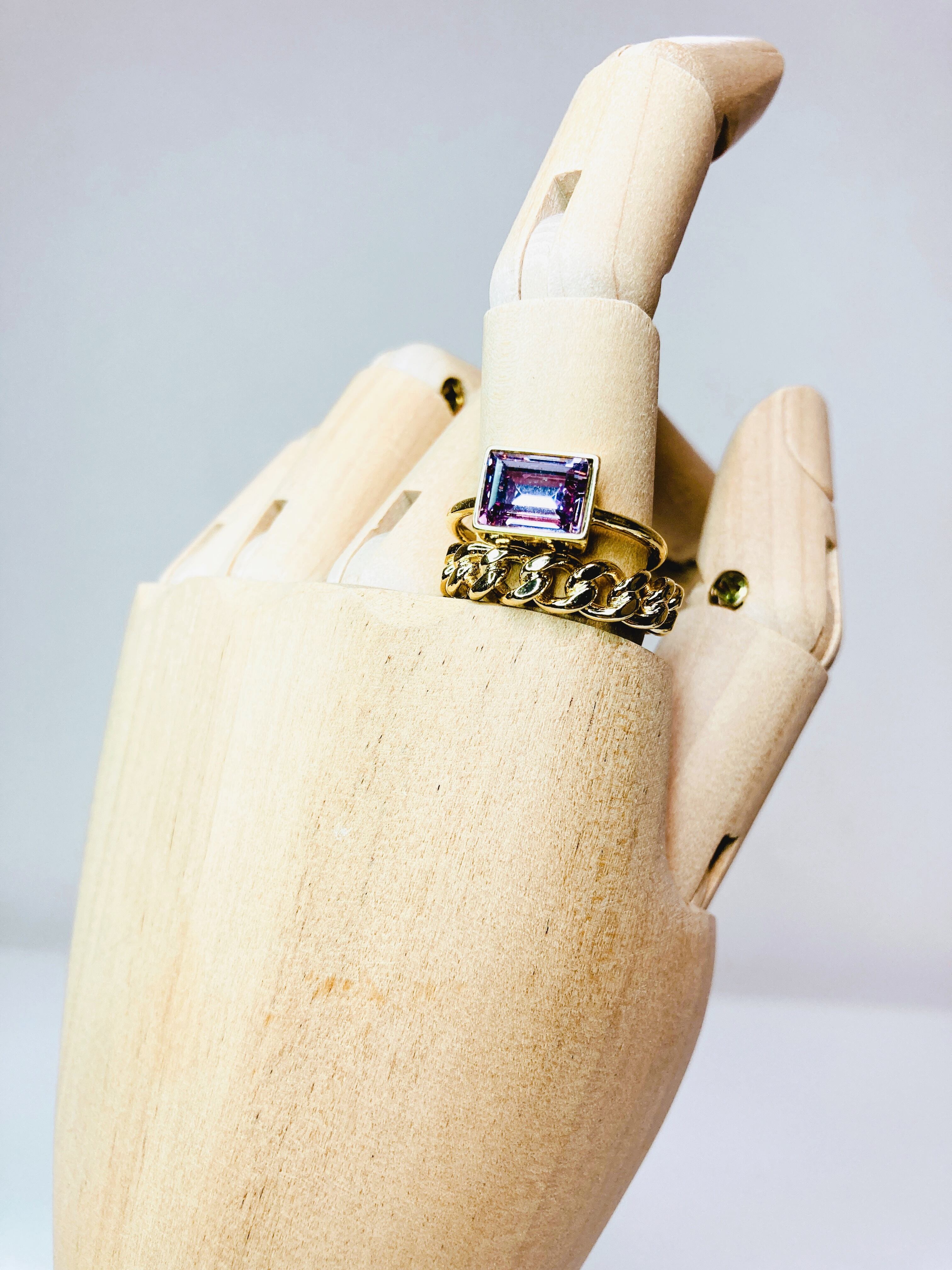スクエア型のクリスタルを使用し、シンプルなリングをつくりました。