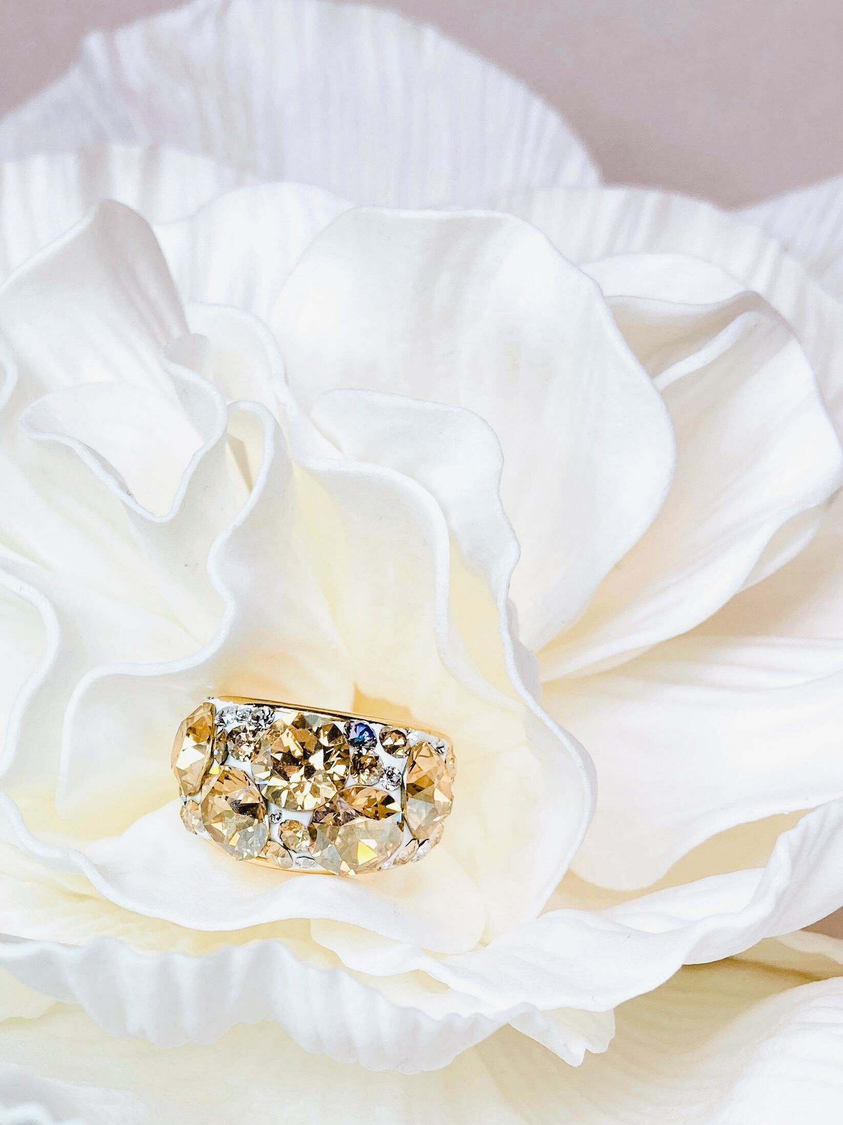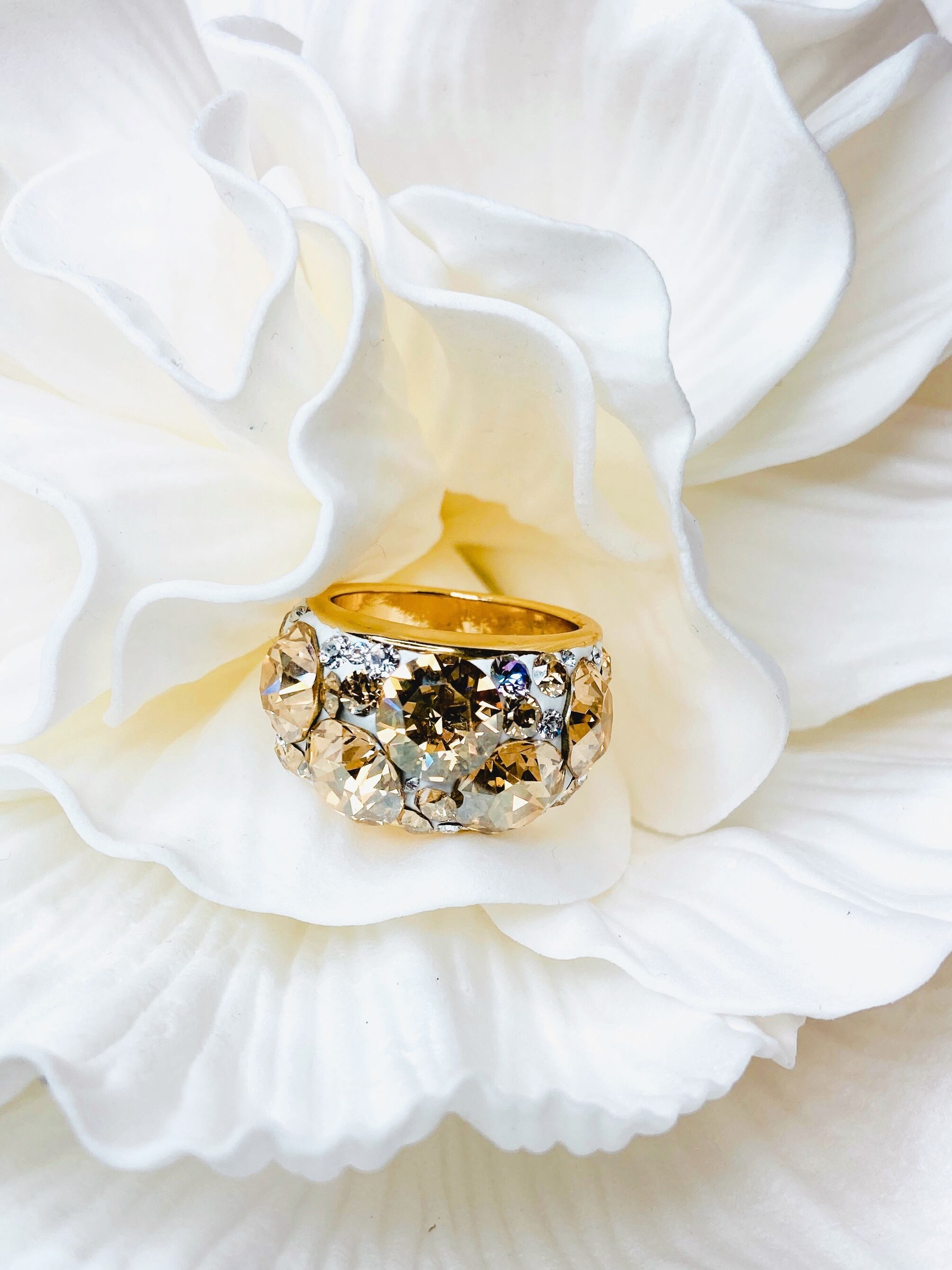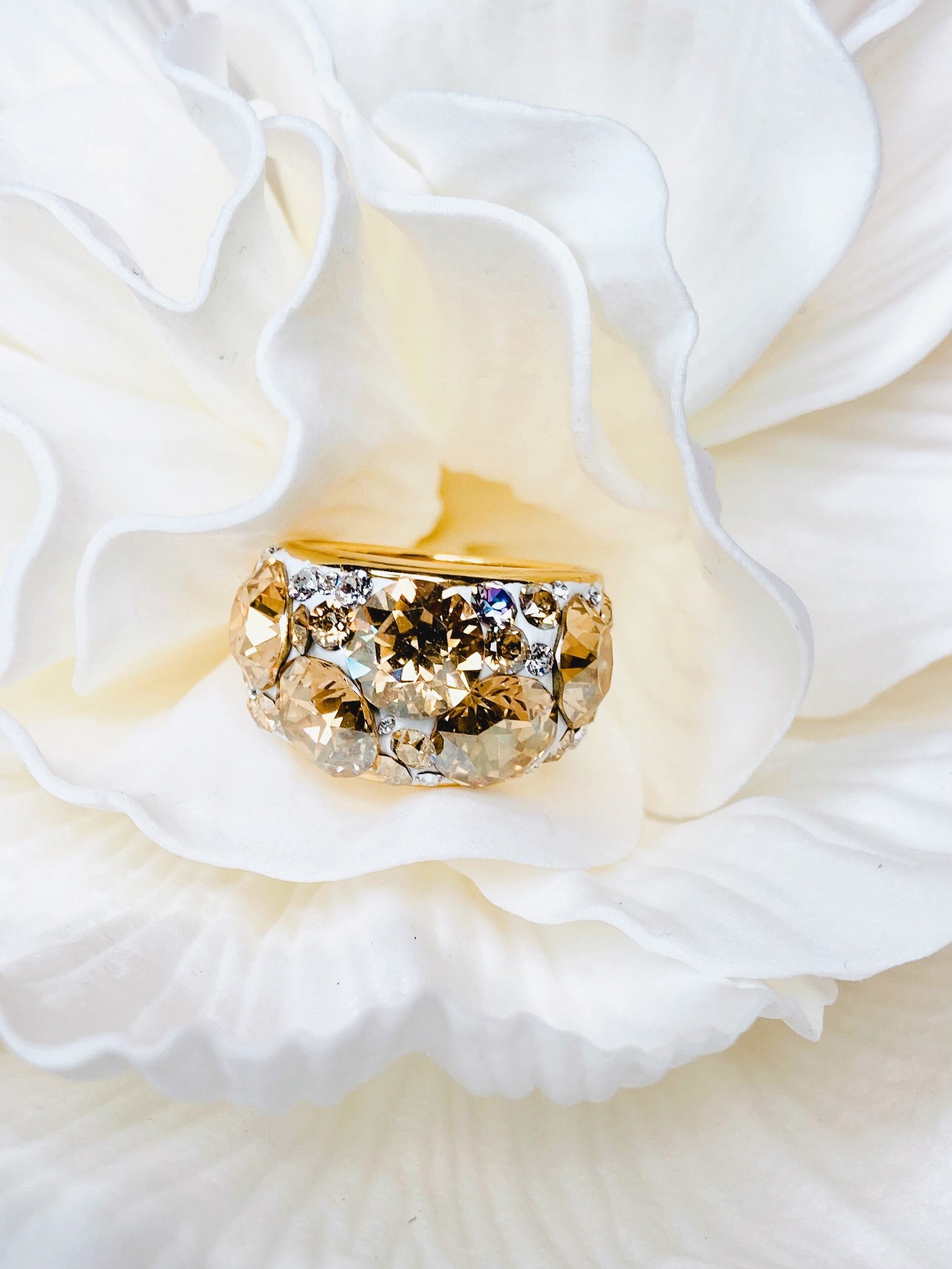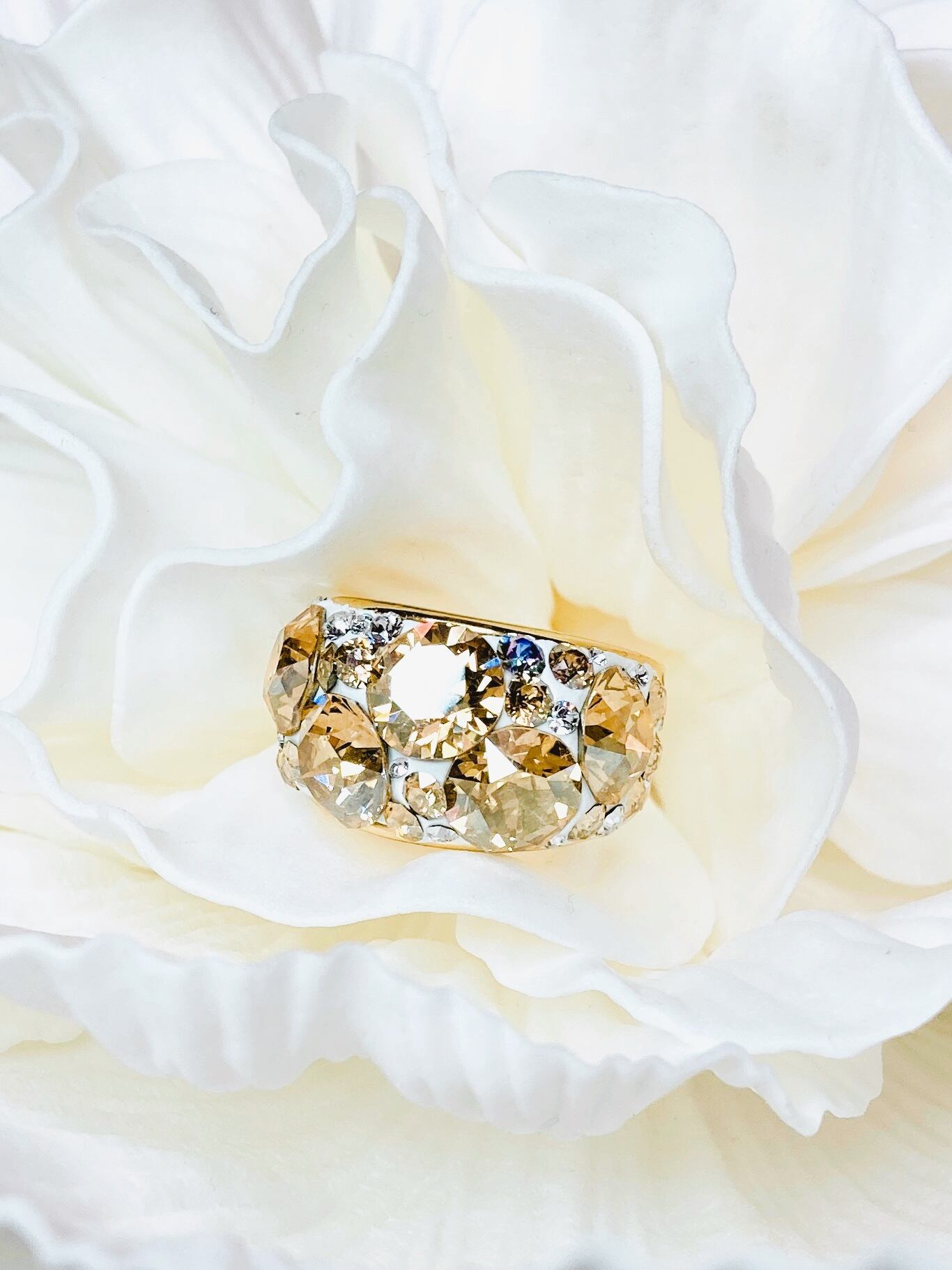 大ぶり 大人可愛い クリスタル ビジュー リング ゴージャス ボリューム ボリューミー 春 夏 秋 冬 お出かけ カジュアル フォーマル オケージョン パーティー 貴和クリスタル クリスタルリング リーズナブル カジュアルリング バースデーギフト 記念日 誕生日 プチギフト クリスマス クリスマスギフト ゴールド ゴールデンシャドウ