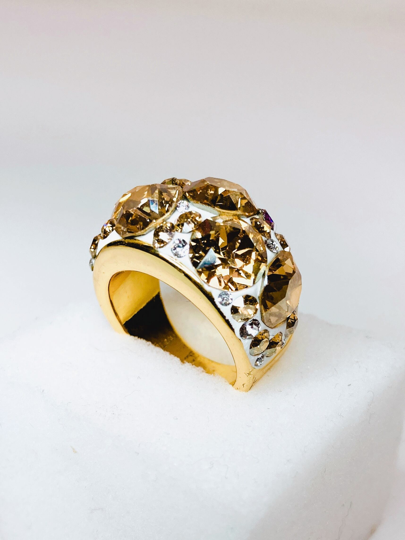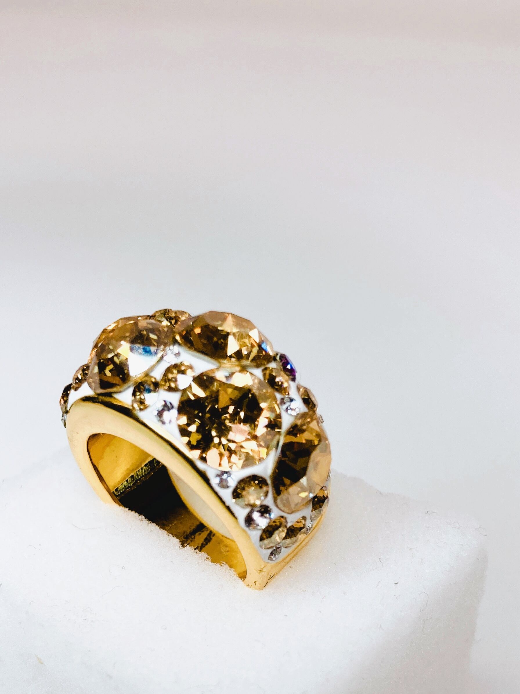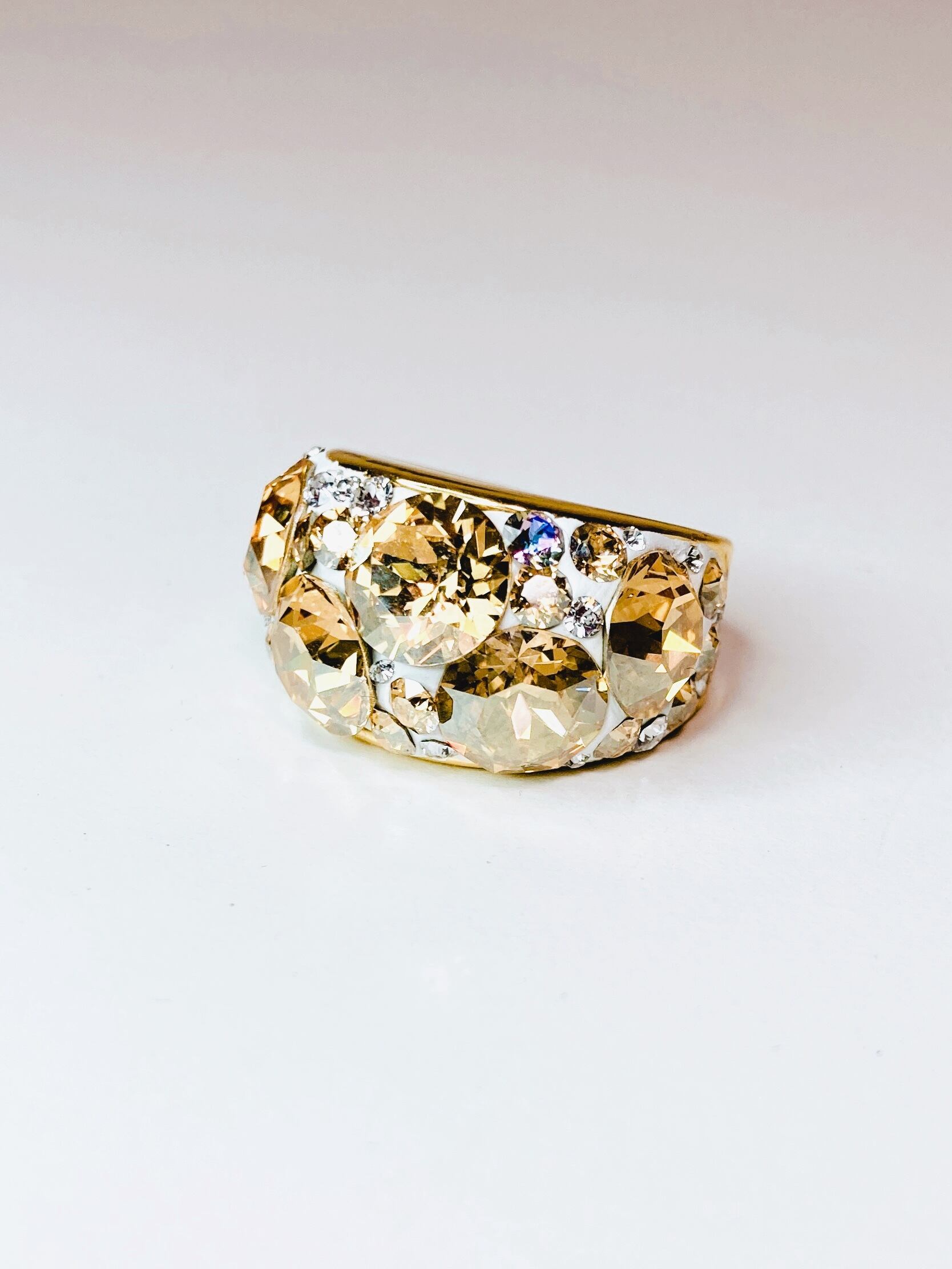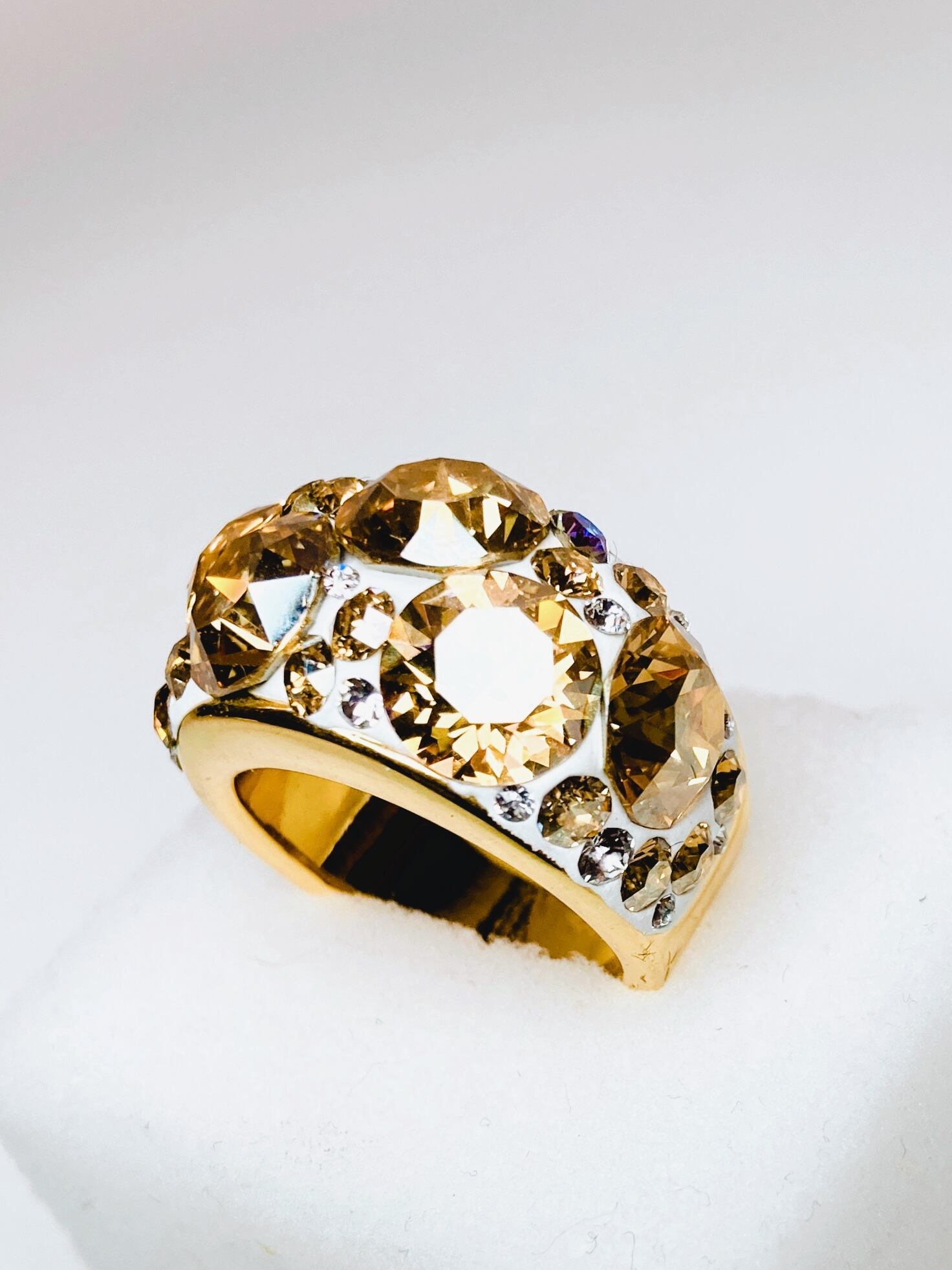大ぶり 大人可愛い クリスタル ビジュー リング ゴージャス ボリューム ボリューミー 春 夏 秋 冬 お出かけ カジュアル フォーマル オケージョン パーティー 貴和クリスタル クリスタルリング リーズナブル カジュアルリング バースデーギフト 記念日 誕生日 プチギフト クリスマス クリスマスギフト ゴールド ゴールデンシャドウ