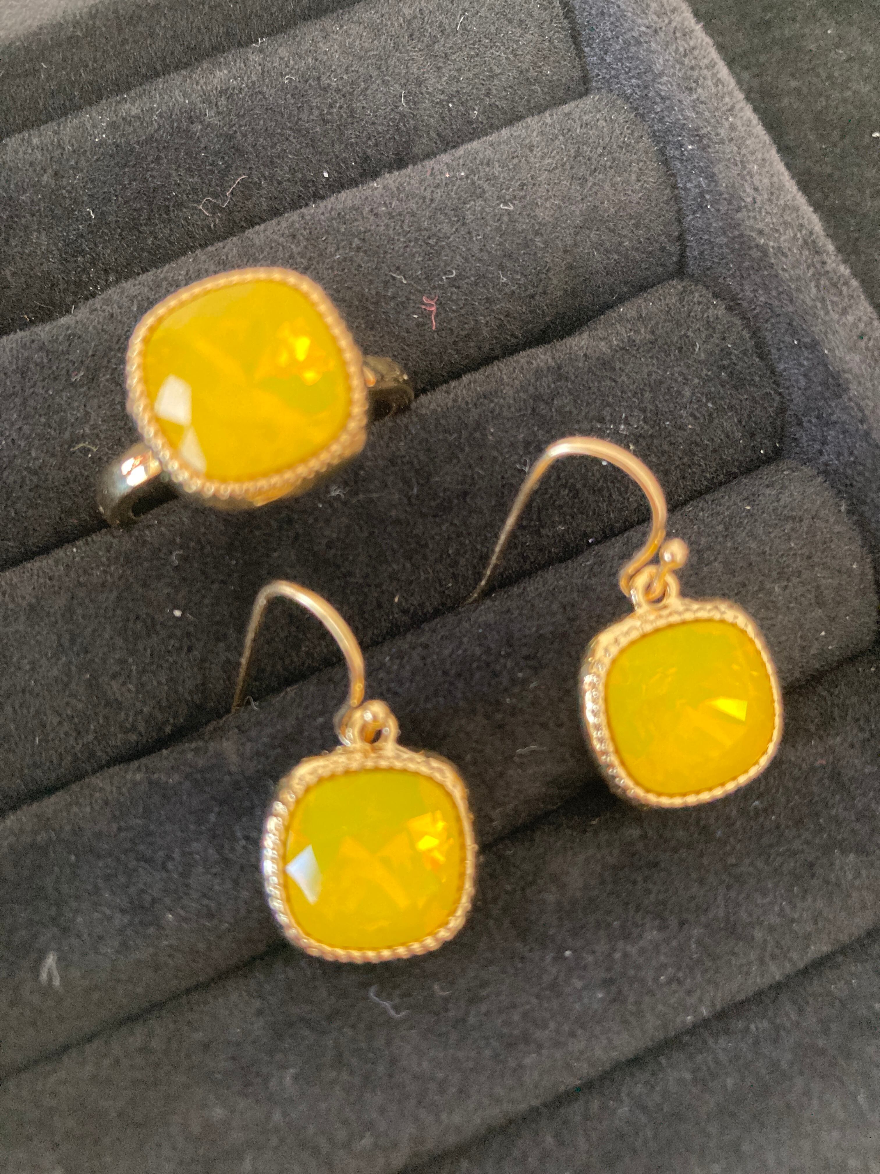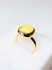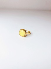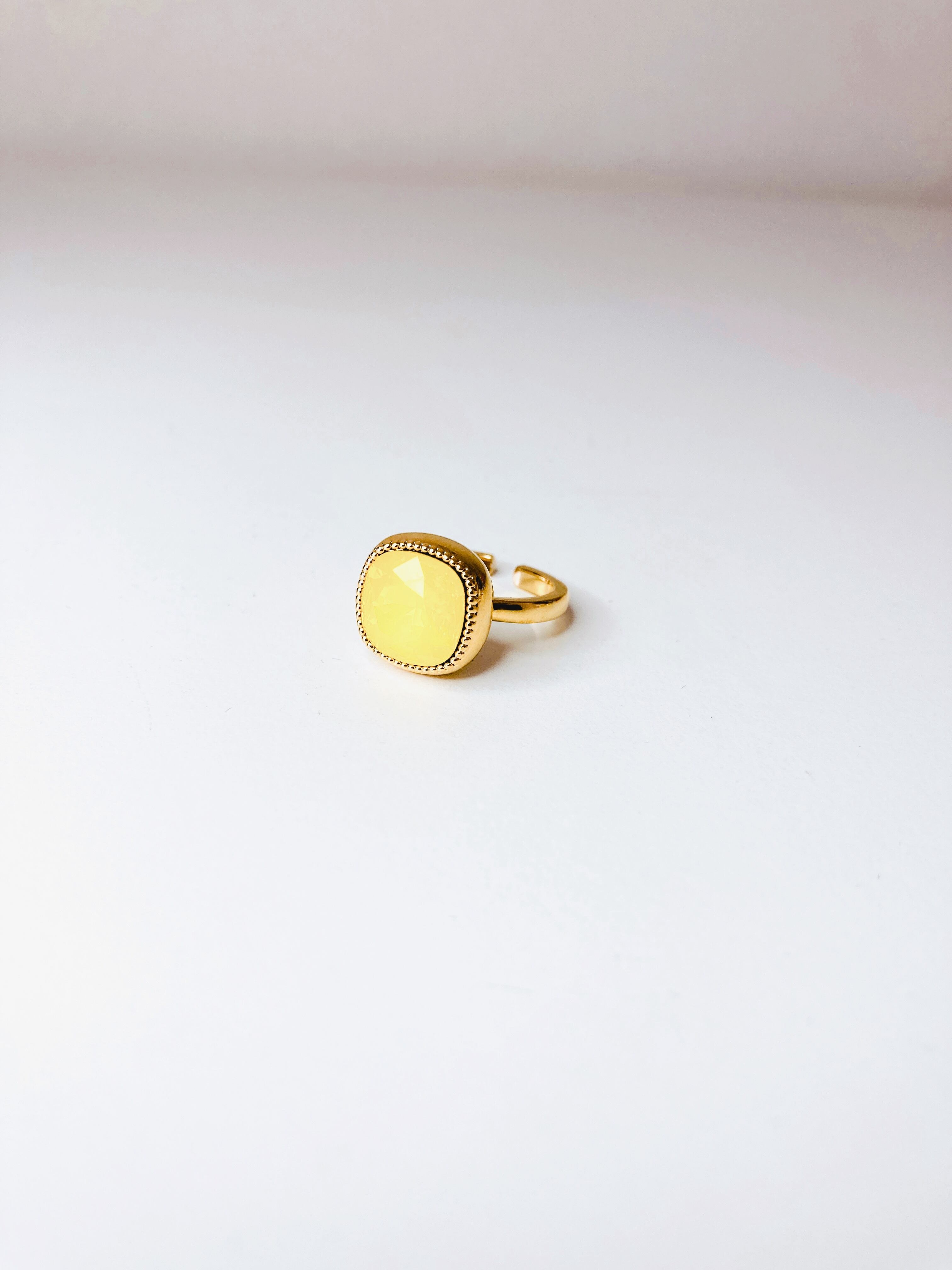 スクエアの大粒クリスタルを台座に乗せたリングです。