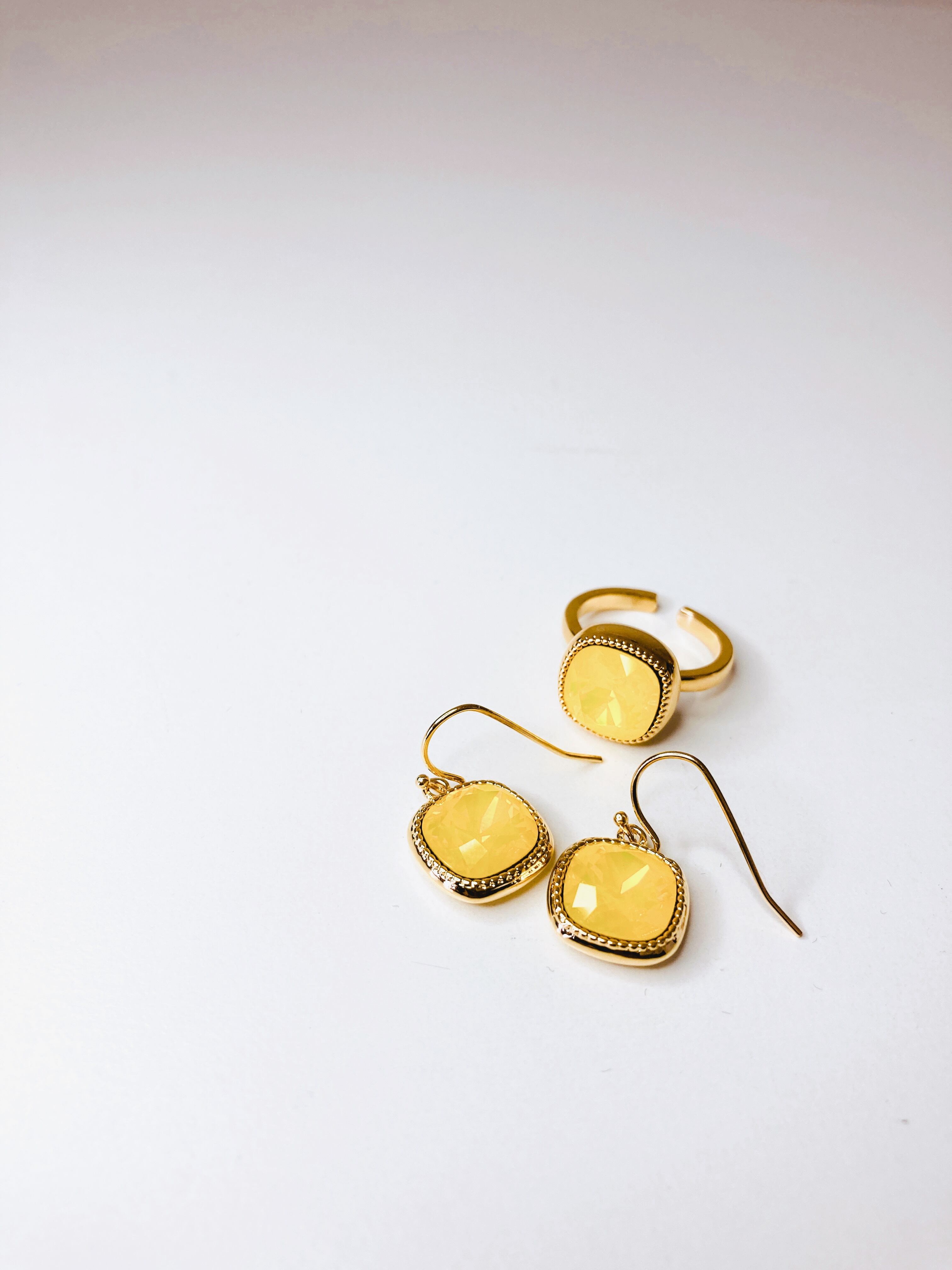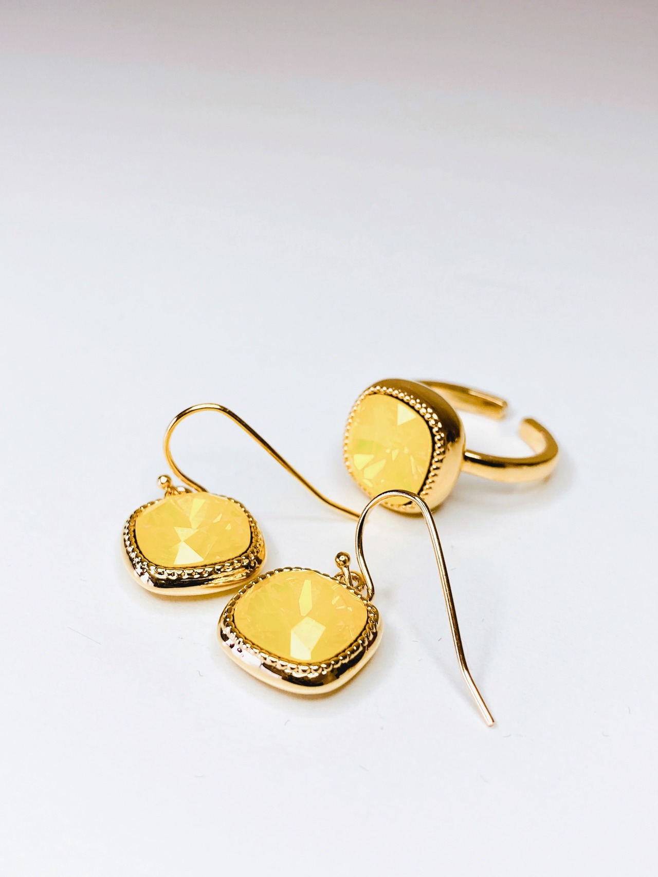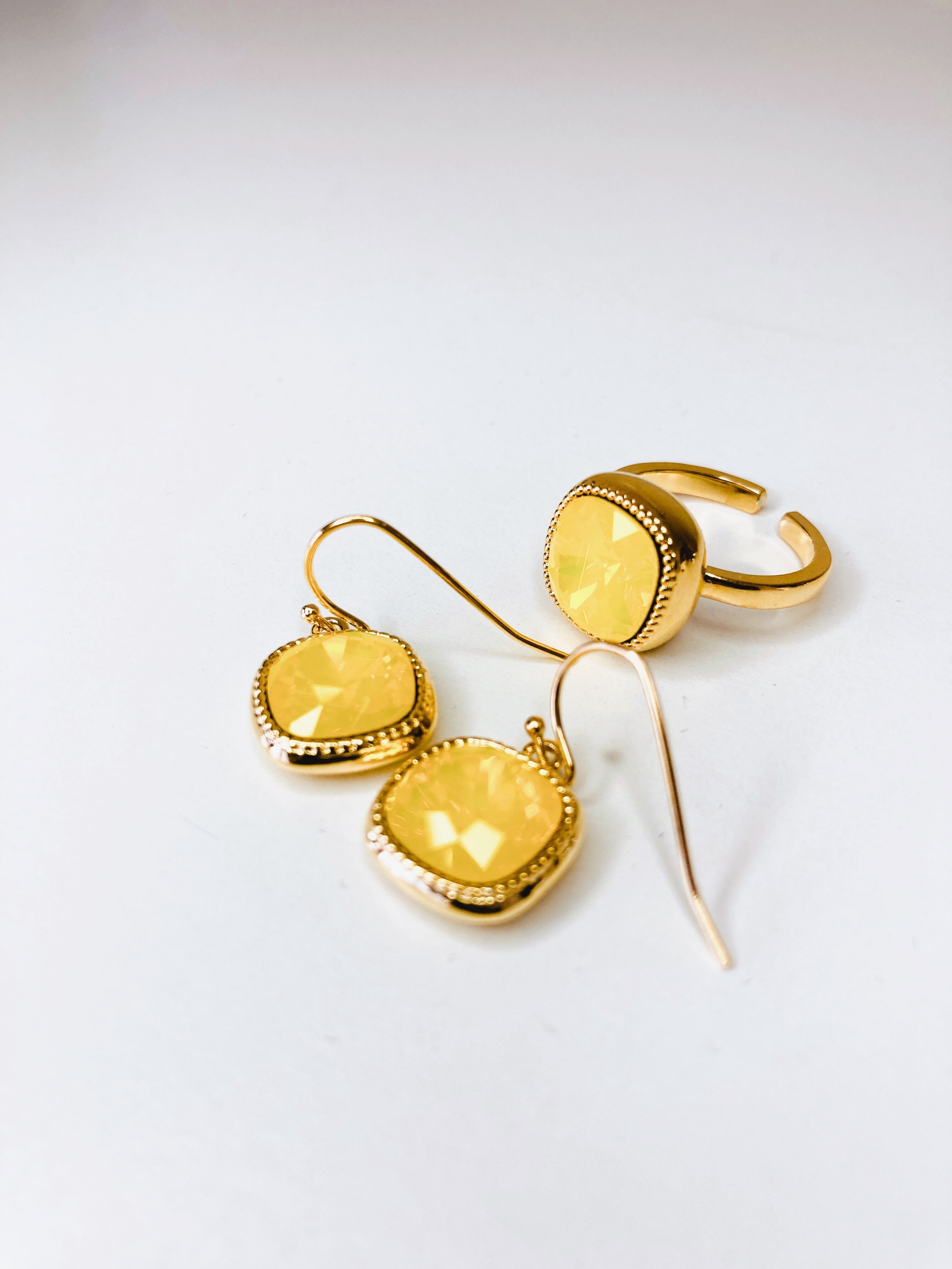 大ぶり 大人可愛い クリスタル ビジュー リング ピアス ゴージャス ボリューム ボリューミー 春 夏 秋 冬 お出かけ カジュアル フォーマル オケージョン パーティー 貴和クリスタル クリスタルリング リーズナブル カジュアルリング バースデーギフト 記念日 誕生日 プチギフト クリスマス クリスマスギフト リング ピアス イエロー ルミナスイエロー