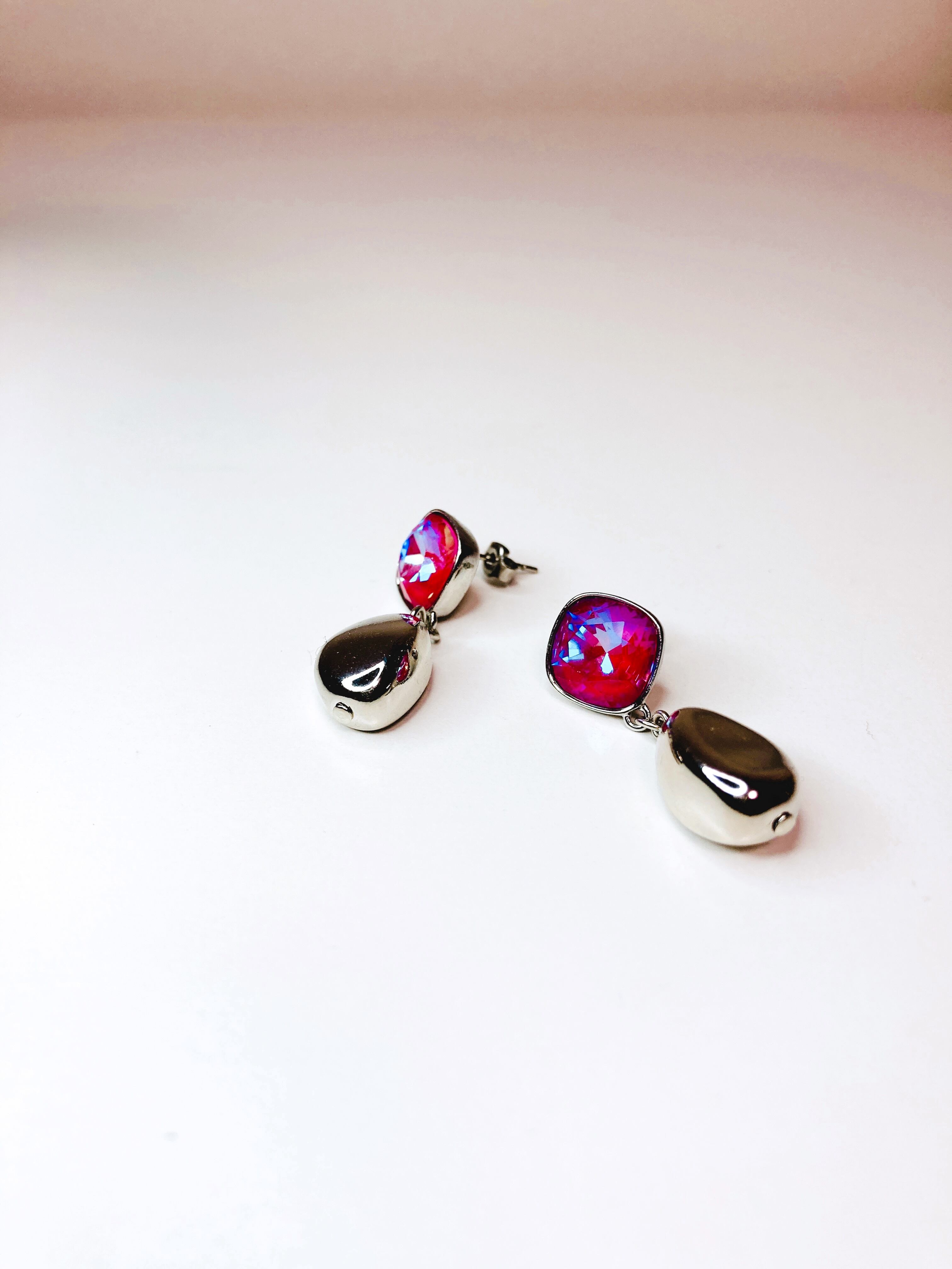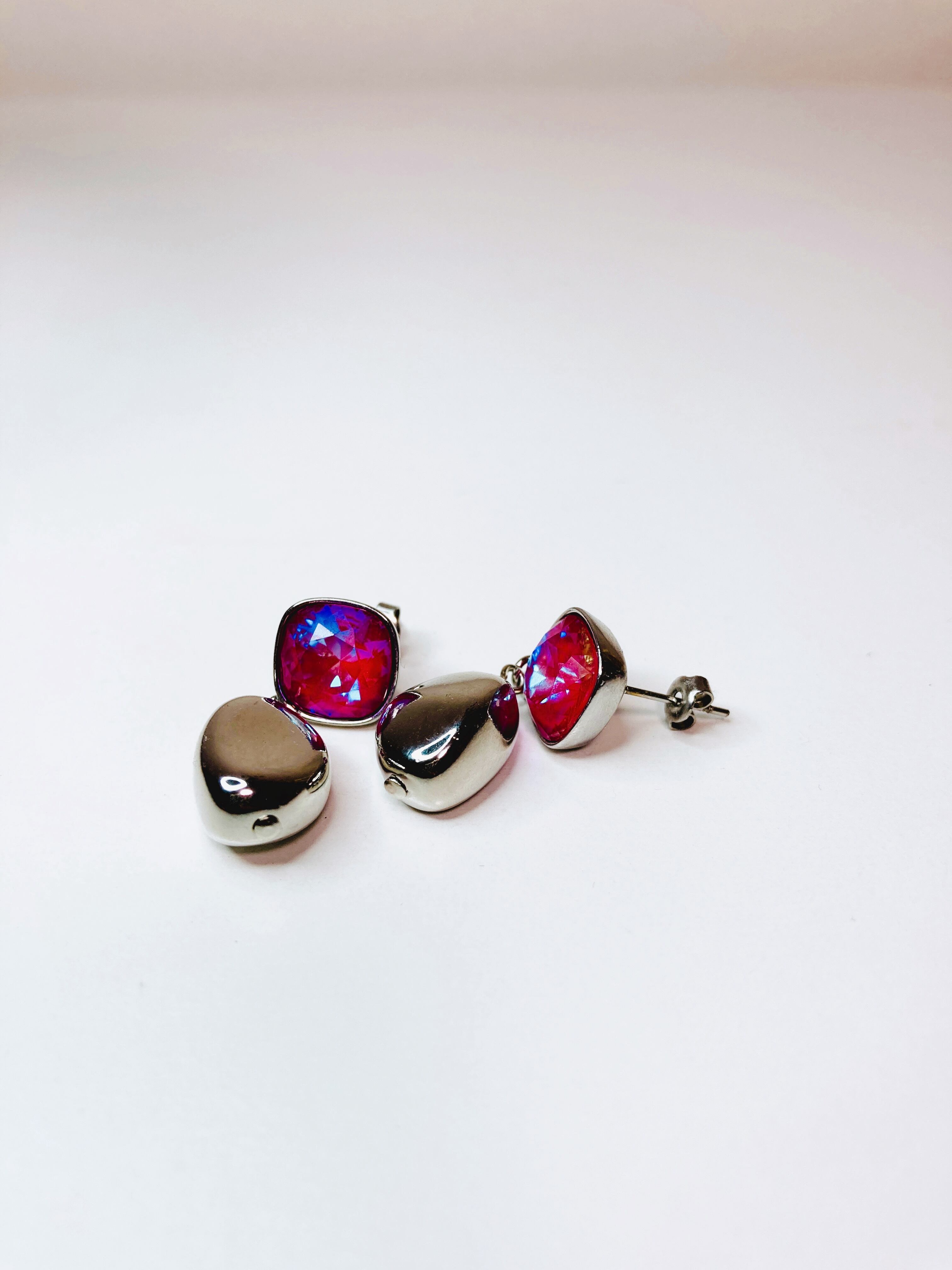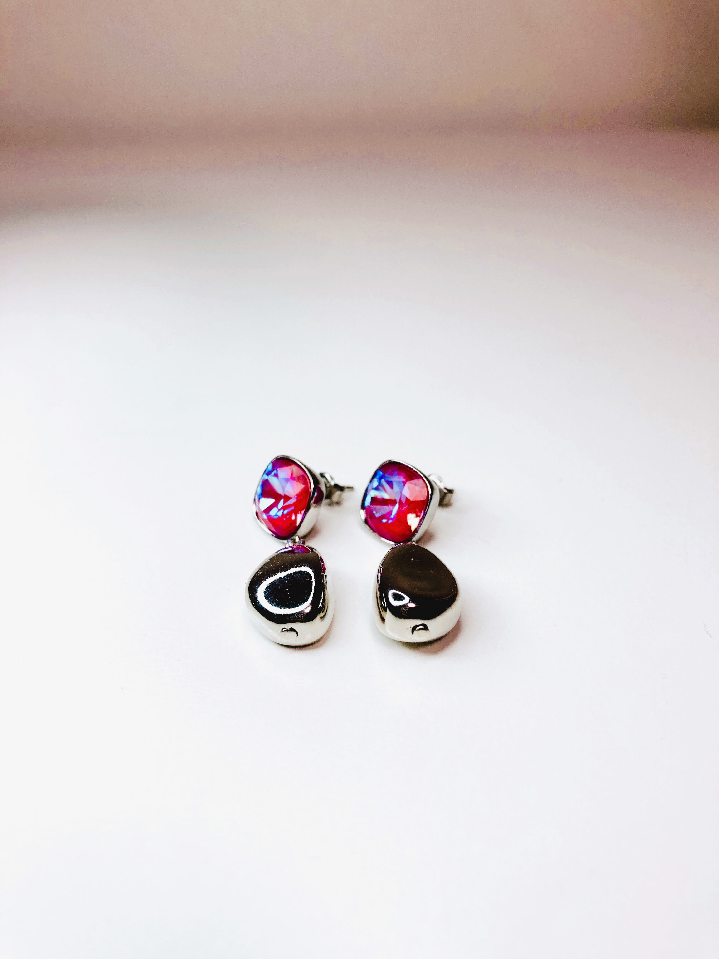スクエアの大粒クリスタルとシルバーメタルの組み合わせ。