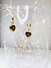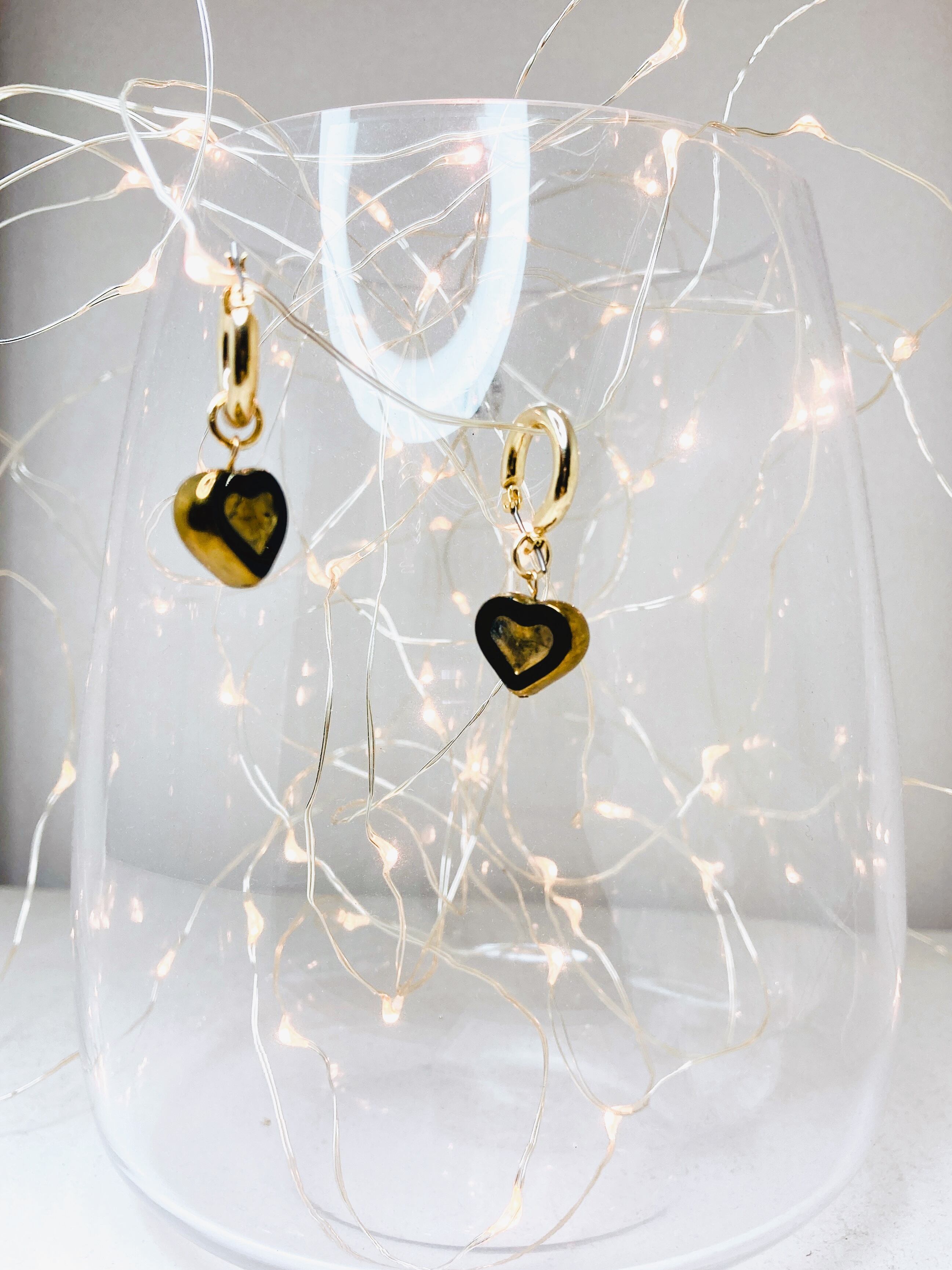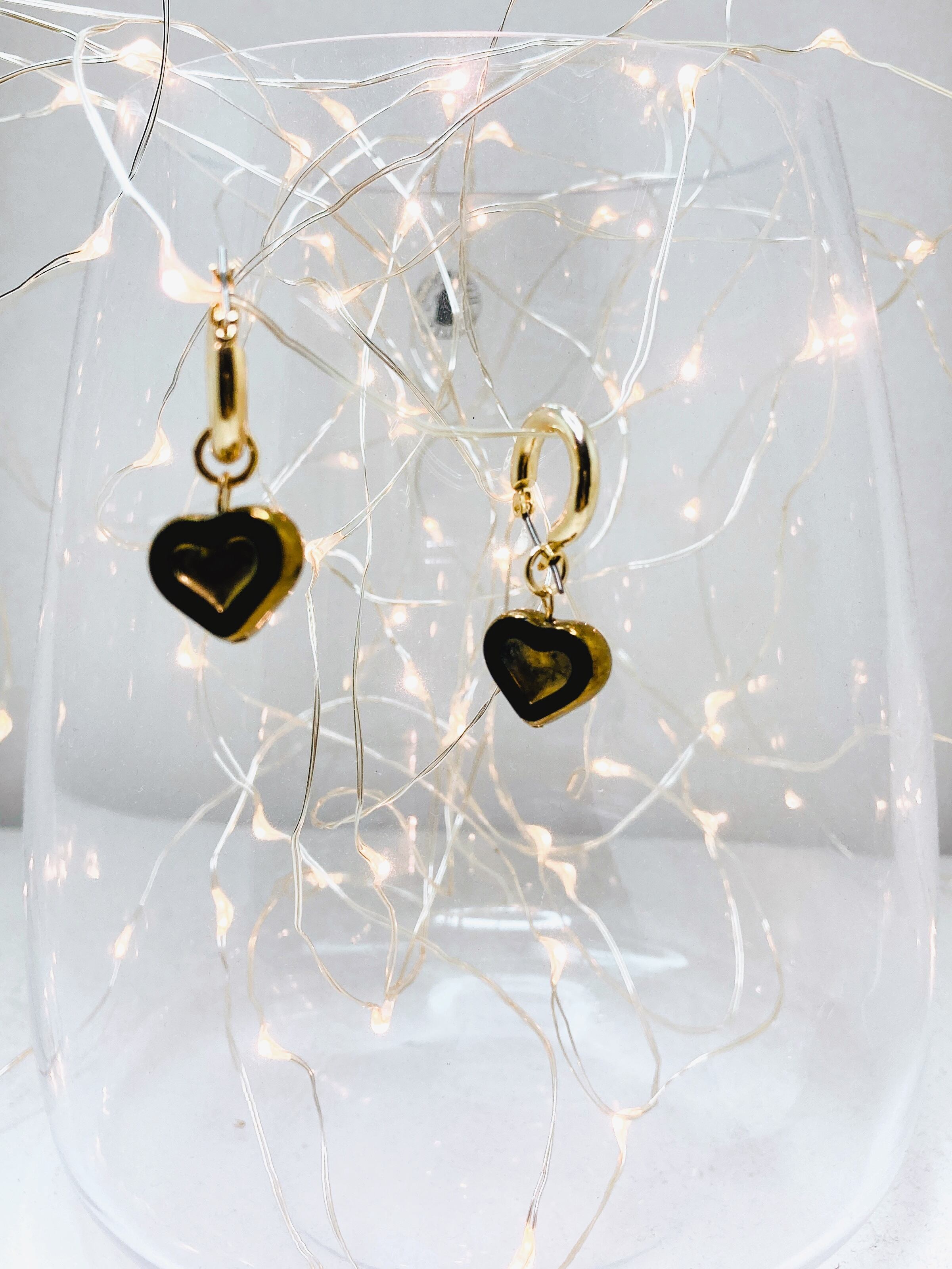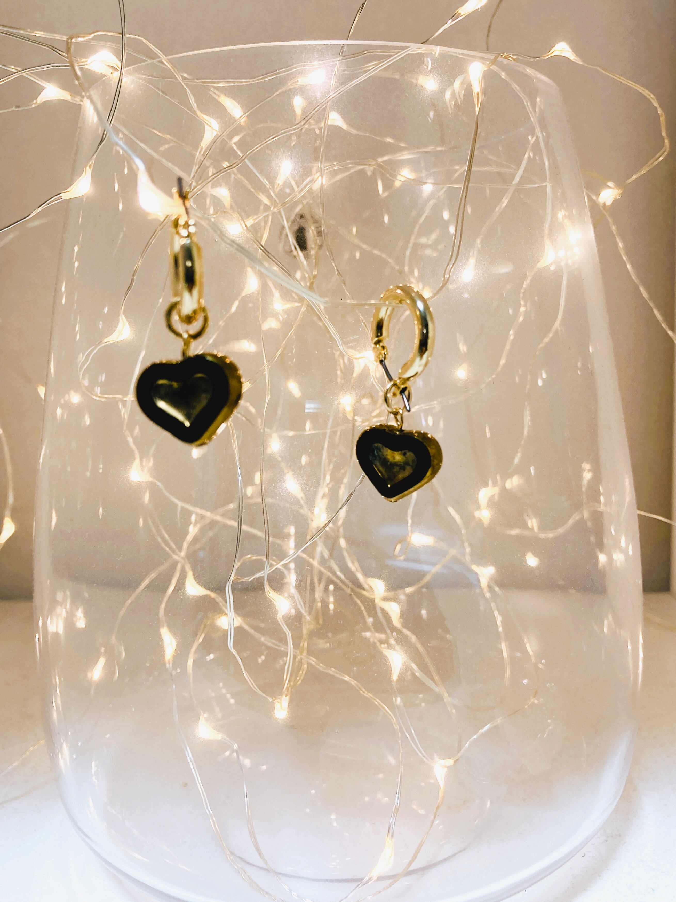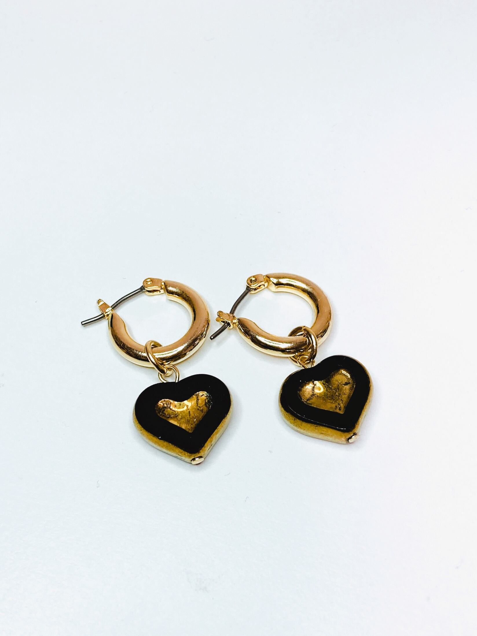 丸みのあるハートモチーフのチェコビーズをチタン製のフープピアスに合わせ仕上げました。