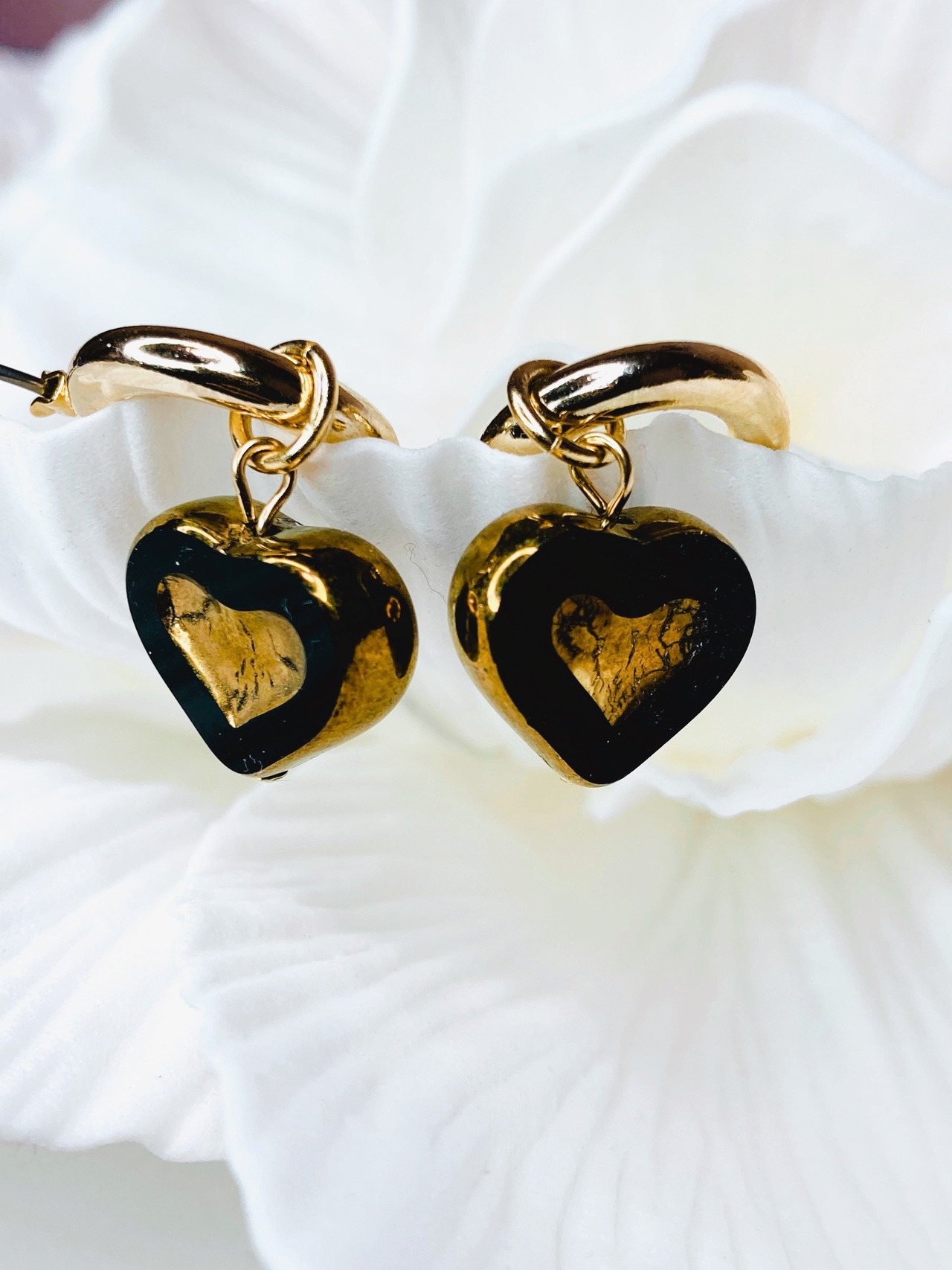 ハートのサイドと中央のカット部分にコーティングが施されたヴィンテージ感漂うデザインです。