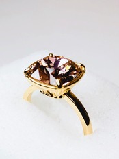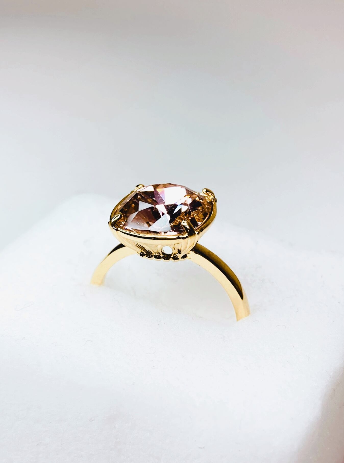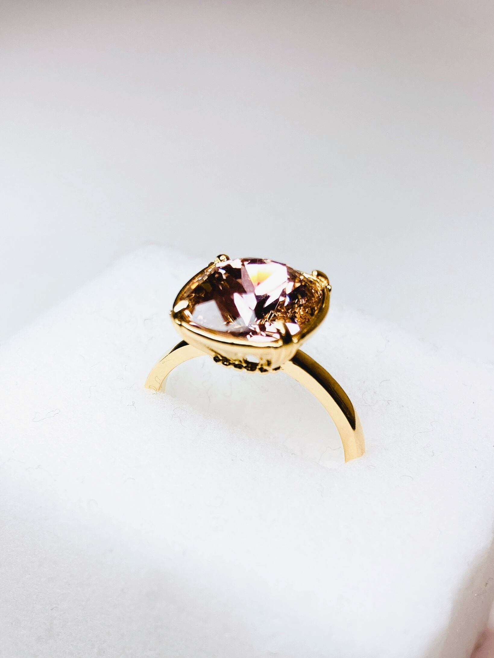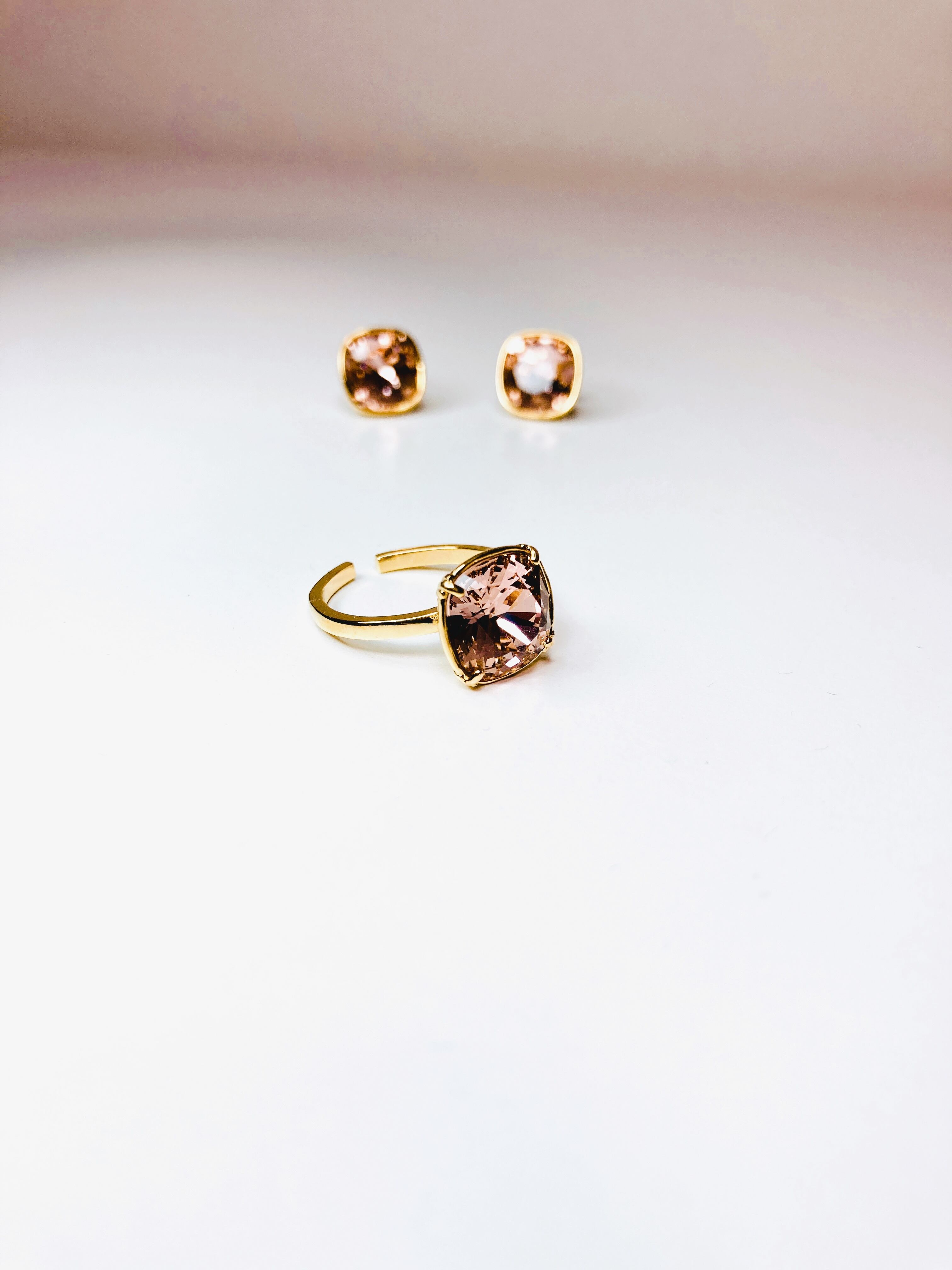 スクエアの大粒クリスタルを台座に乗せたリングです。