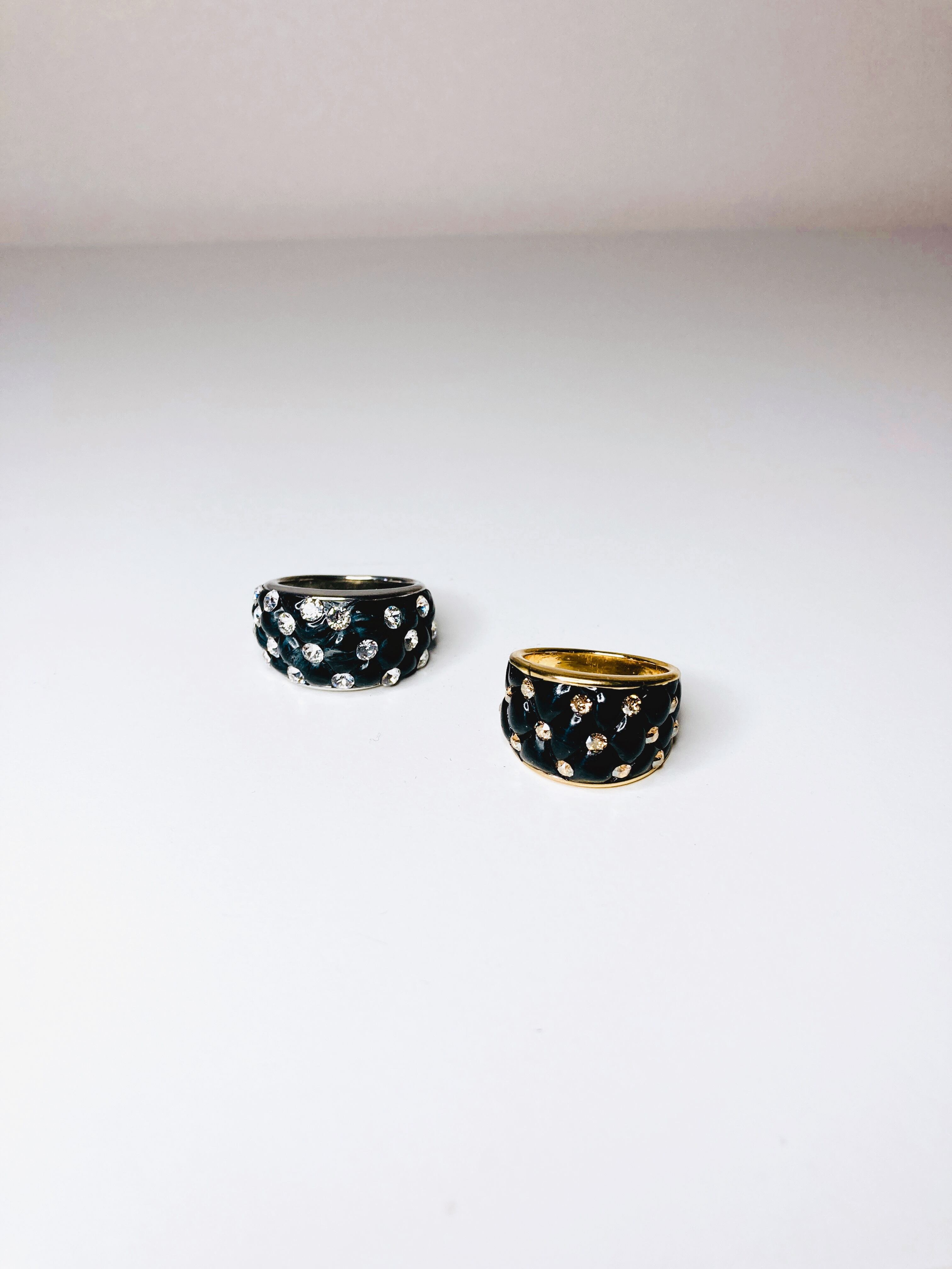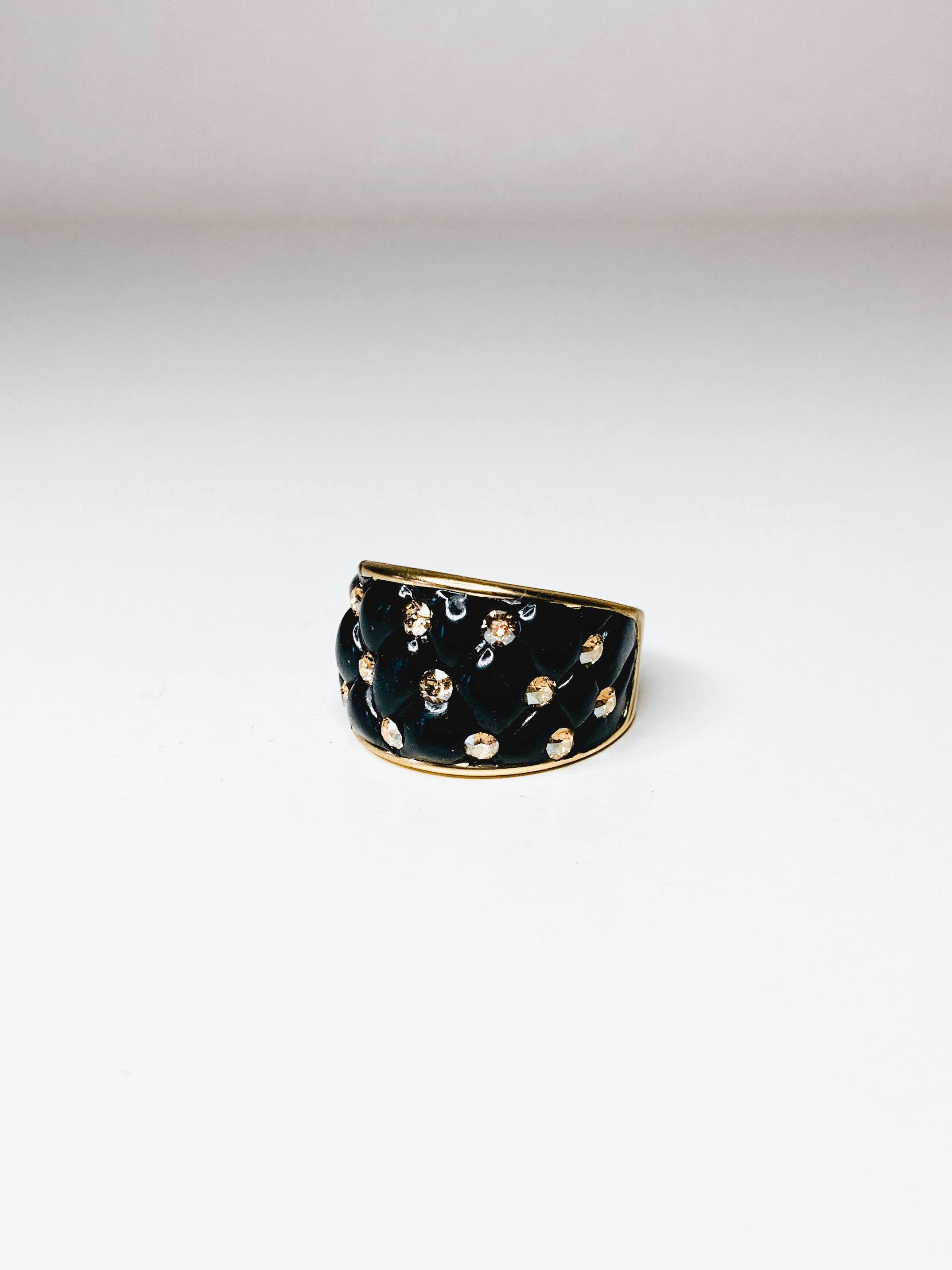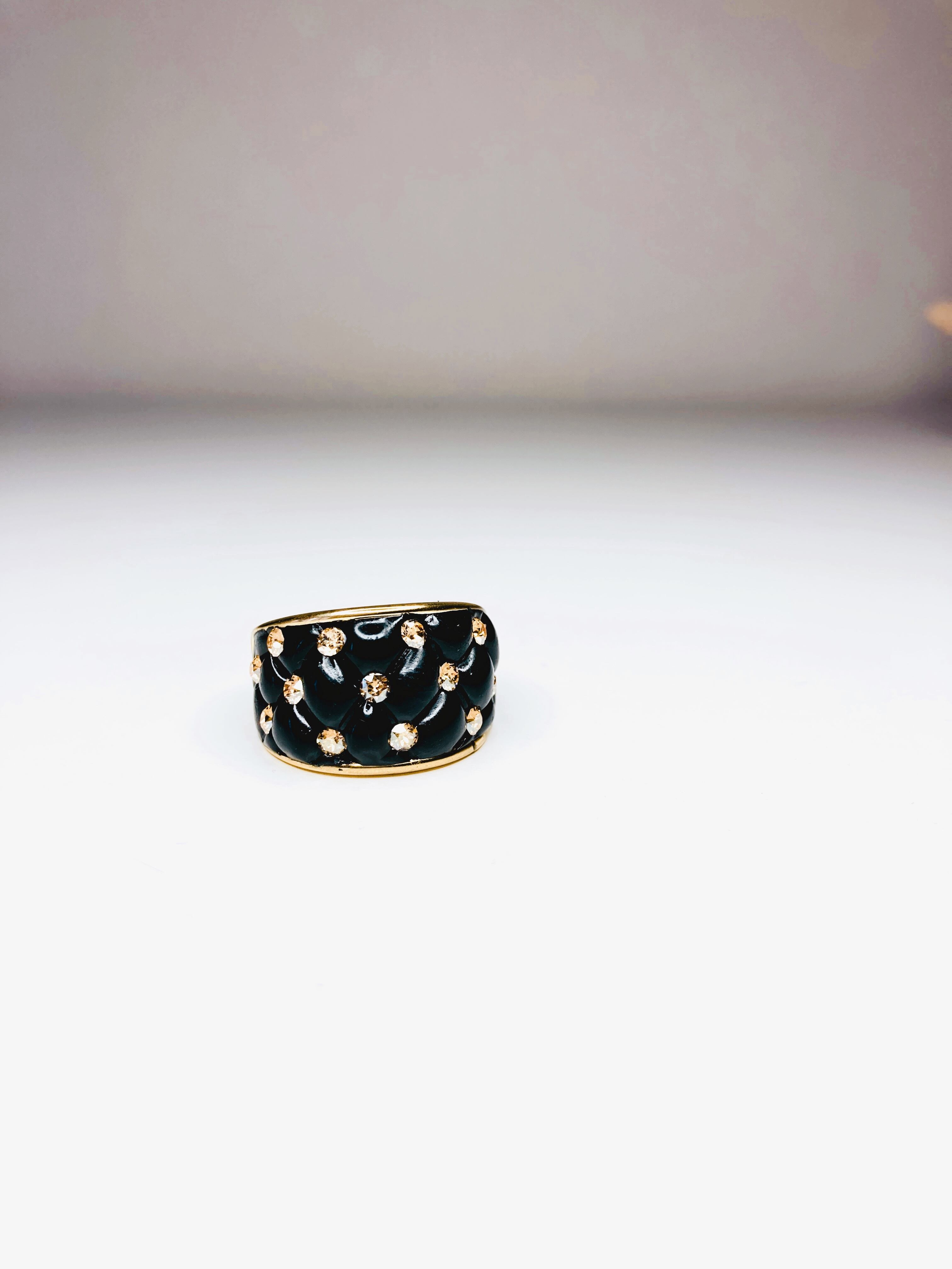 大ぶり 大人可愛い クリスタル ビジュー リング ゴージャス ボリューム ボリューミー 春 夏 秋 冬 お出かけ カジュアル フォーマル オケージョン パーティー 貴和クリスタル クリスタルリング リーズナブル カジュアルリング バースデーギフト 記念日 誕生日 プチギフト クリスマス クリスマスギフト ゴールド ゴールデンシャドウ キルティング マトラッセ ブラック