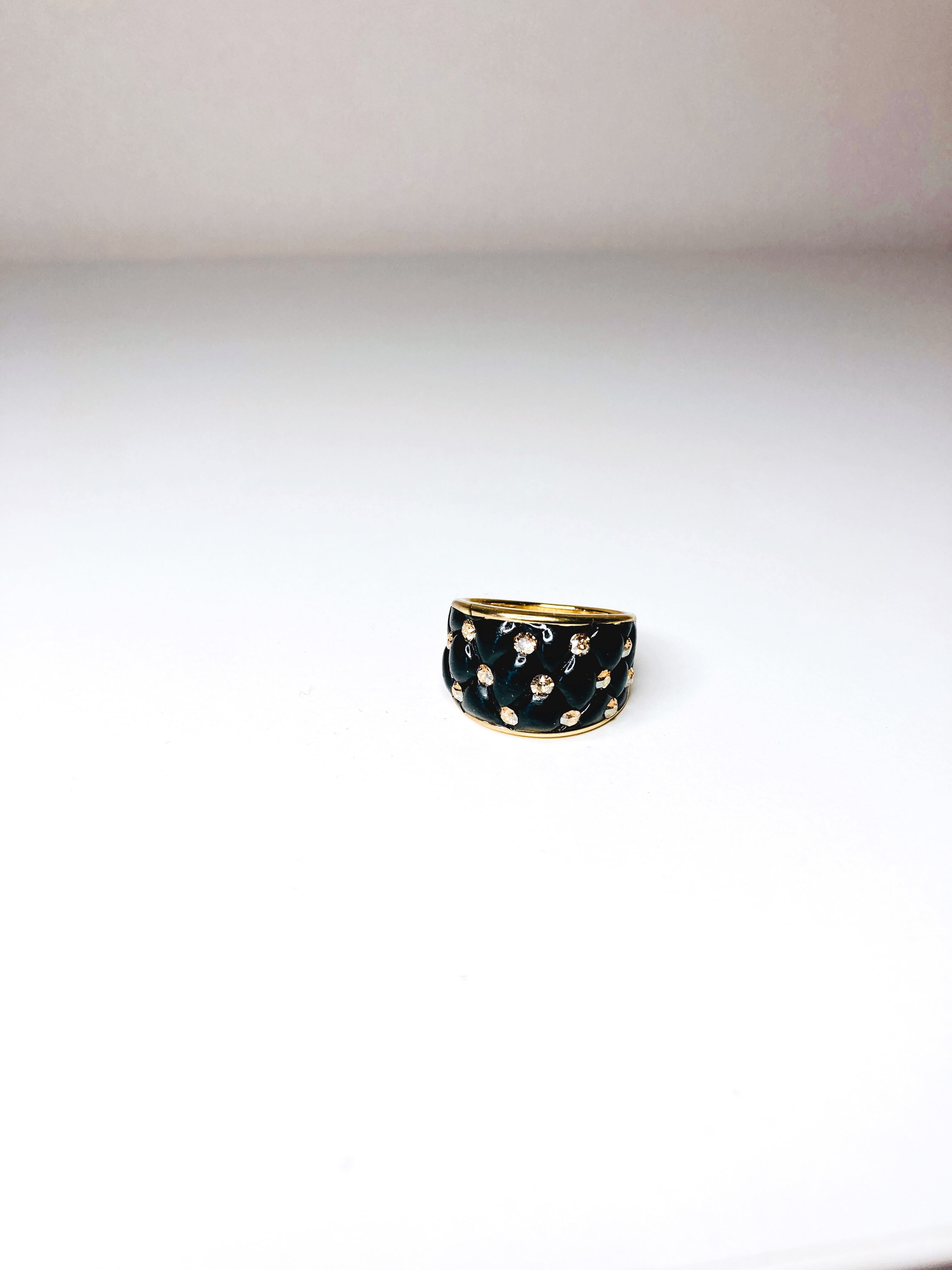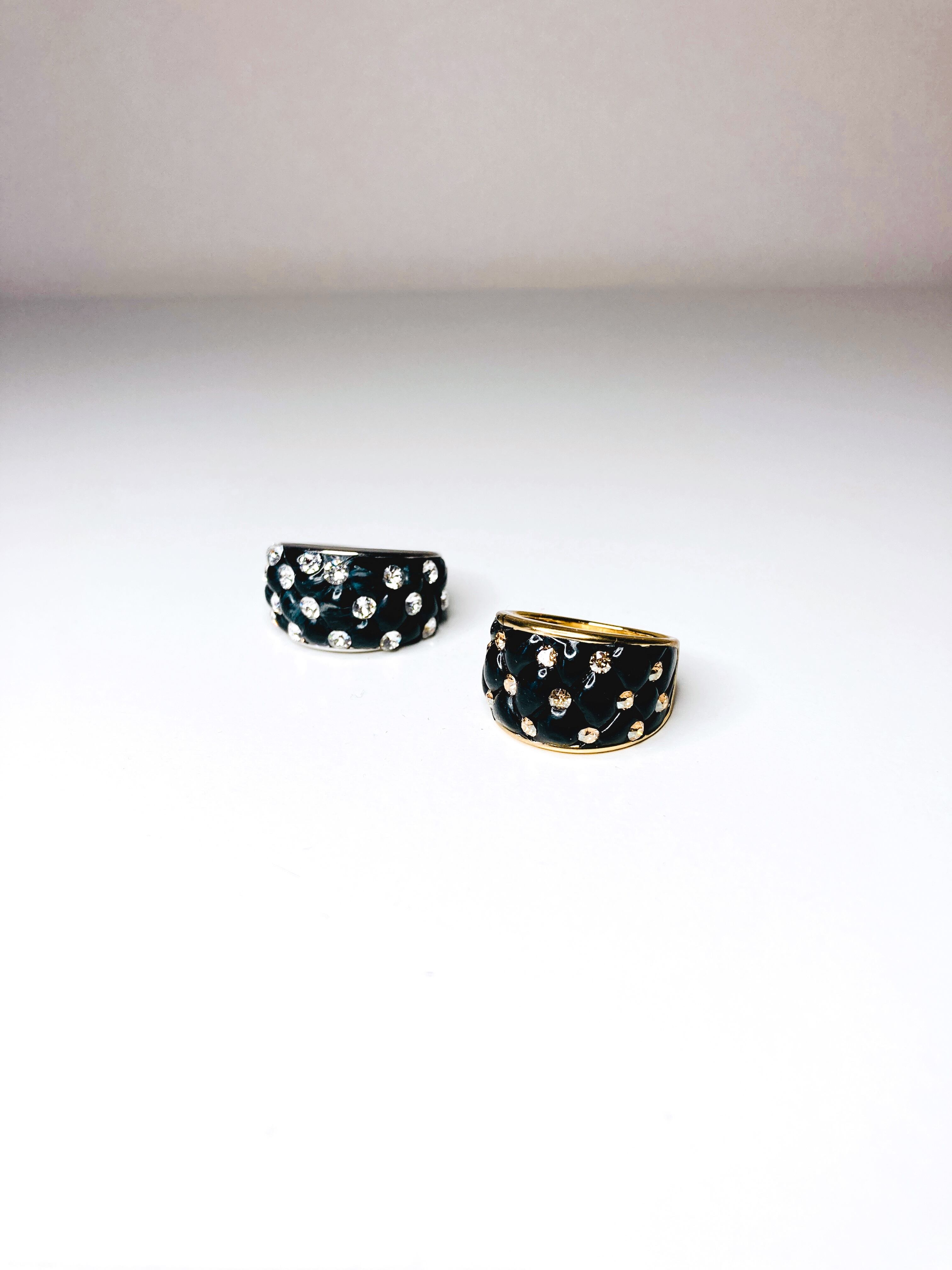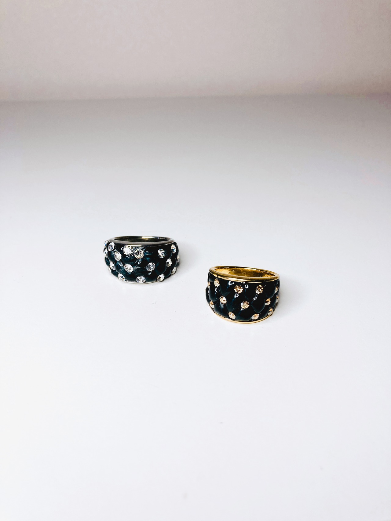 大ぶり 大人可愛い クリスタル ビジュー リング ゴージャス ボリューム ボリューミー 春 夏 秋 冬 お出かけ カジュアル フォーマル オケージョン パーティー 貴和クリスタル クリスタルリング リーズナブル カジュアルリング バースデーギフト 記念日 誕生日 プチギフト クリスマス クリスマスギフト ゴールド ゴールデンシャドウ キルティング マトラッセ ブラック