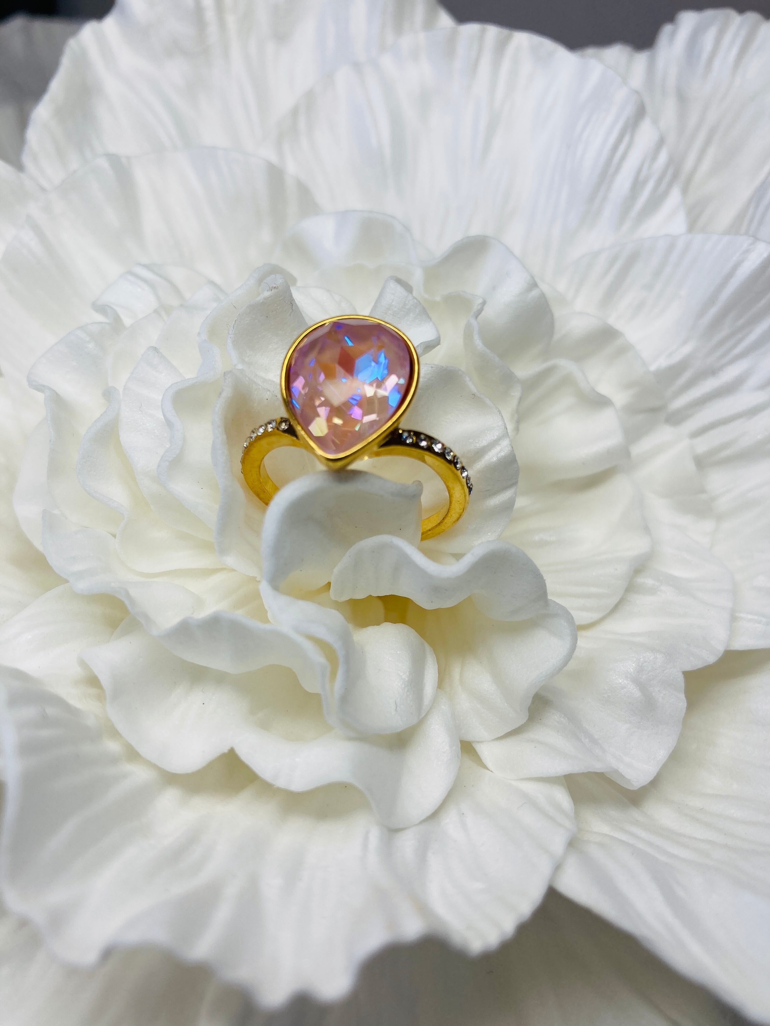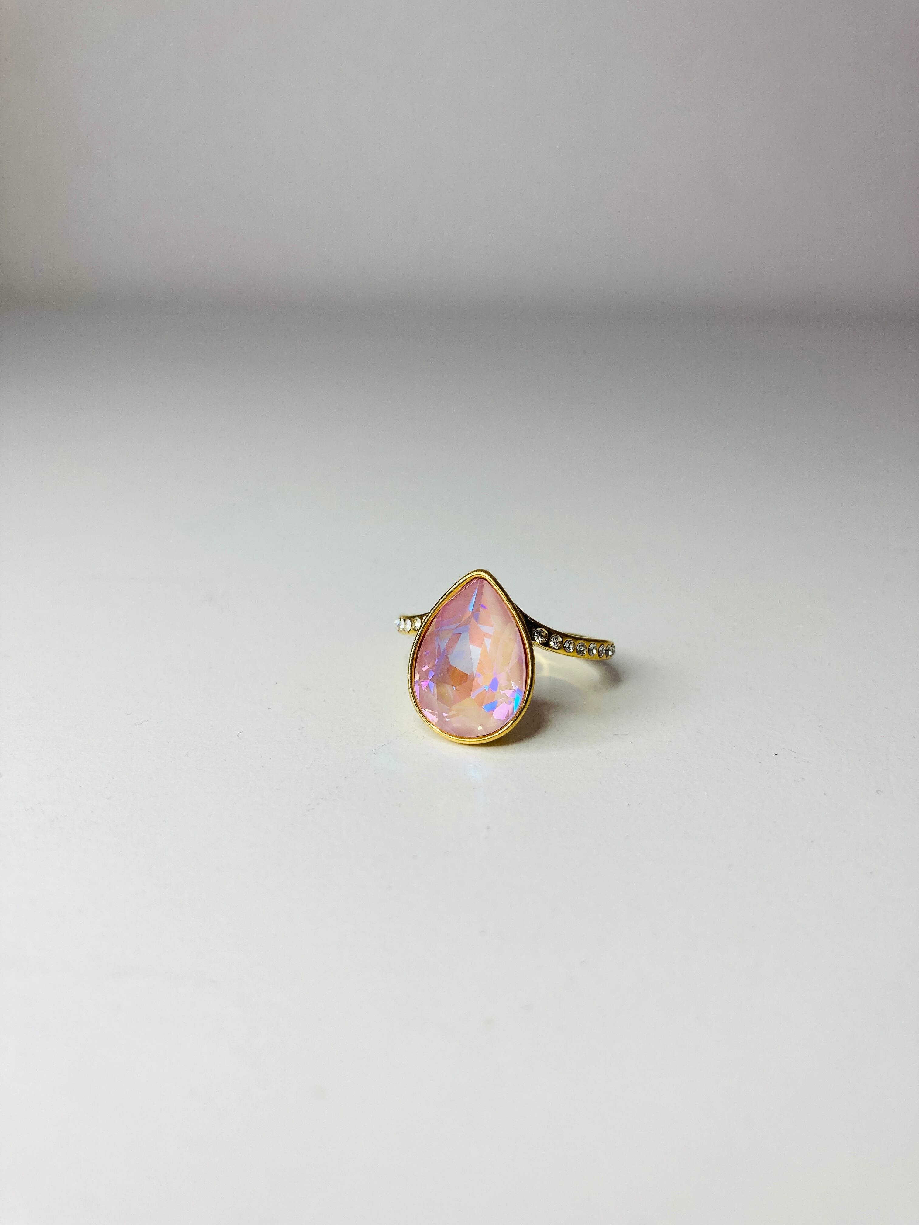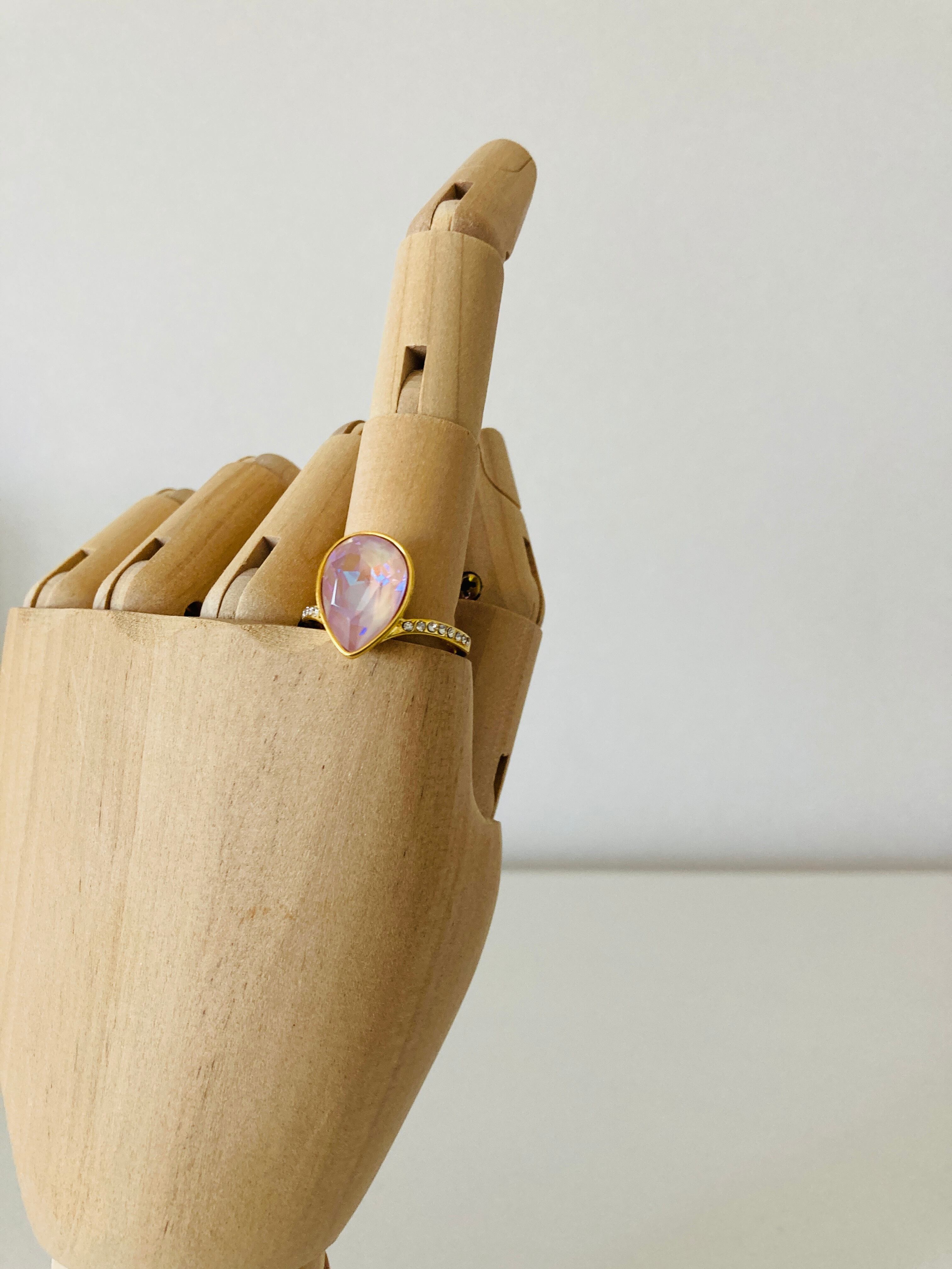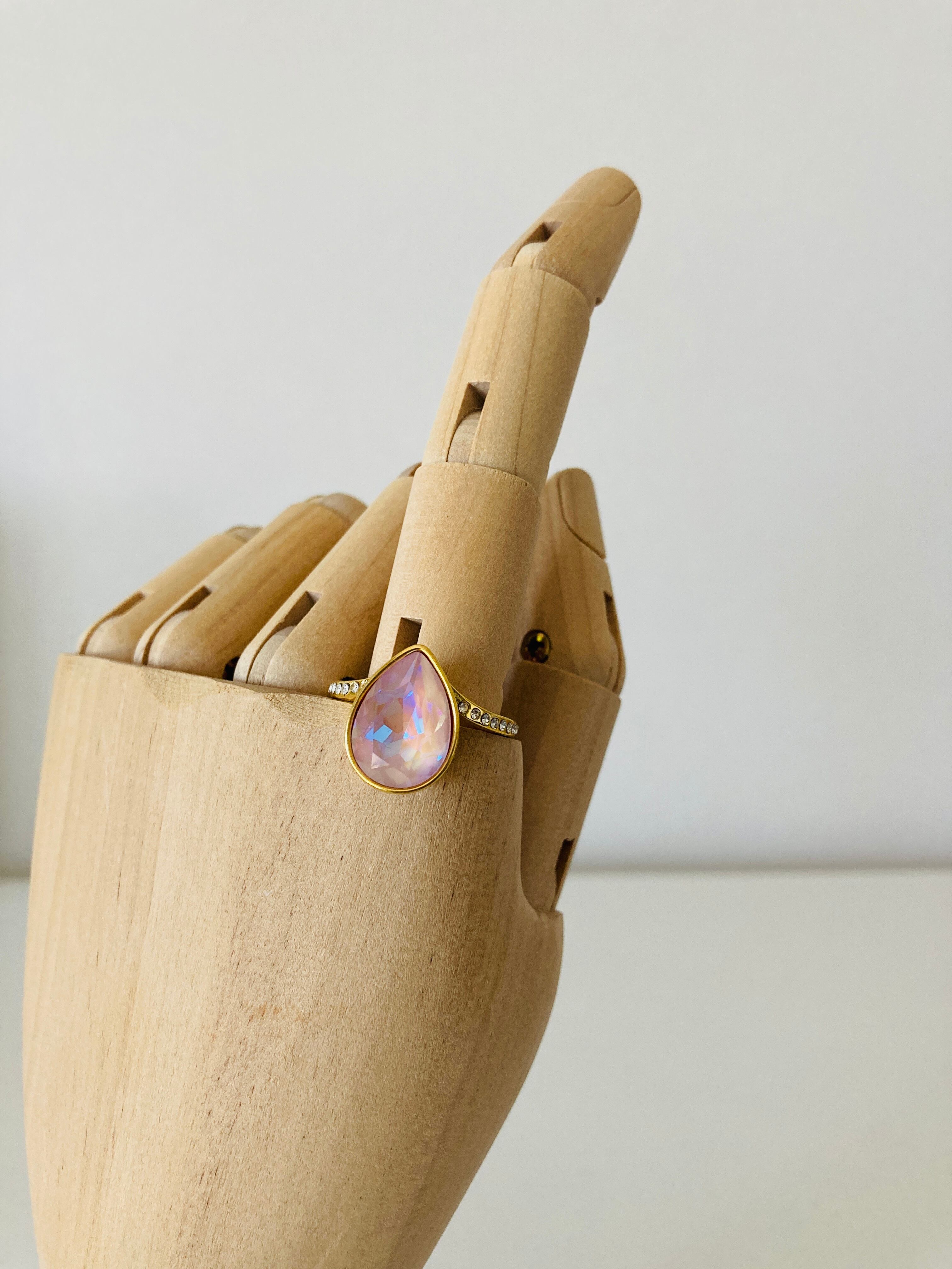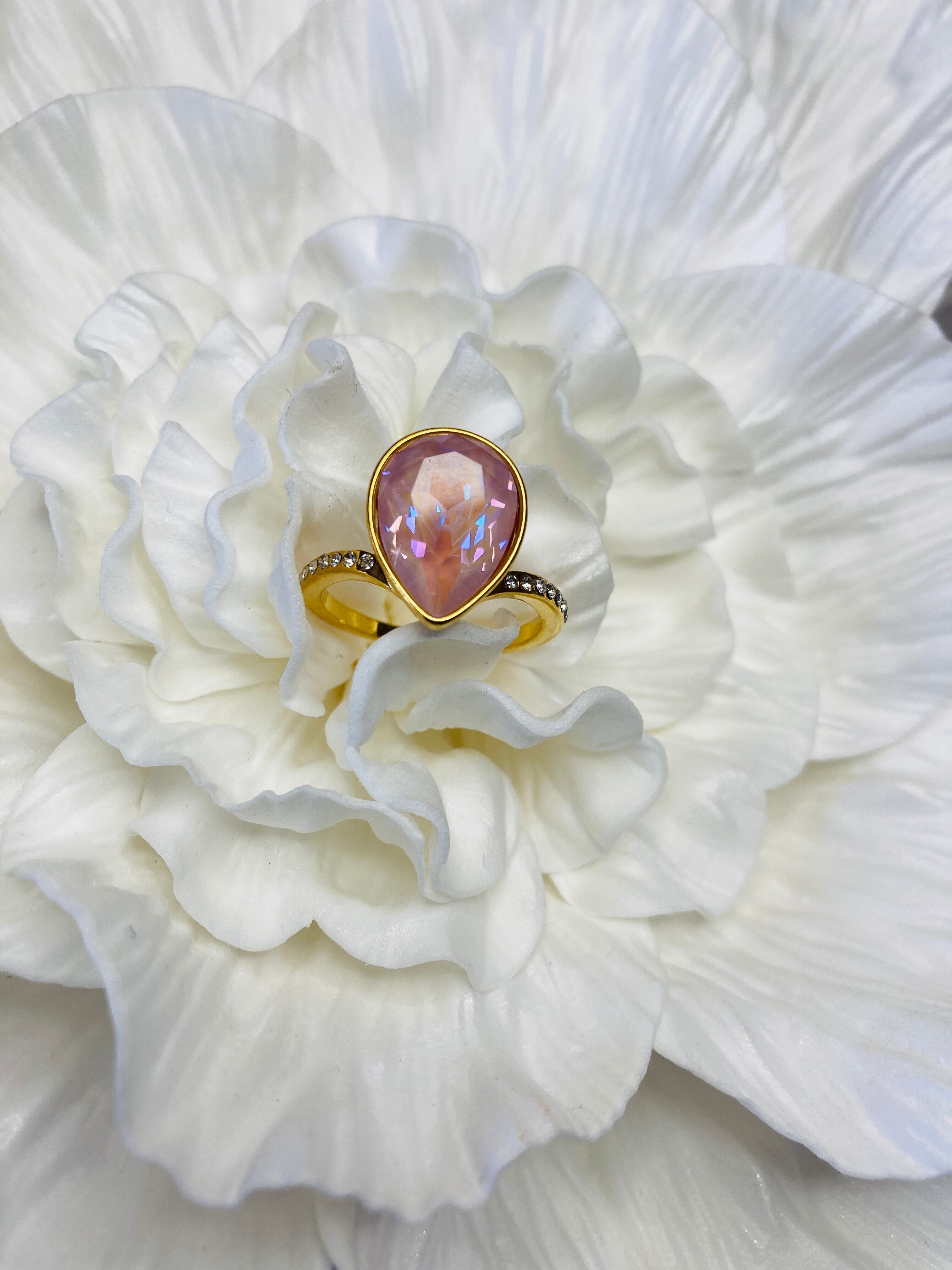 大ぶり ティアドロップ ドロップ クリスタル ビジュー リング ゴージャス ボリューム ボリューミー 大ぶり 春 夏 秋 冬 お出かけ カジュアル フォーマル パーティー プチギフト バースデー 記念日 バースデーギフト クリスマス クリスマスギフト 母の日 ピンク