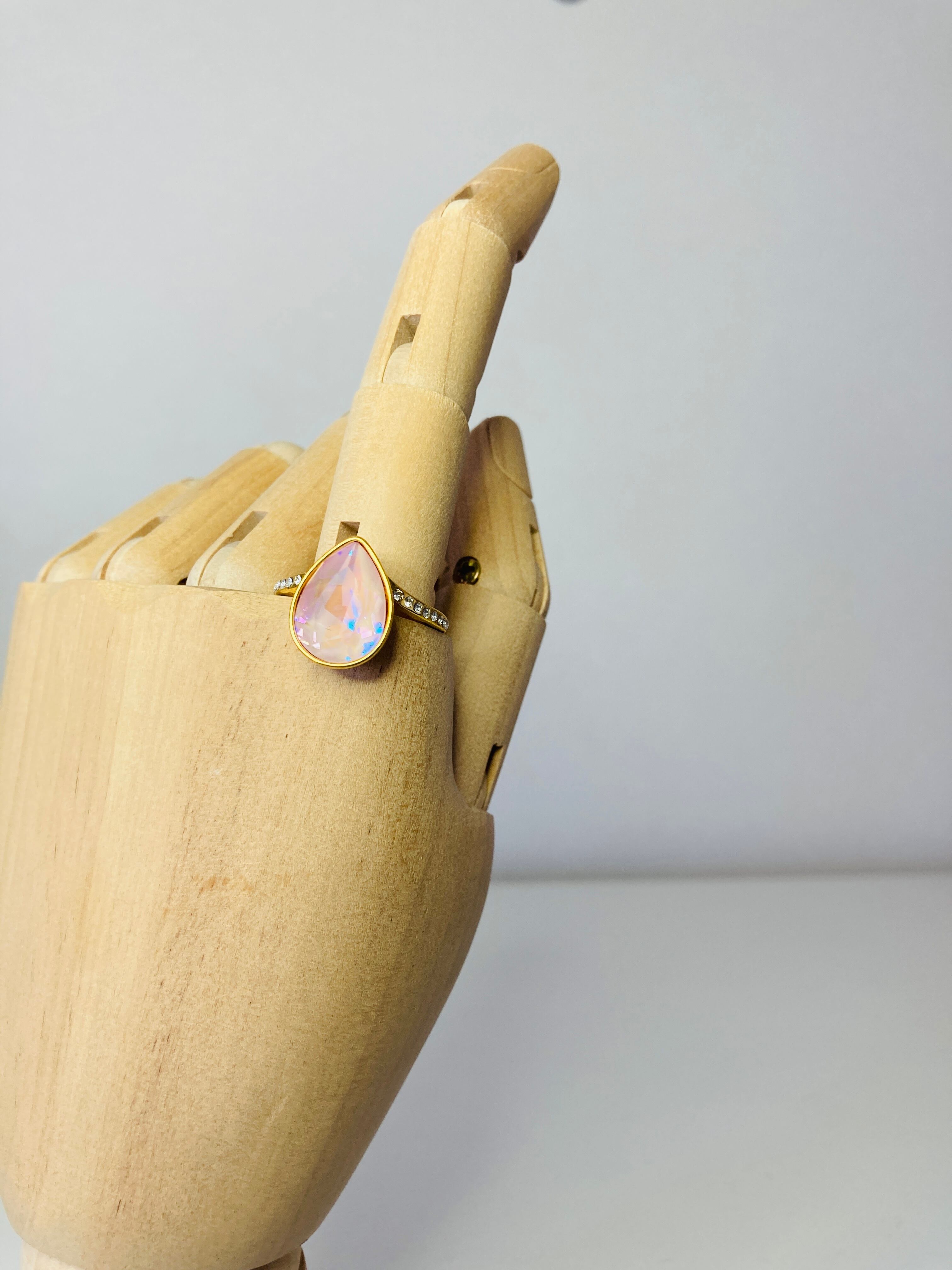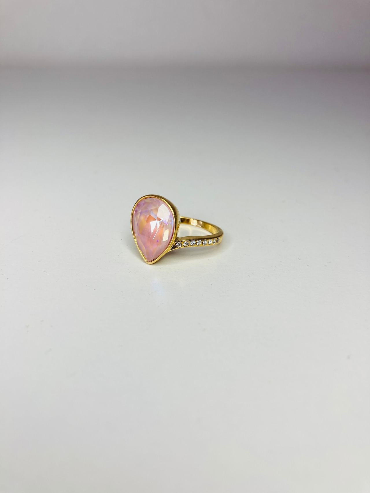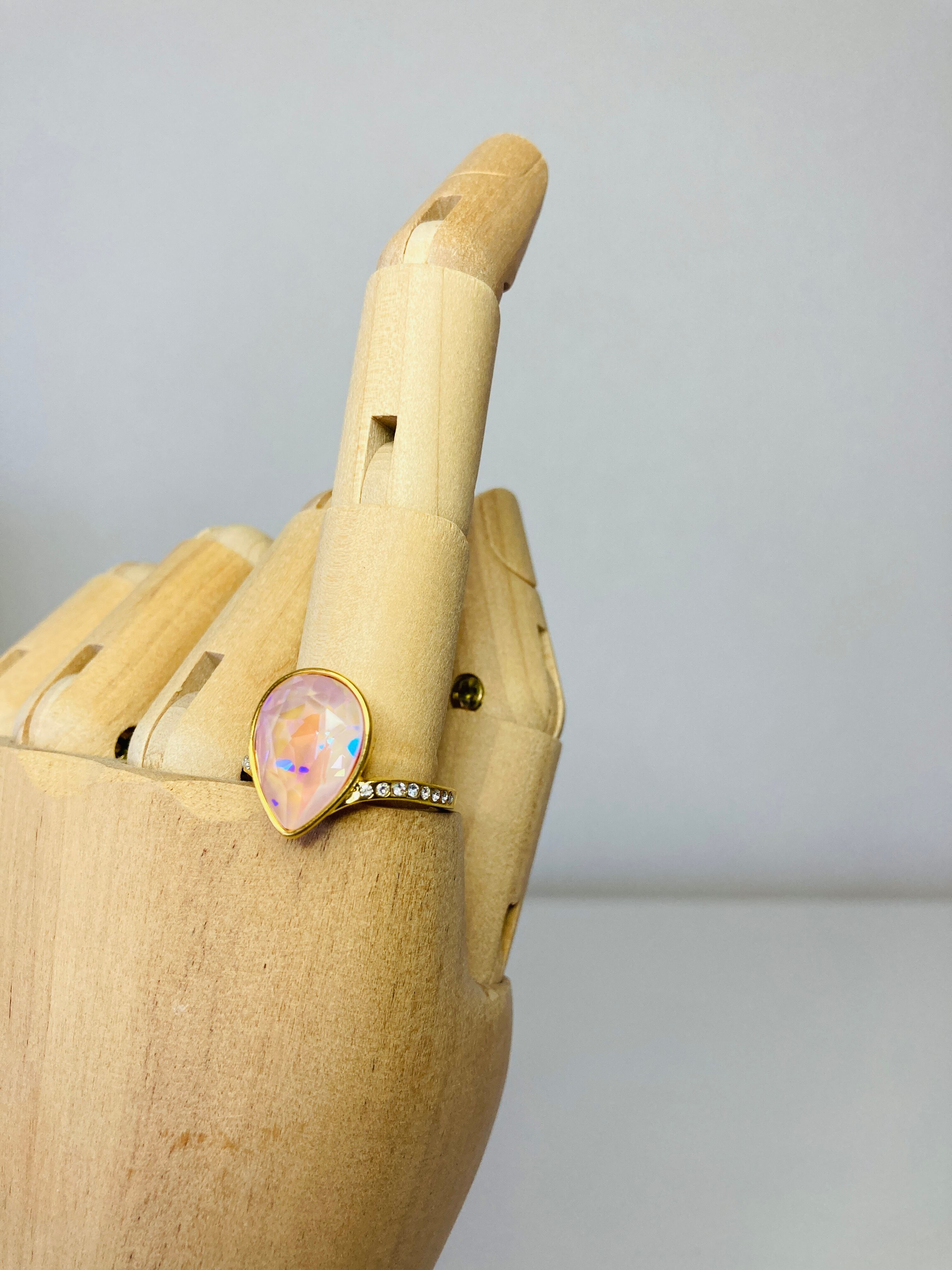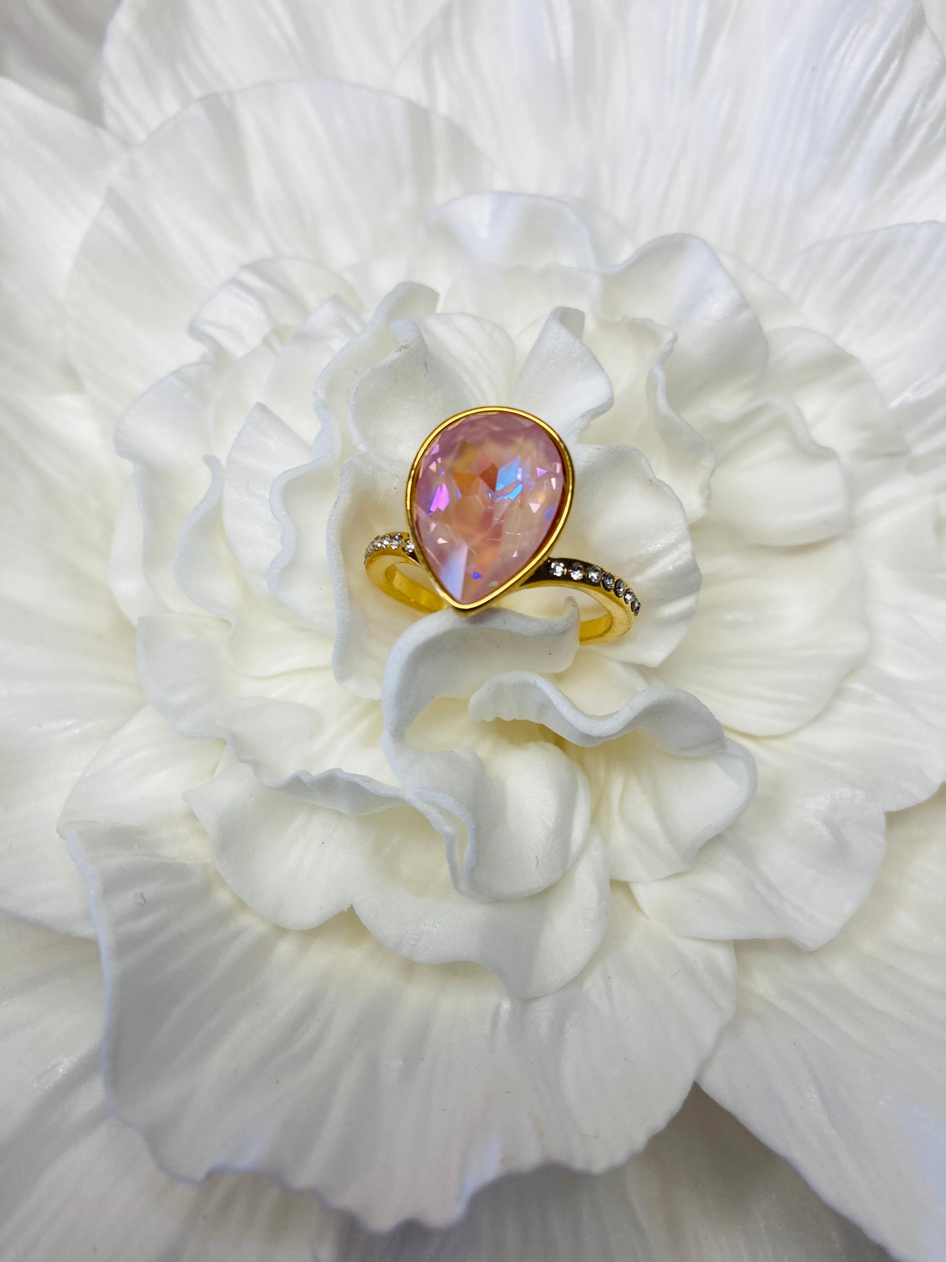 大ぶり ティアドロップ ドロップ クリスタル ビジュー リング ゴージャス ボリューム ボリューミー 大ぶり 春 夏 秋 冬 お出かけ カジュアル フォーマル パーティー プチギフト バースデー 記念日 バースデーギフト クリスマス クリスマスギフト 母の日 ピンク